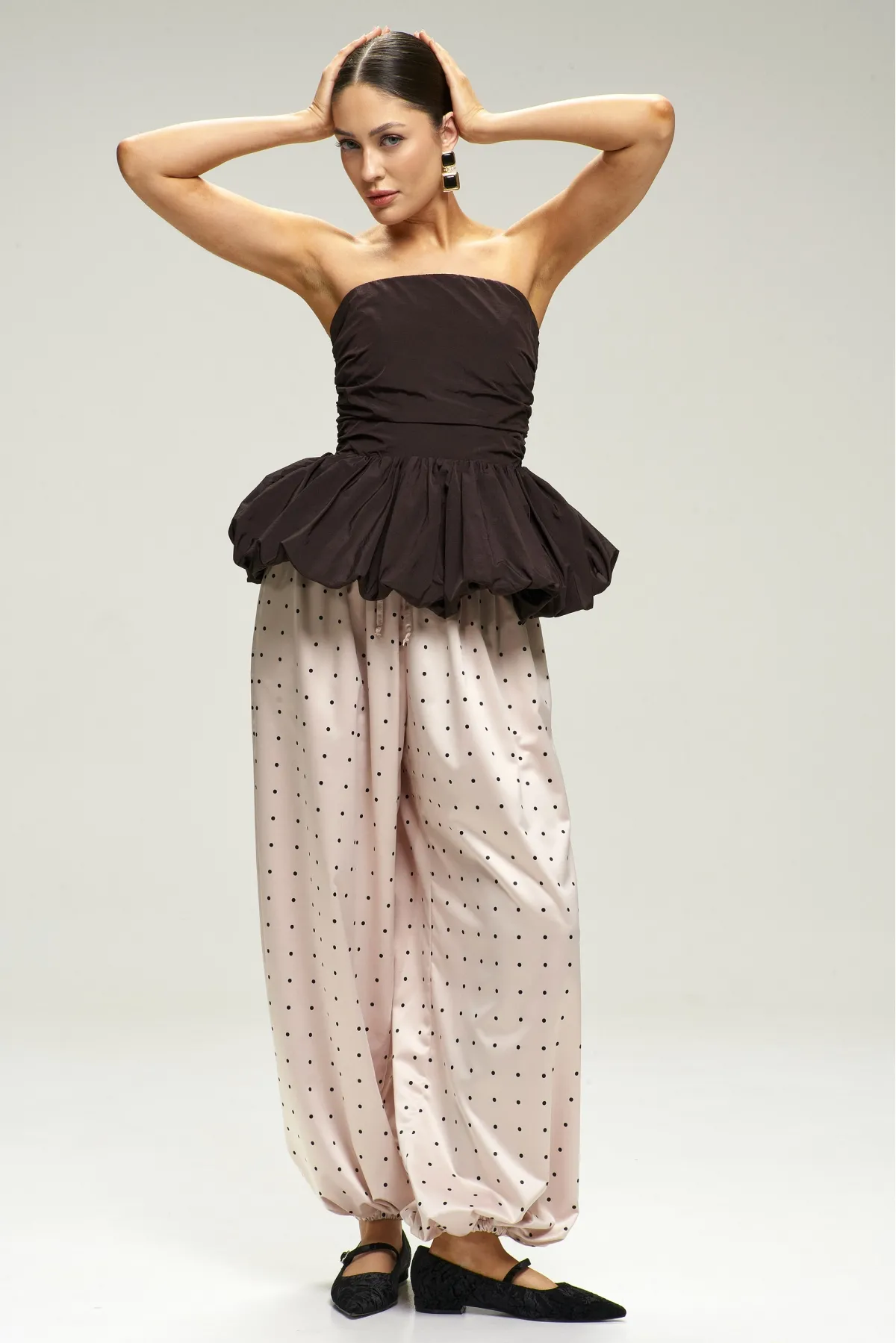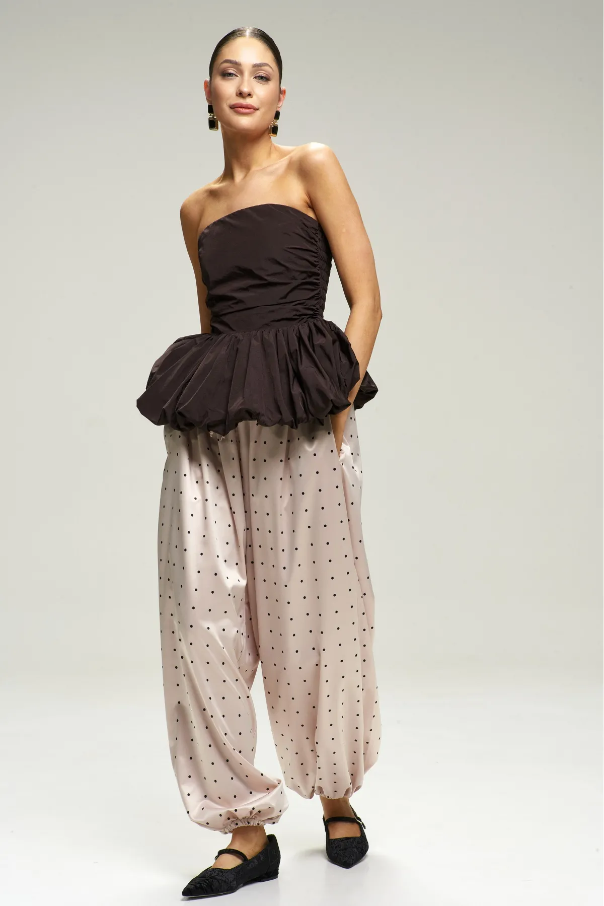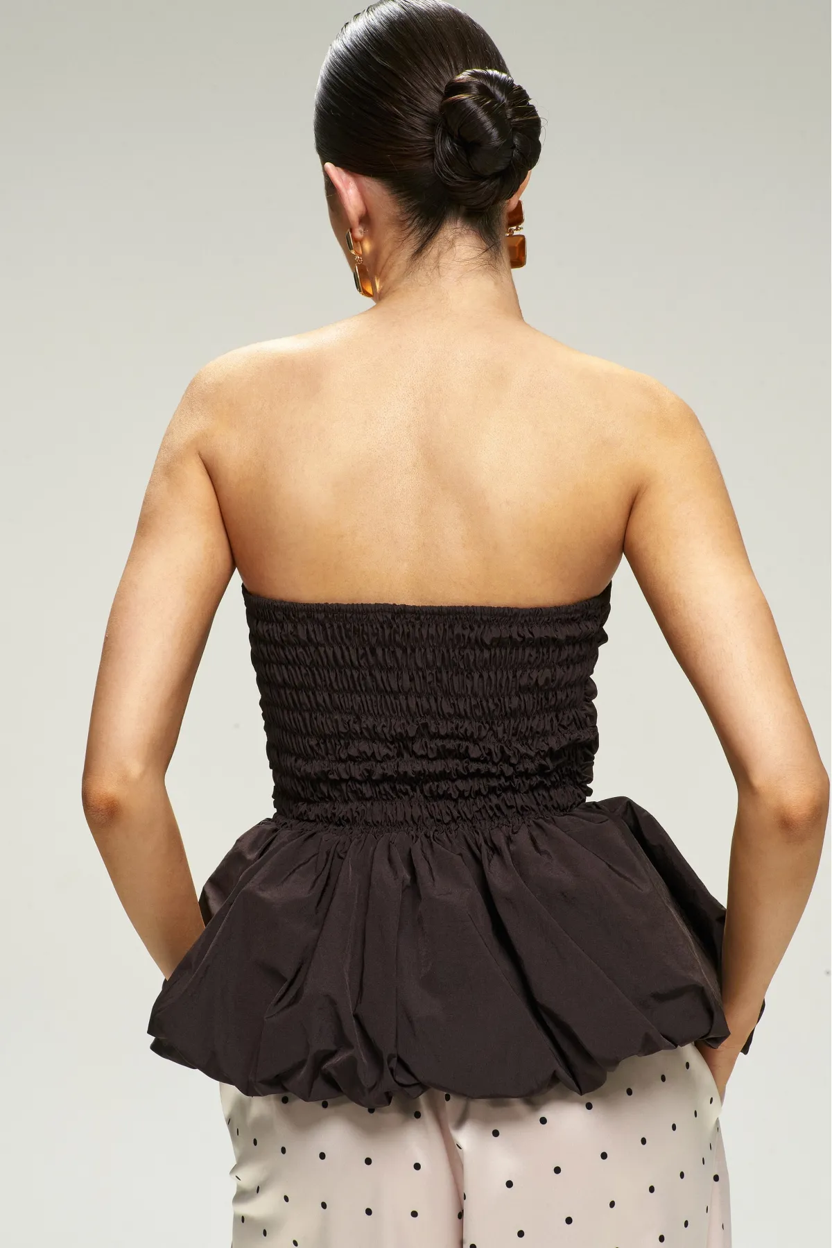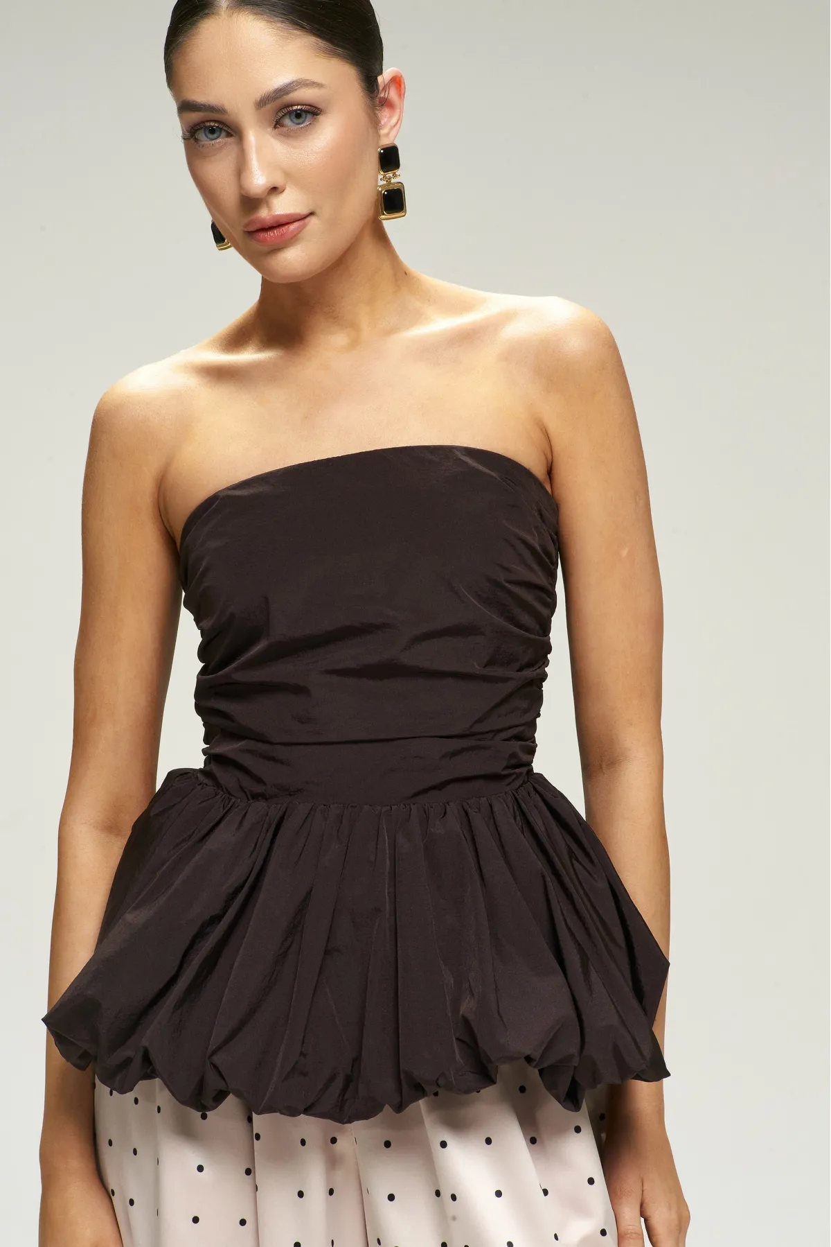 Топ‑корсет с баской — драматичная и утончённая вещь, которая моментально делает образ праздничным.