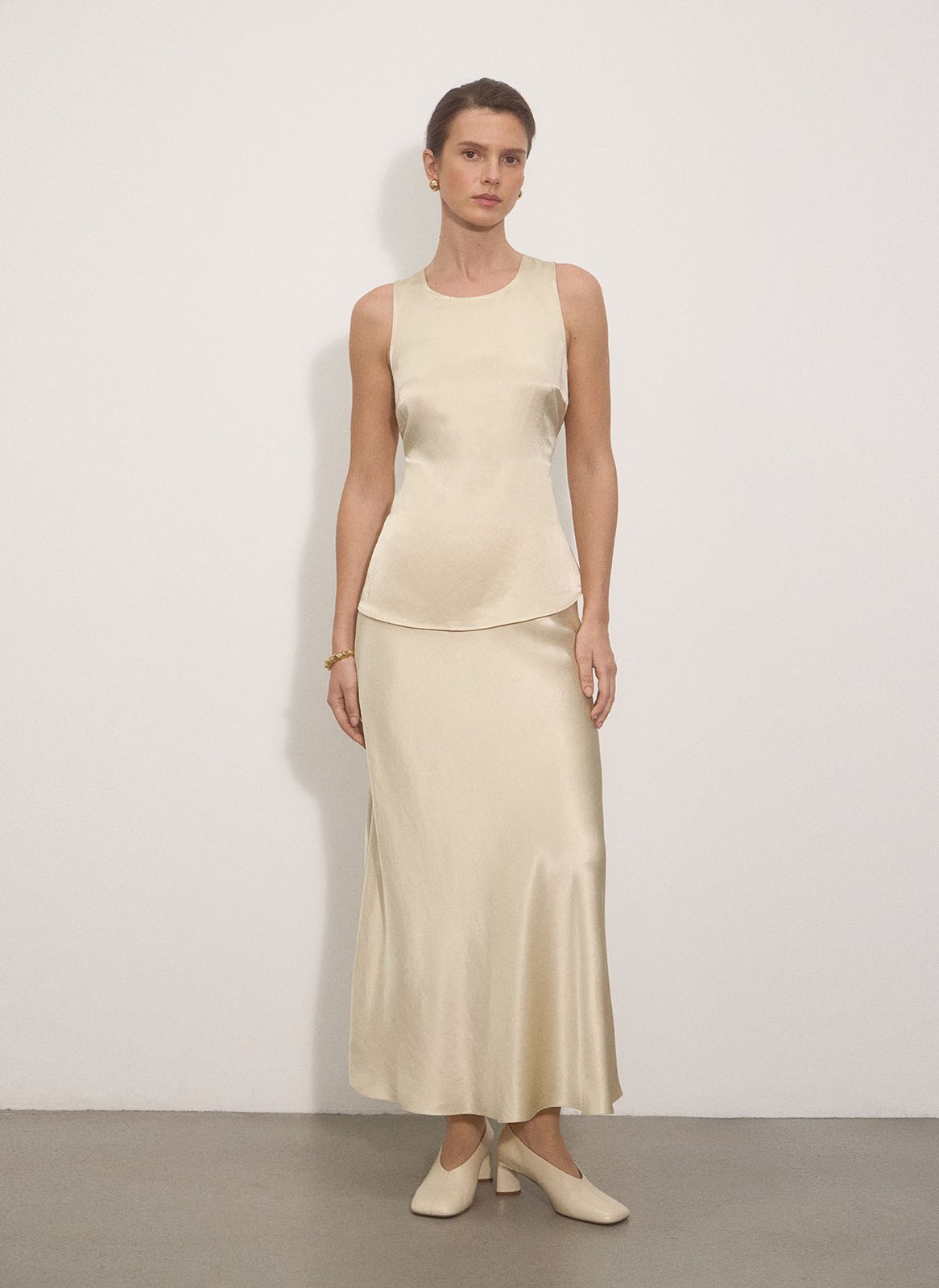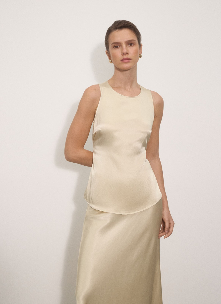 Этот топ из атласной вискозы создан для женственных и нежных образов.