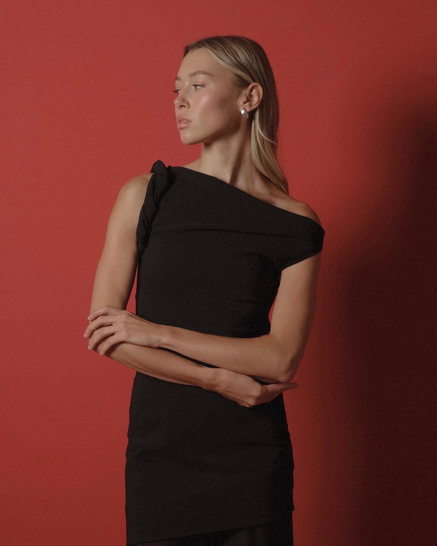 Элегантный чёрный топ с оригинальным декоративным элементом — идеальный выбор для создания стильного образа. Прекрасно подойдёт для повседневного ношения или для особых случаев.