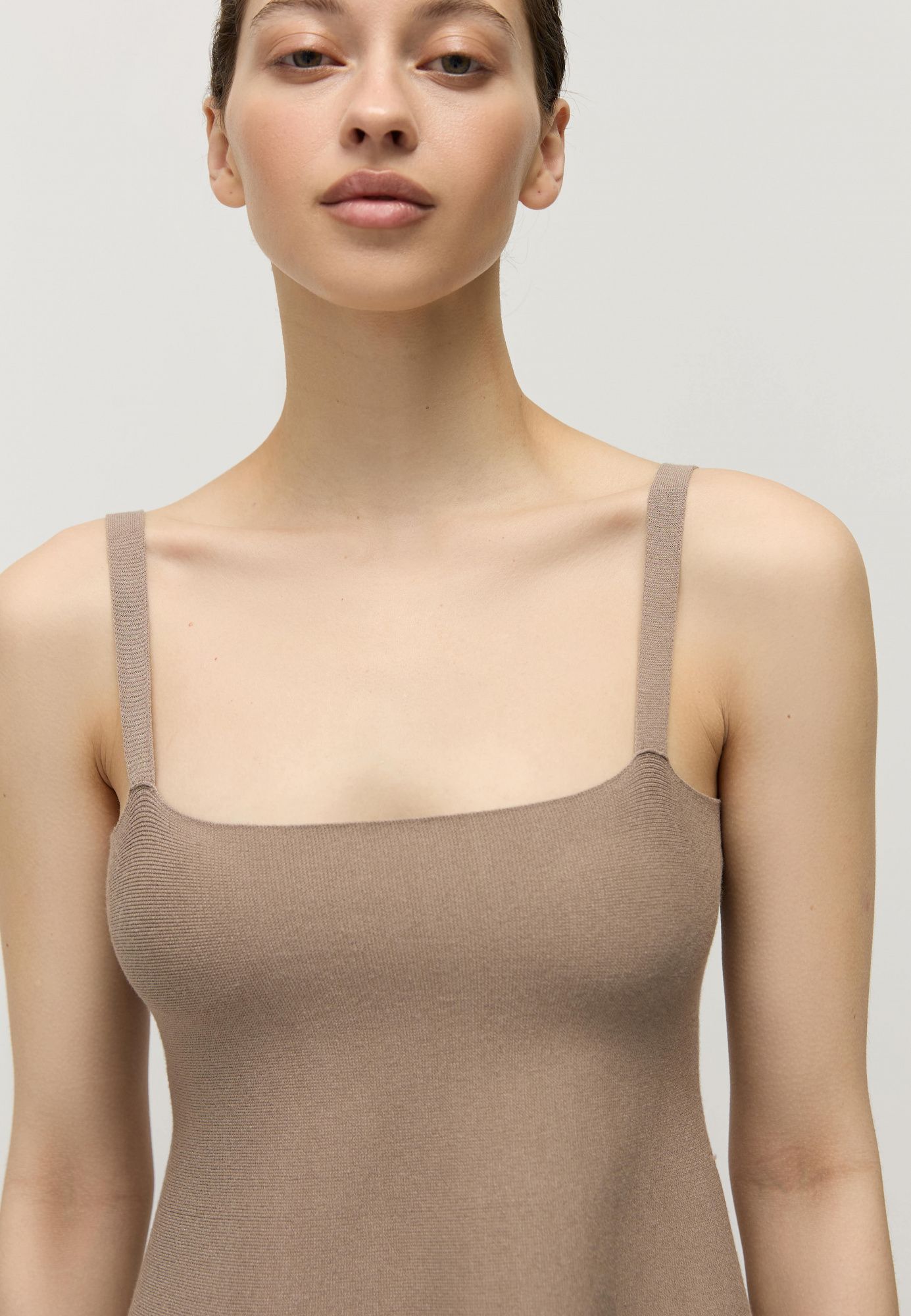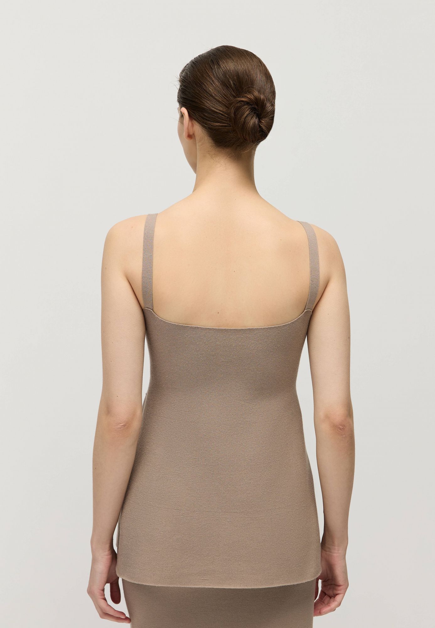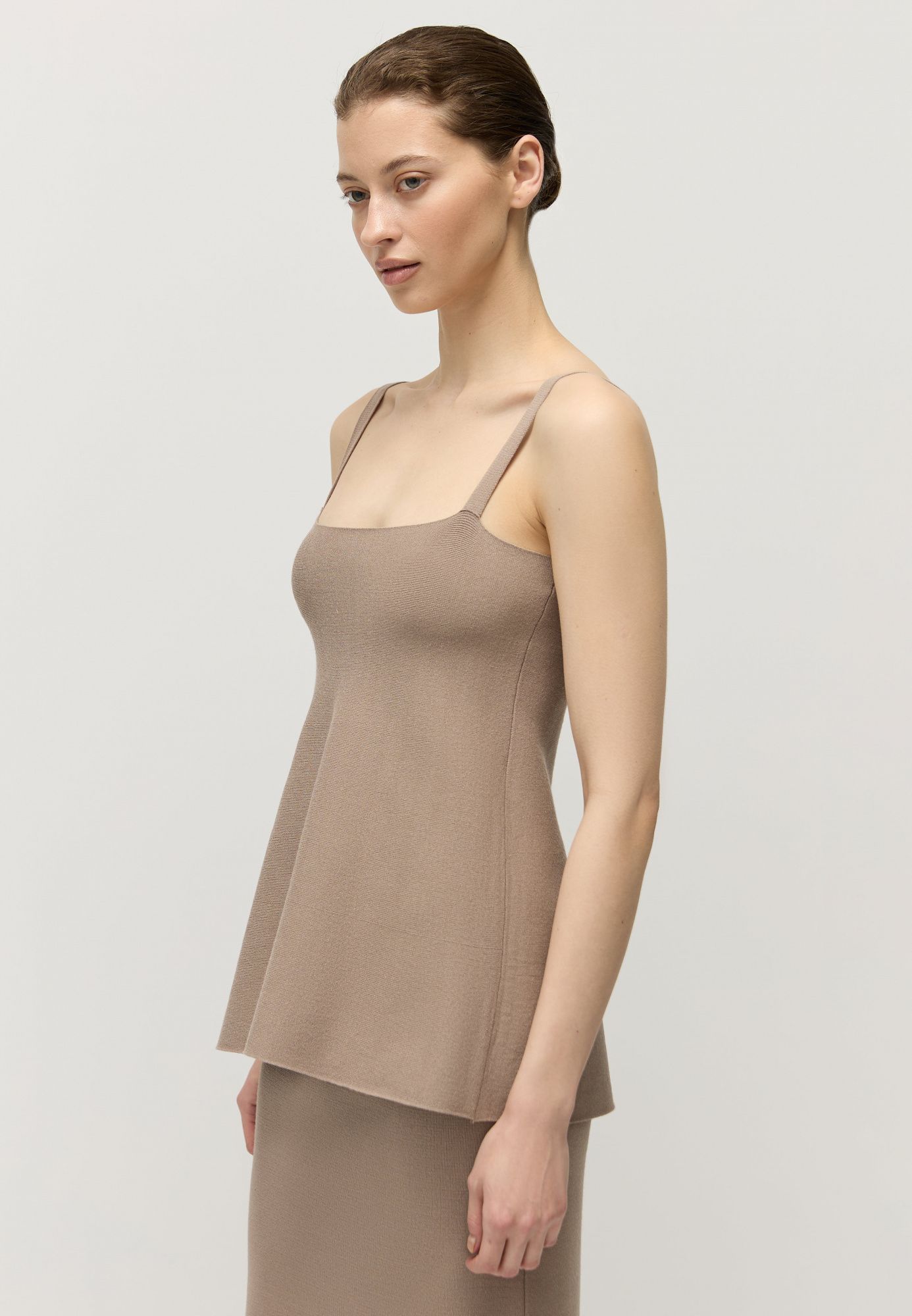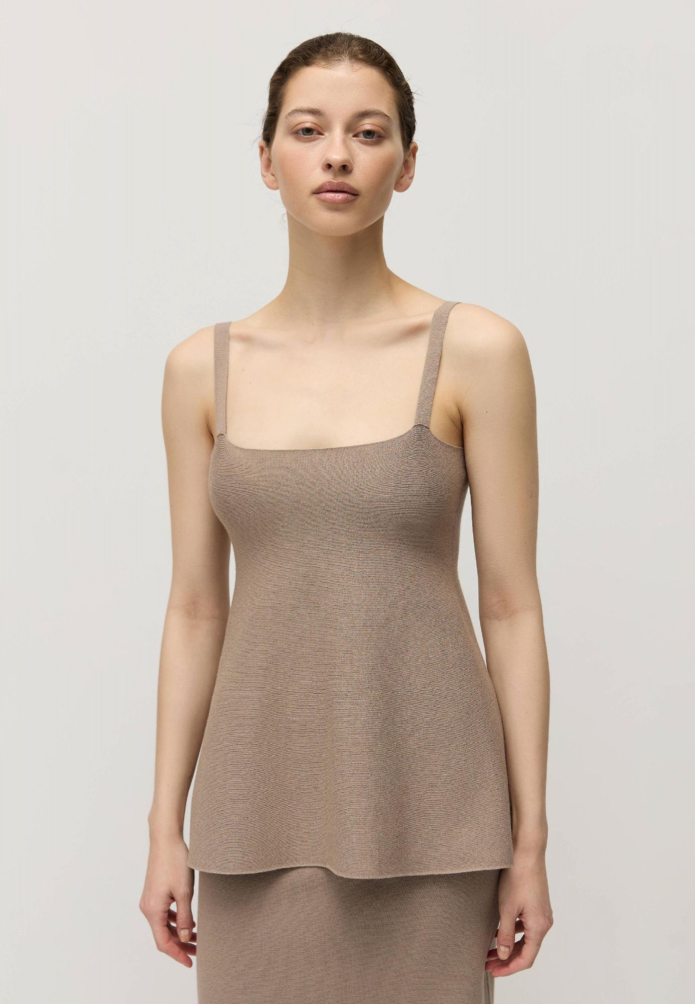 Облегающий топ связан из натуральной вискозы и искусственного волокна для упругости переплетения — нежаркой и нежной к коже пряжи.