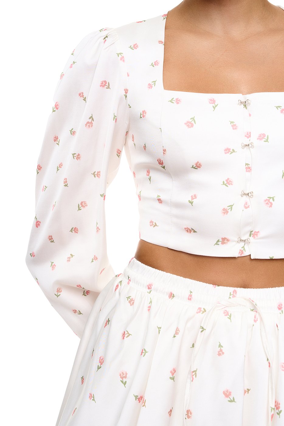 Корсетный топ из нежной, приятной к телу ткани с деликатным цветочным принтом. Транслируй женственность и нежность смело и без остатка!