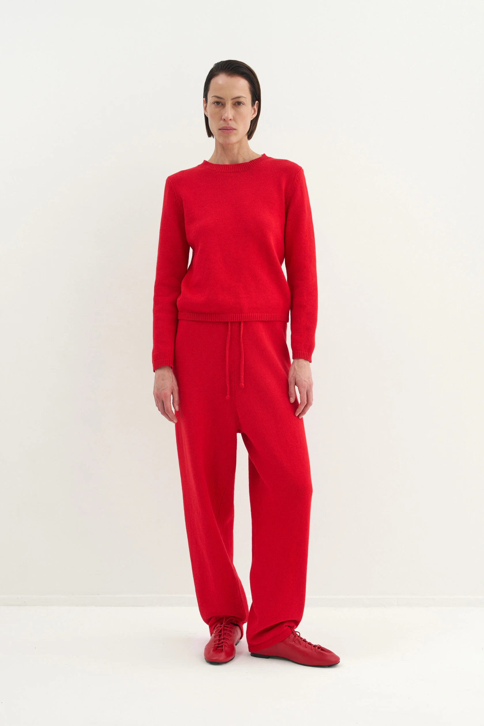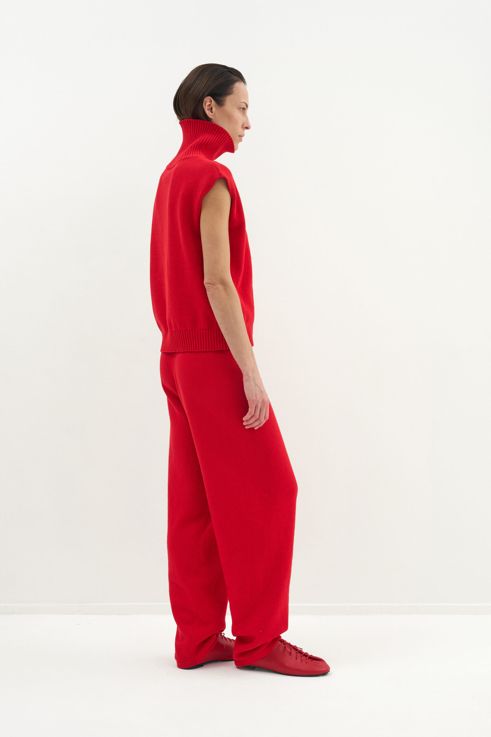 За основу модели взяли силуэт-бестселлер из коллекции Опора. Новый вариант из хлопка, но все еще плотный и комфортный. Модель представлена в двух размерах и рассчитана на среднюю посадку, которую можно регулировать при помощи шнурка внутри пояса.