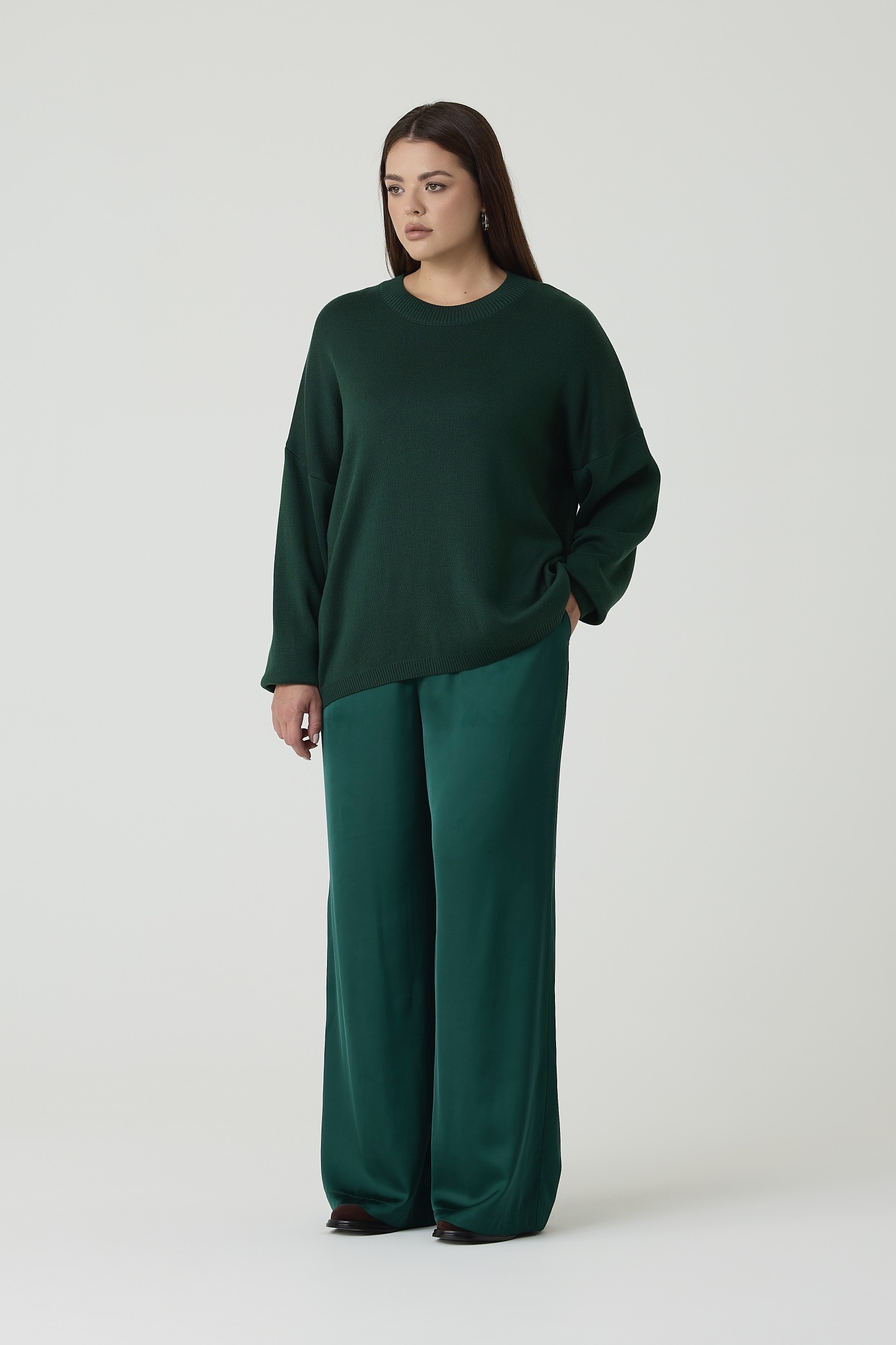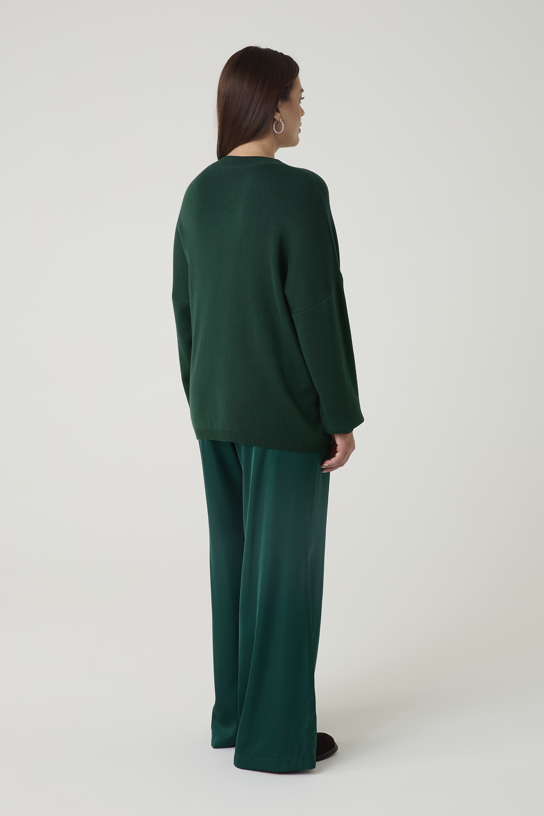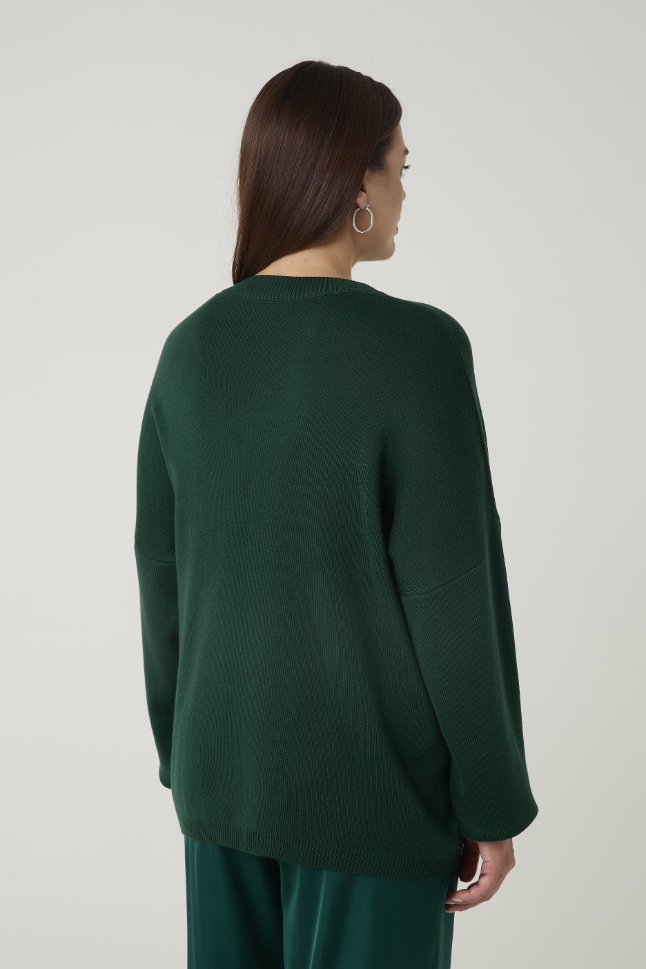 Джемпер вязаный из хлопково-акриловой пряжи. Свободный фасон, длинные рукава-реглан с манжетами, круглый вырез горловины. Эта модель джемпера, безусловно, служит украшением любого стиля - от повседневного до делового.
