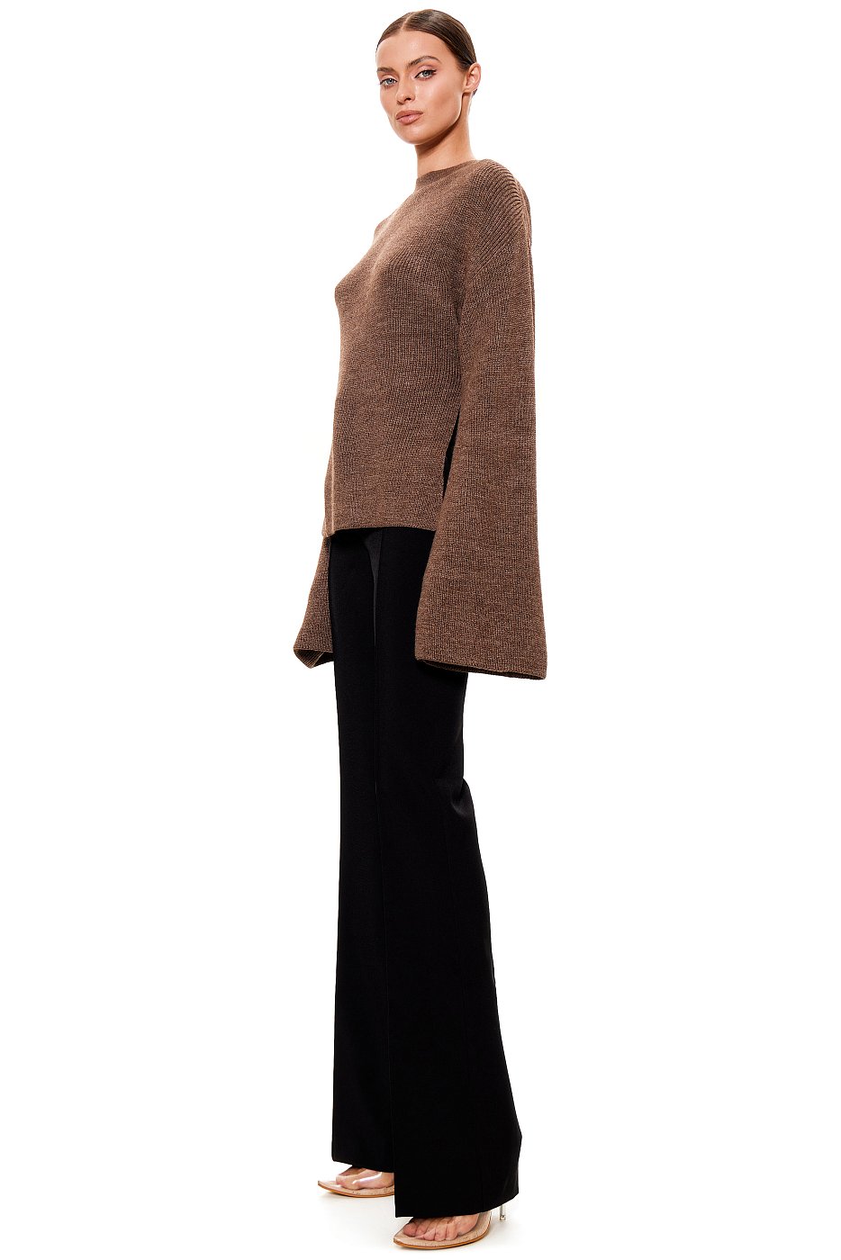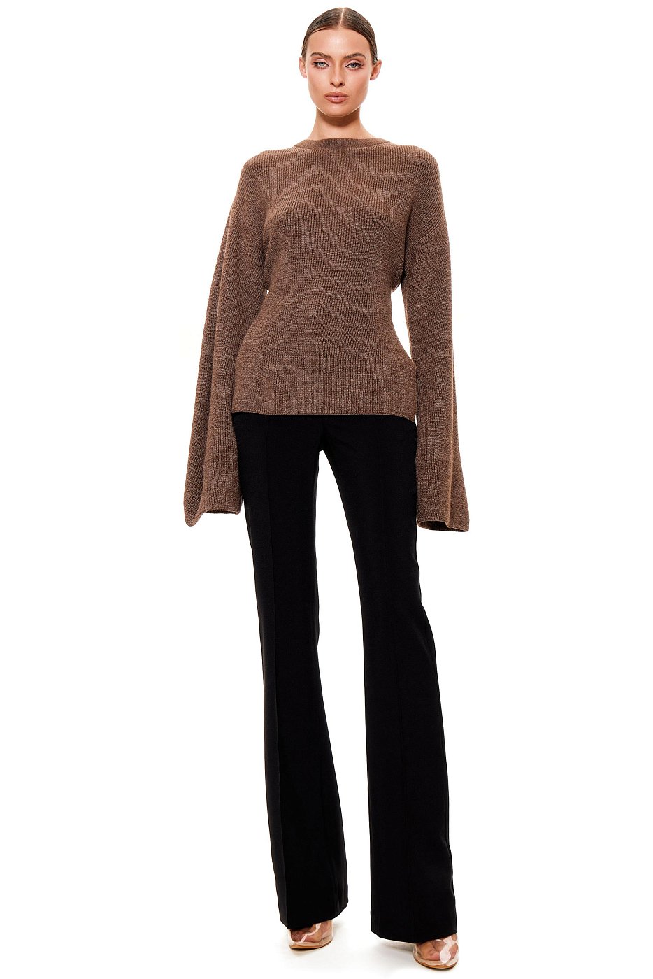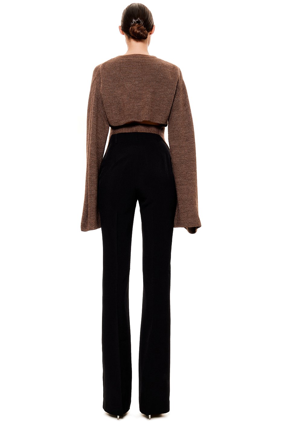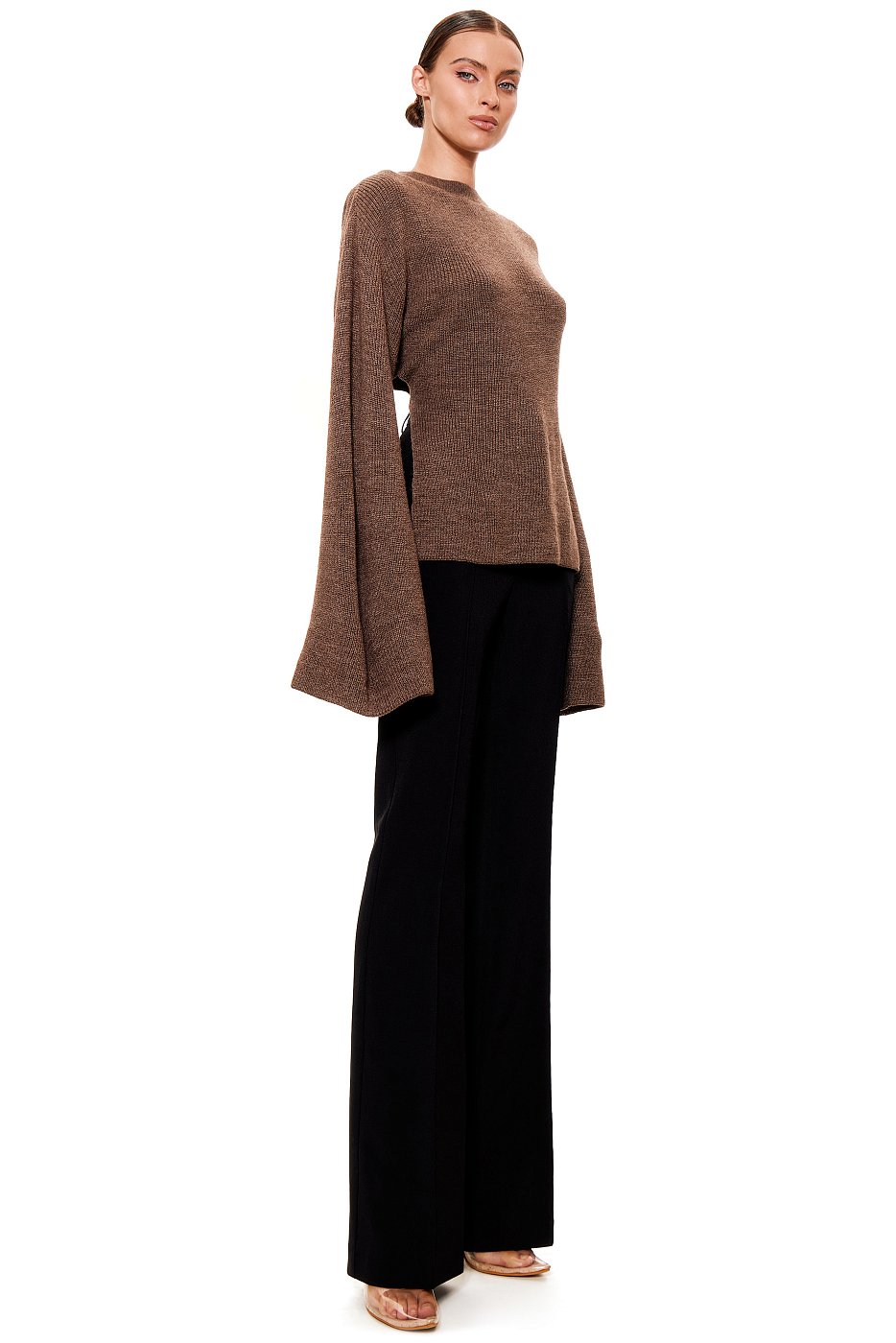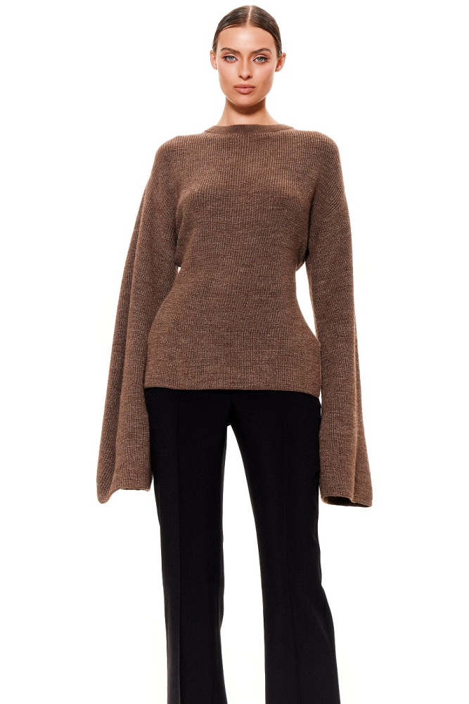 Эффектный джемпер выполнен в актуальной стилистике деконструктивизма. Базовое изделие с необычными деталями — микс практичности, комфорта и уникального стиля. В основе модели — нежная пряжа, ставшая основой для полотна фигурной вязки. Джемпер с аккуратным оформлением горловины, длинными рукавами-клёш, по линии спины имеет вырез с открытой спиной. Изделие легко стилизуется с брюками-клёш, джинсами, леггинсами, юбками. Комфорт и тренд в гармоничном тандеме!