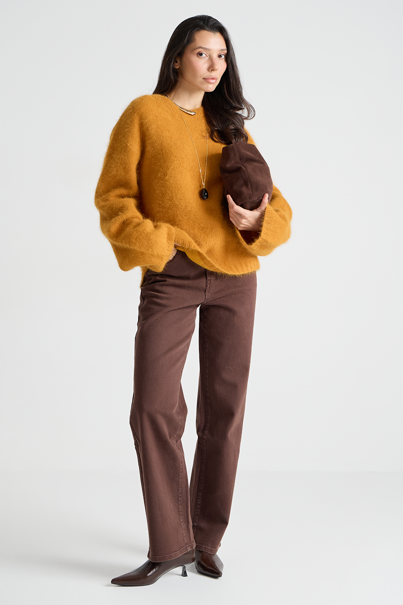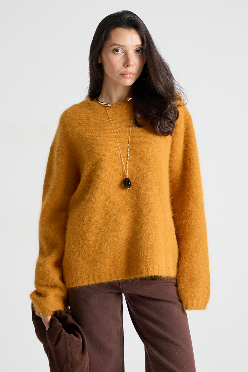 Джемпер горчичного цвета — идеальный выбор для создания стильного образа. В составе присутствует шерсть, что обеспечивает комфорт и тепло в прохладную погоду. Этот джемпер станет отличным дополнением к вашему гардеробу.