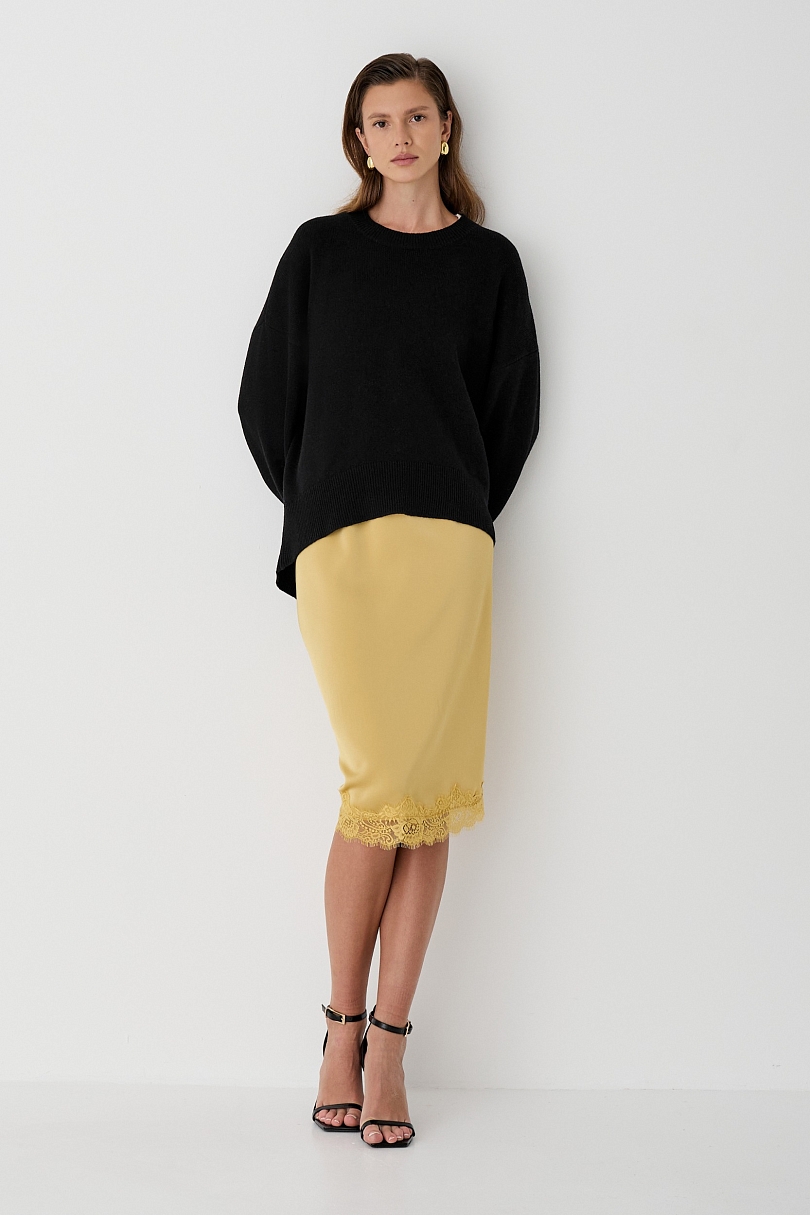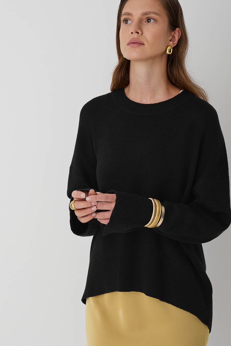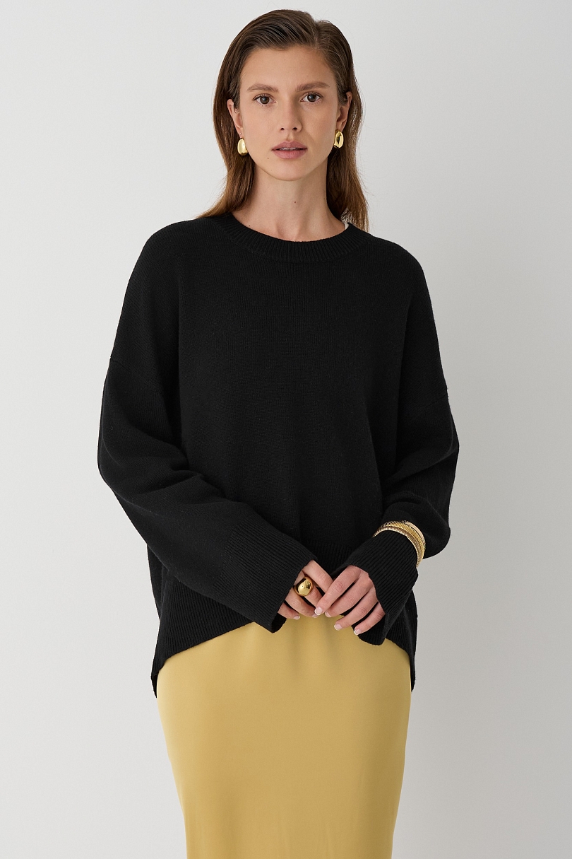О-образный свитер из шерсти и кашемира – это стильный и уютный элемент гардероба, который сочетает в себе комфорт, роскошь и современный дизайн. Изготовленный из высококачественной смесовой ткани, включающей шерсть и кашемир, этот свитер обеспечивает исключительную мягкость, тепло и легкость. Кашемир придает изделию нежную текстуру и элитный вид, а шерсть добавляет долговечность и устойчивость к износу. О-образный крой создает расслабленный и объемный силуэт, добавляя образу легкости и небрежной элегантности.