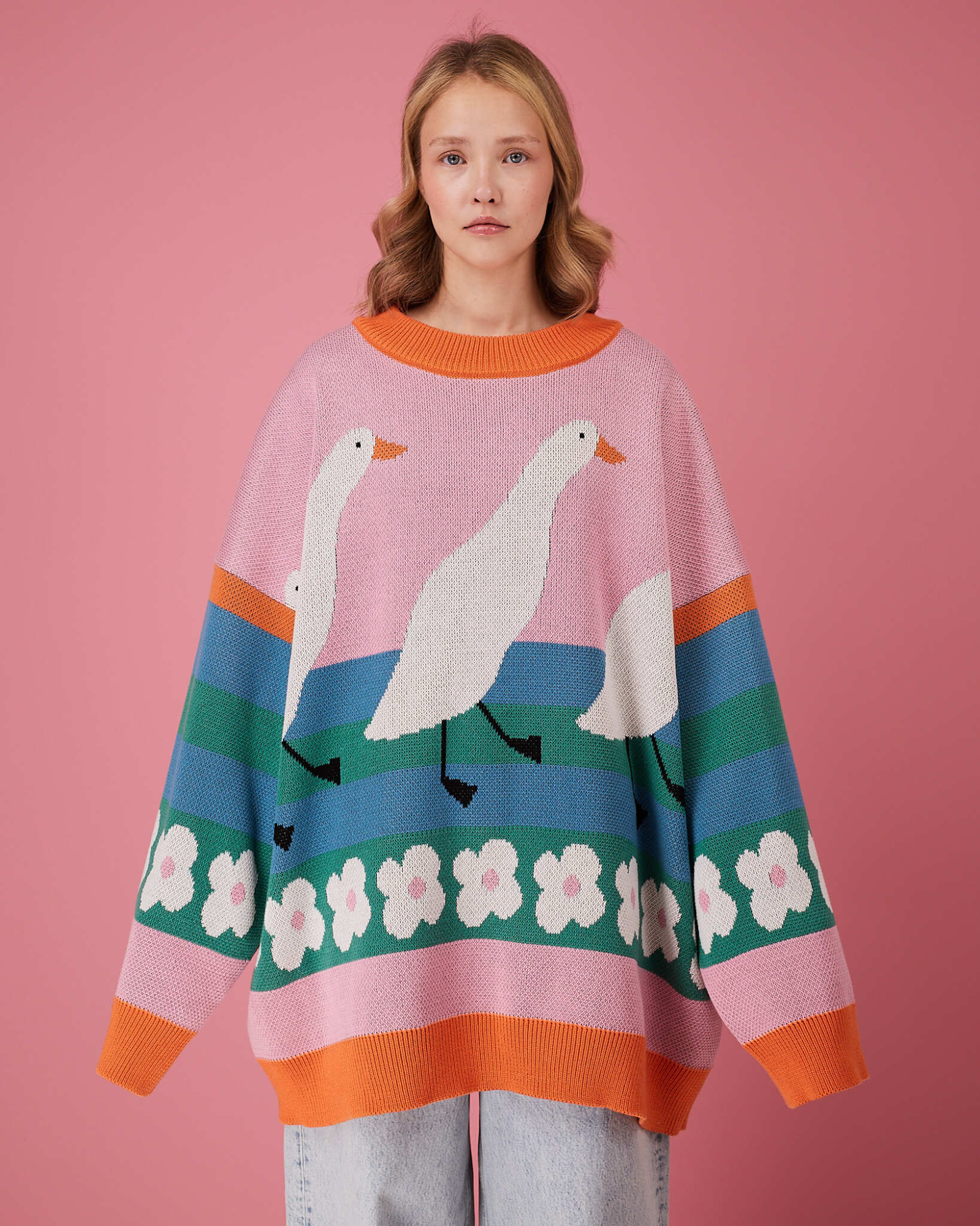 Свитер выполнен из 80% хлопка и 20% акрила — он мягкий, приятный к телу и отлично держит форму. Оверсайз-крой делает образ расслабленным и современным, а плотная вязка обеспечивает комфорт в любое время года.