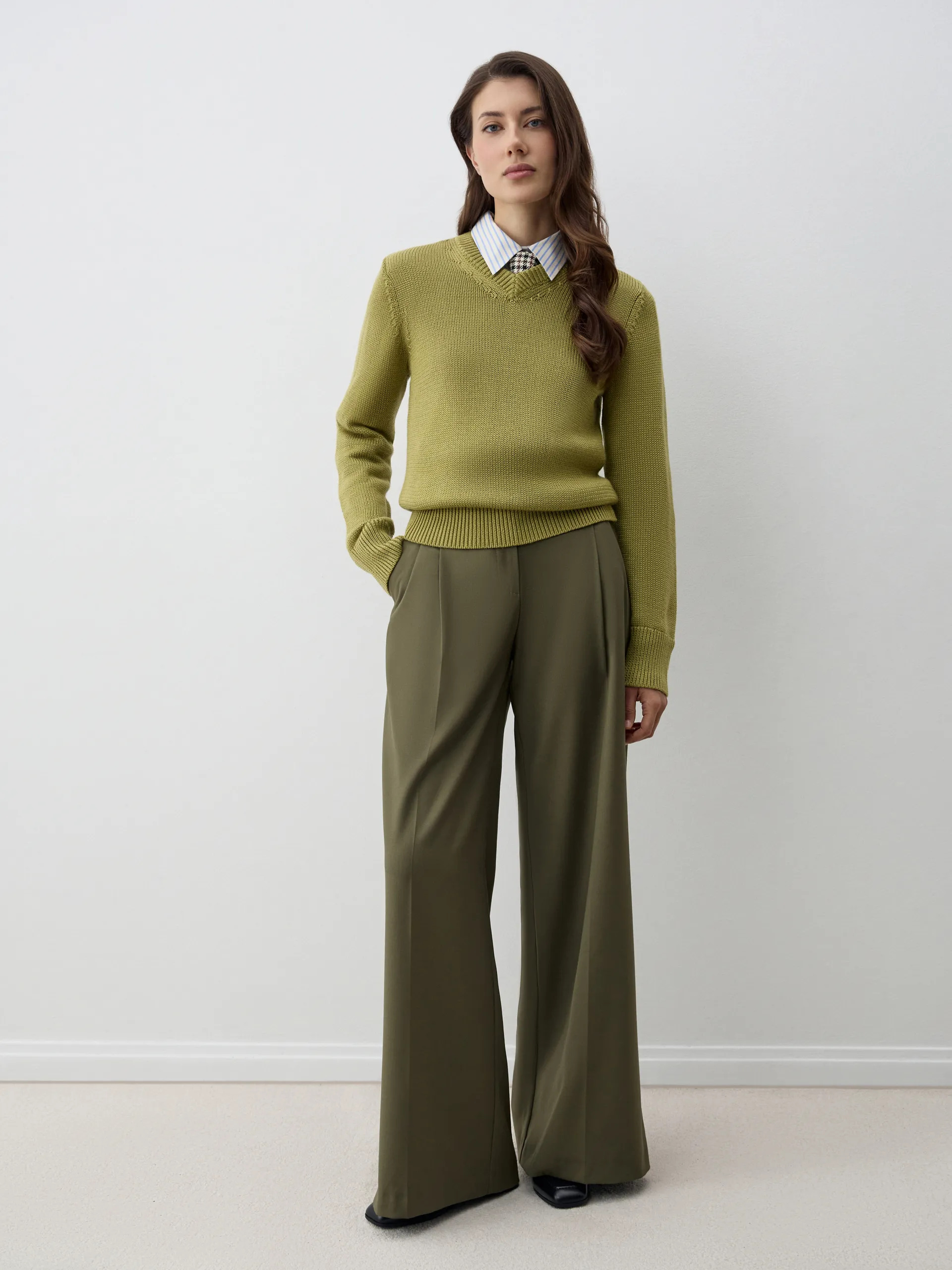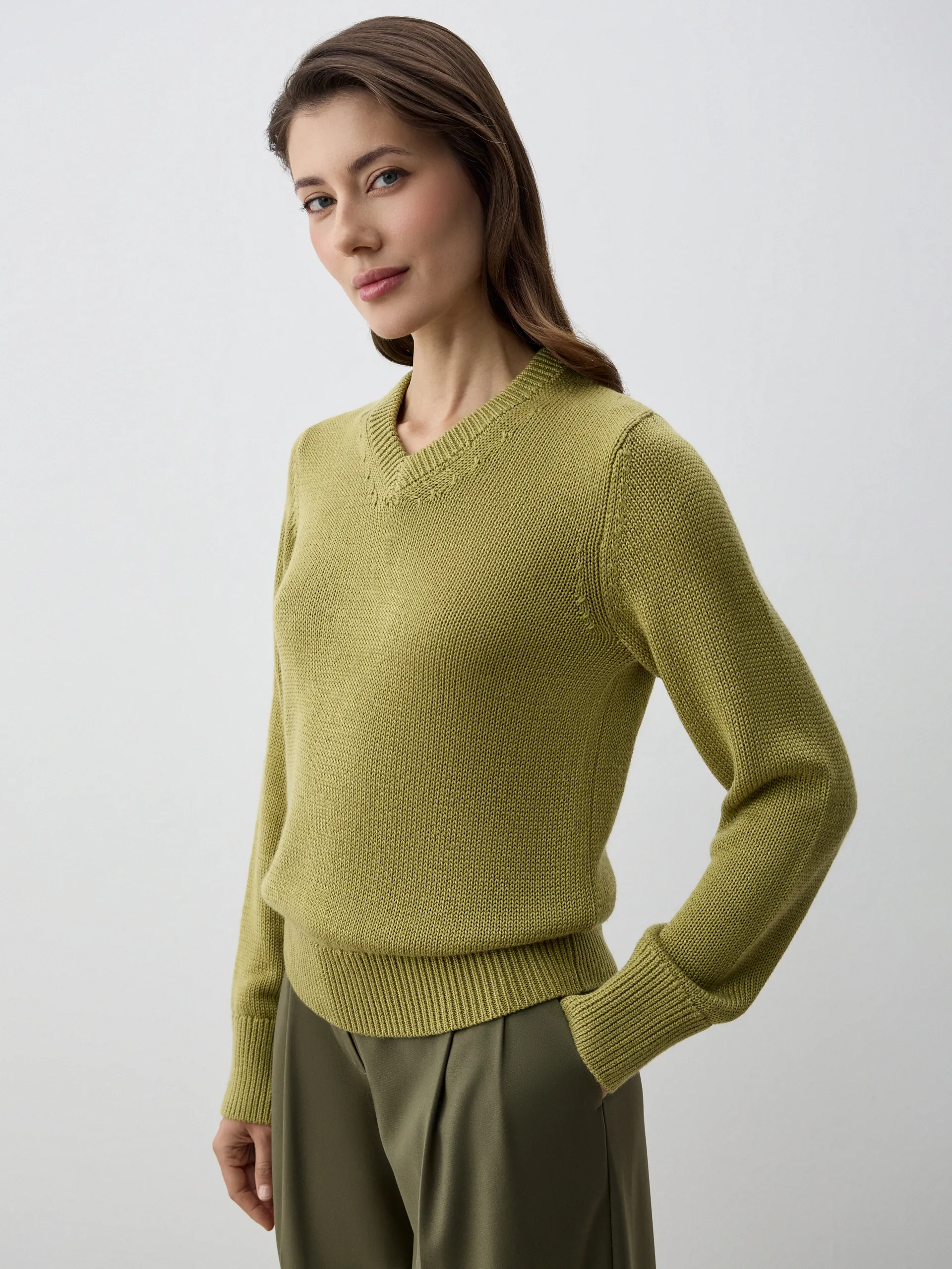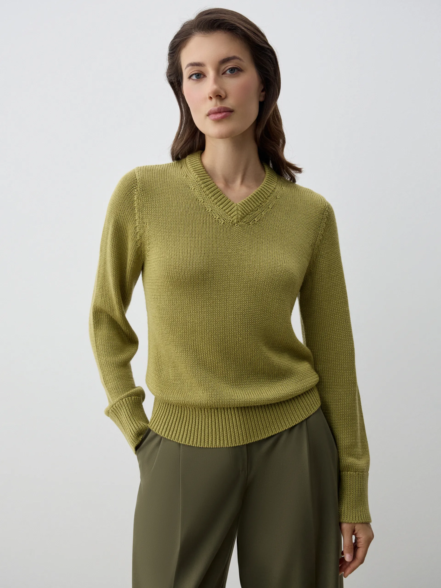 Джемпер Ronne с V-образным вырезом и полуприлегающим силуэтом — универсальная базовая модель, которая подойдёт как для офиса, так и для повседневных образов. Благодаря содержанию шерсти хорошо держит форму и сохраняет тепло. В составе также антипиллинговый акрил — современное волокно, которое снижает образование катышков, помогает изделию дольше сохранять аккуратный вид и упрощает уход. Лаконичный дизайн делает джемпер идеальной парой к брюкам, юбкам и дениму.