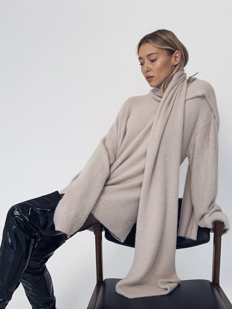 Джемпер пудрового цвета.