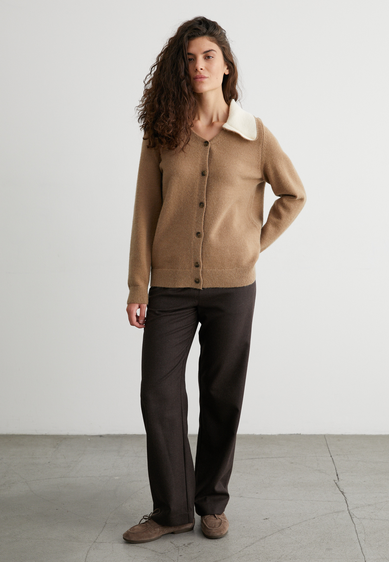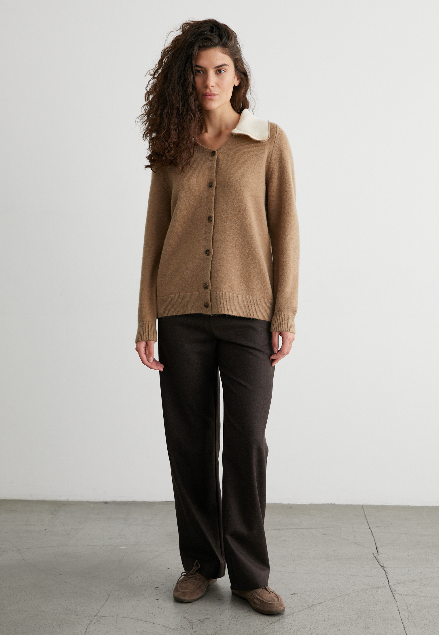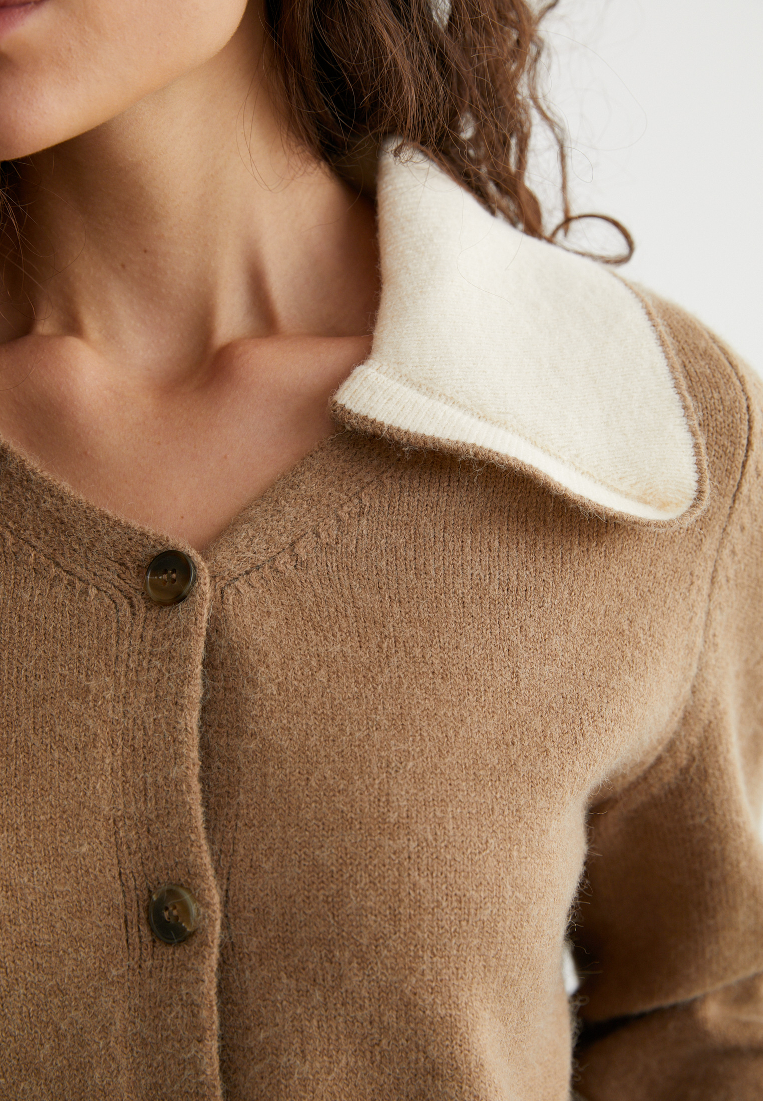Кардиган на пуговицах с контрастным воротником - идеальный выбор для холодных дней.