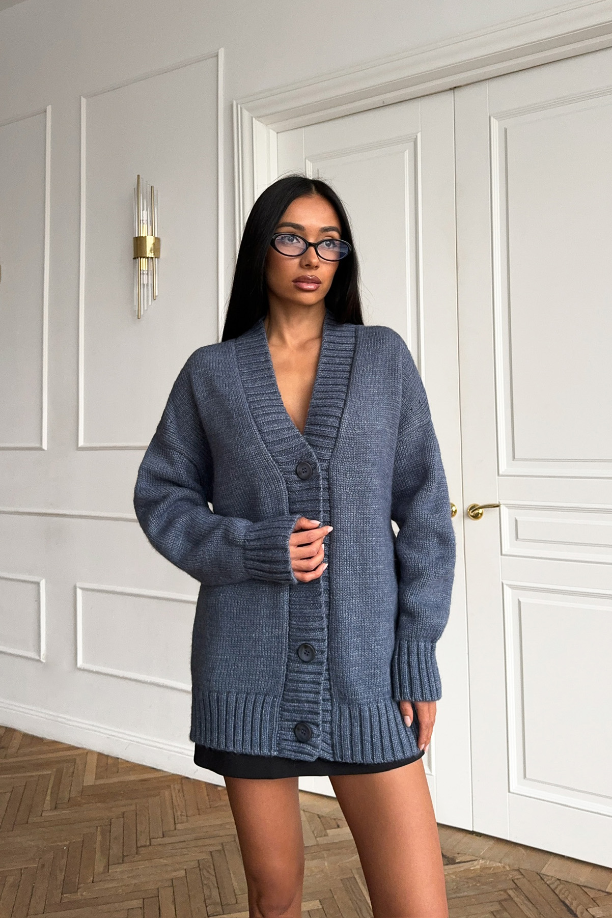 Классический кардиган в культовом стиле SODAMODA. Выполнен из вязаного трикотажа с контрастной вязкой. V-образный вырез, фиксация на пуговицы, длинные рукава с манжетами и обработкой нижней части. Кардиган можно смело сочетать с любой базой, будь это основа из вязаного трикотажа, костюмная группа, деним. Полная воля фантазии и правильные акценты на уникальности внешности!