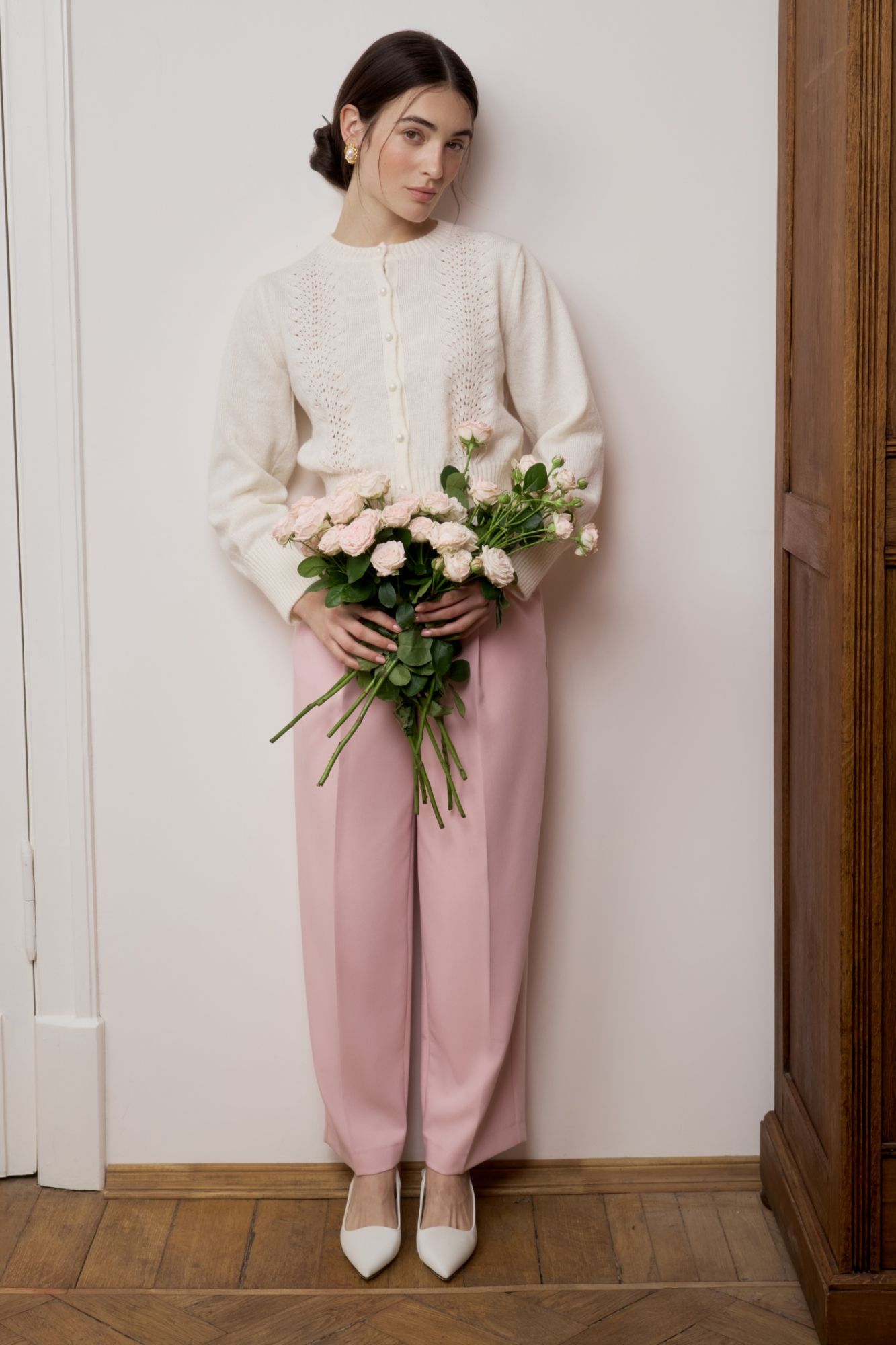 Такой можно вписать в любой гардероб, сочетая с одеждой и текстиля или денима. Самый стильный вариант – носить кардиган поверх майки с брюками-палаццо. Для более интересных образов добавьте юбку длины миди или мини юбку базовых оттенков.