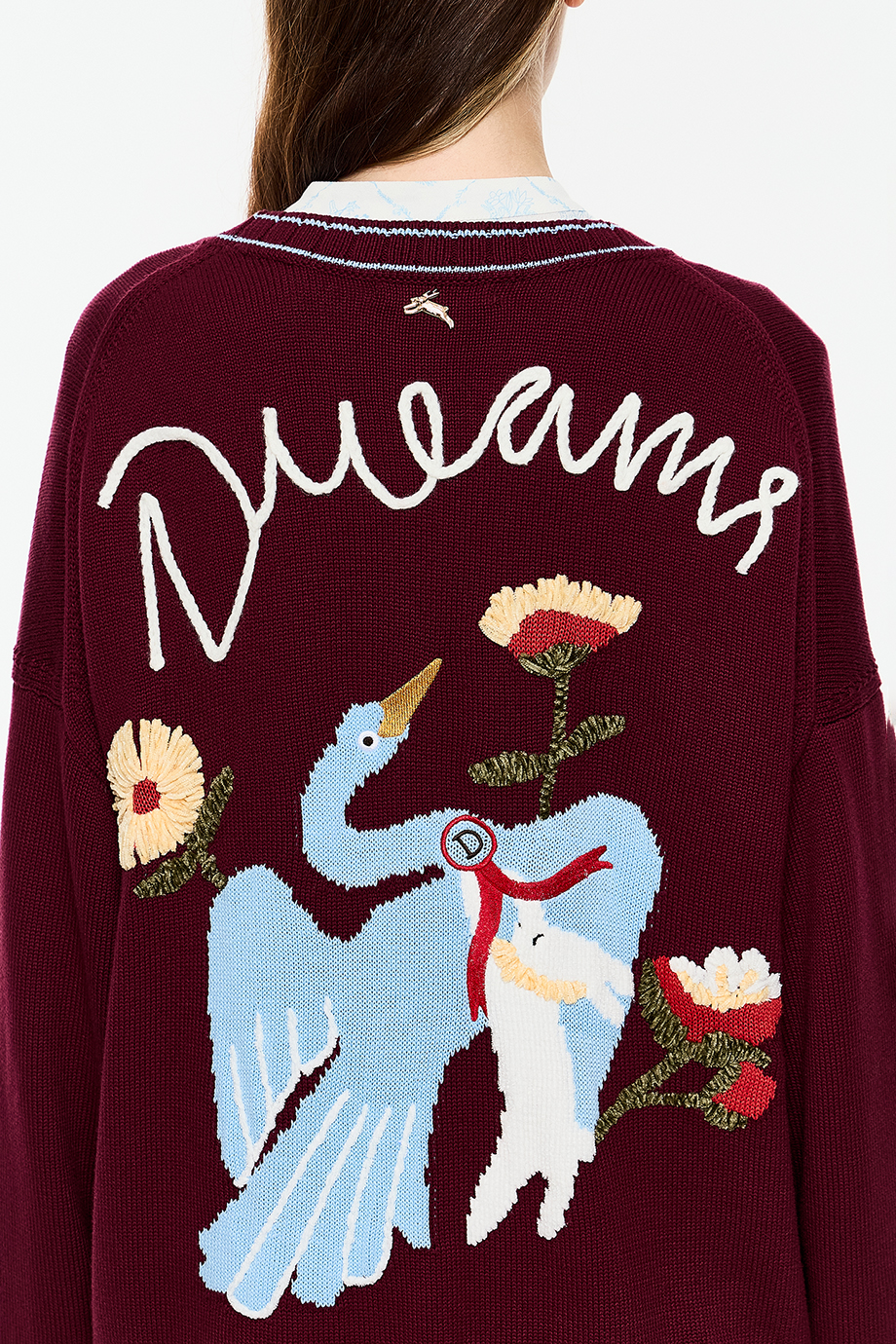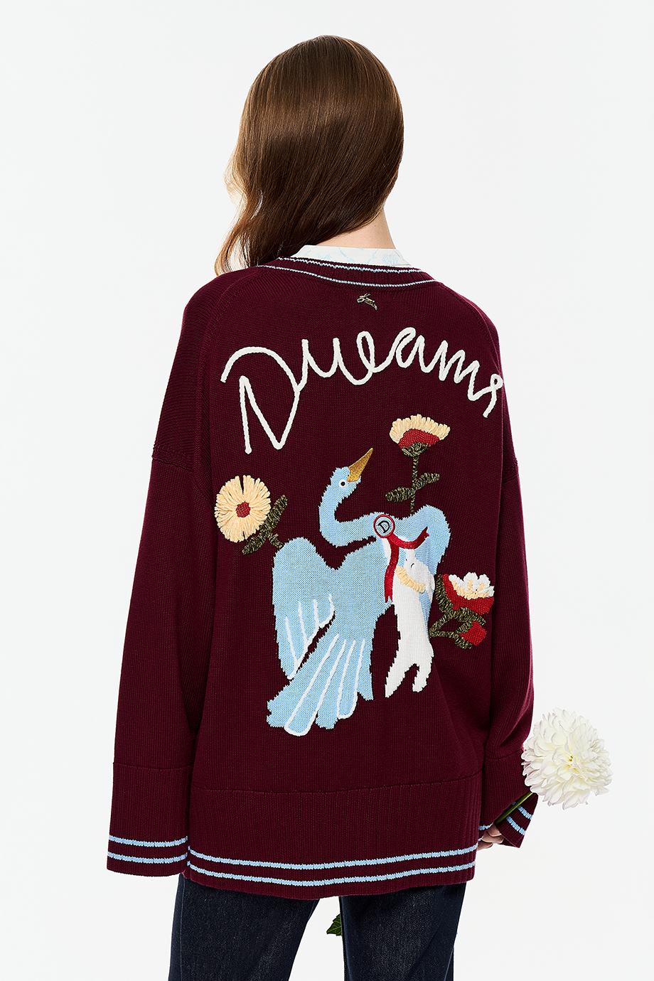 Особенностью кардигана является вышивка на спине, которая придаёт изделию индивидуальность и изысканность.