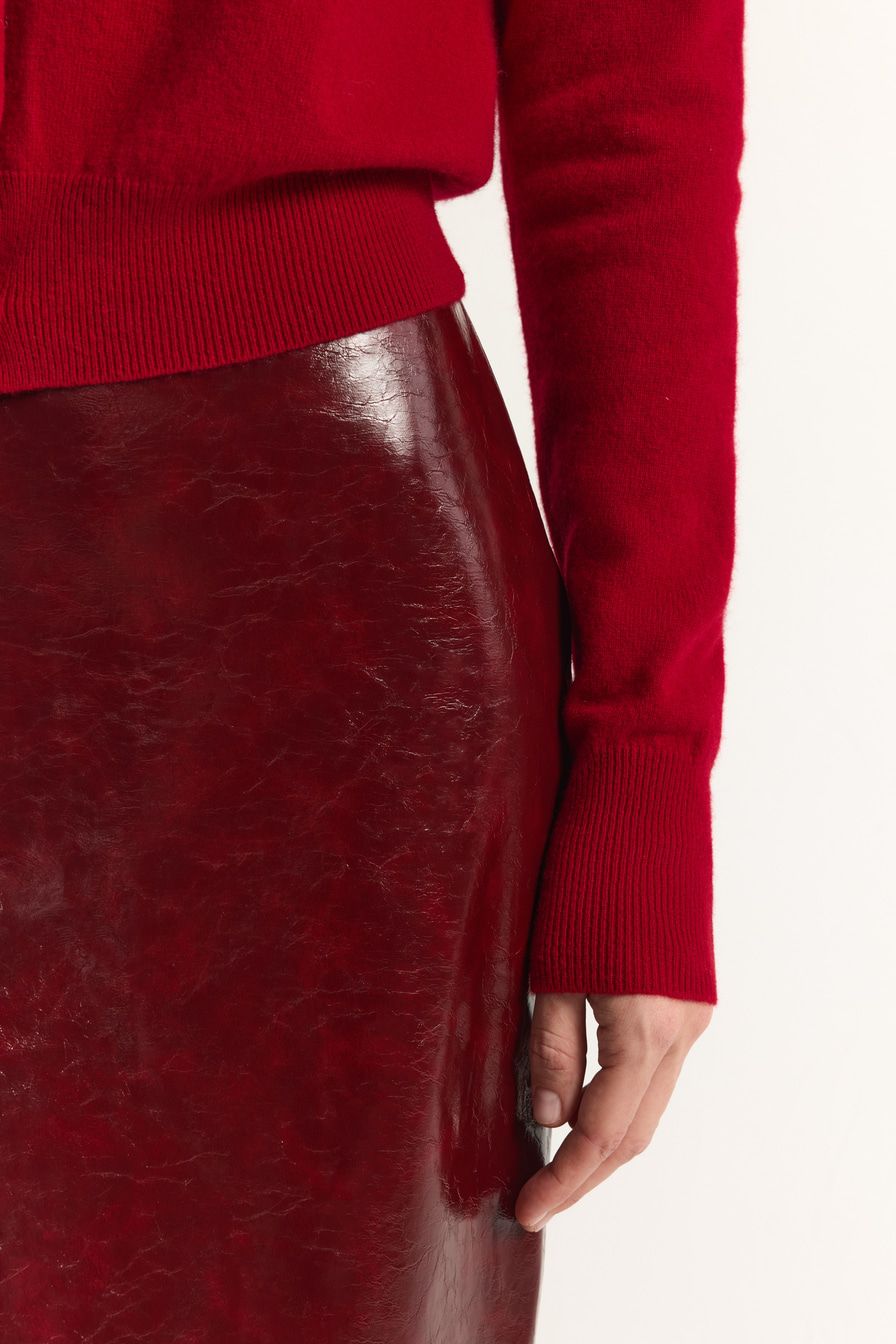 «Для бранча с подругами сочетайте кардиган с длинной кожаной юбкой А-силуэта и полусапогами на высоком каблуке».
