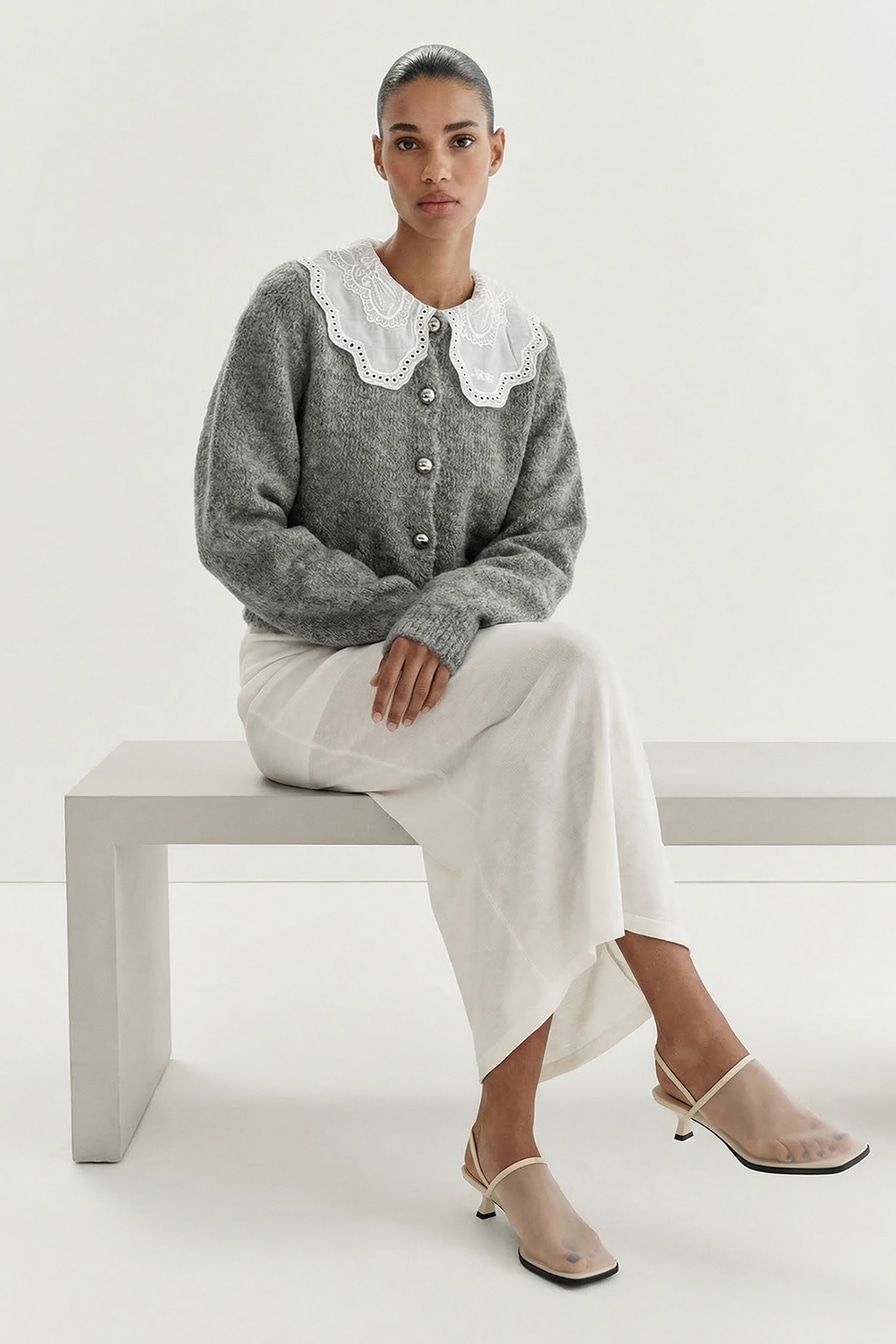 Кардиган с кружевным воротником