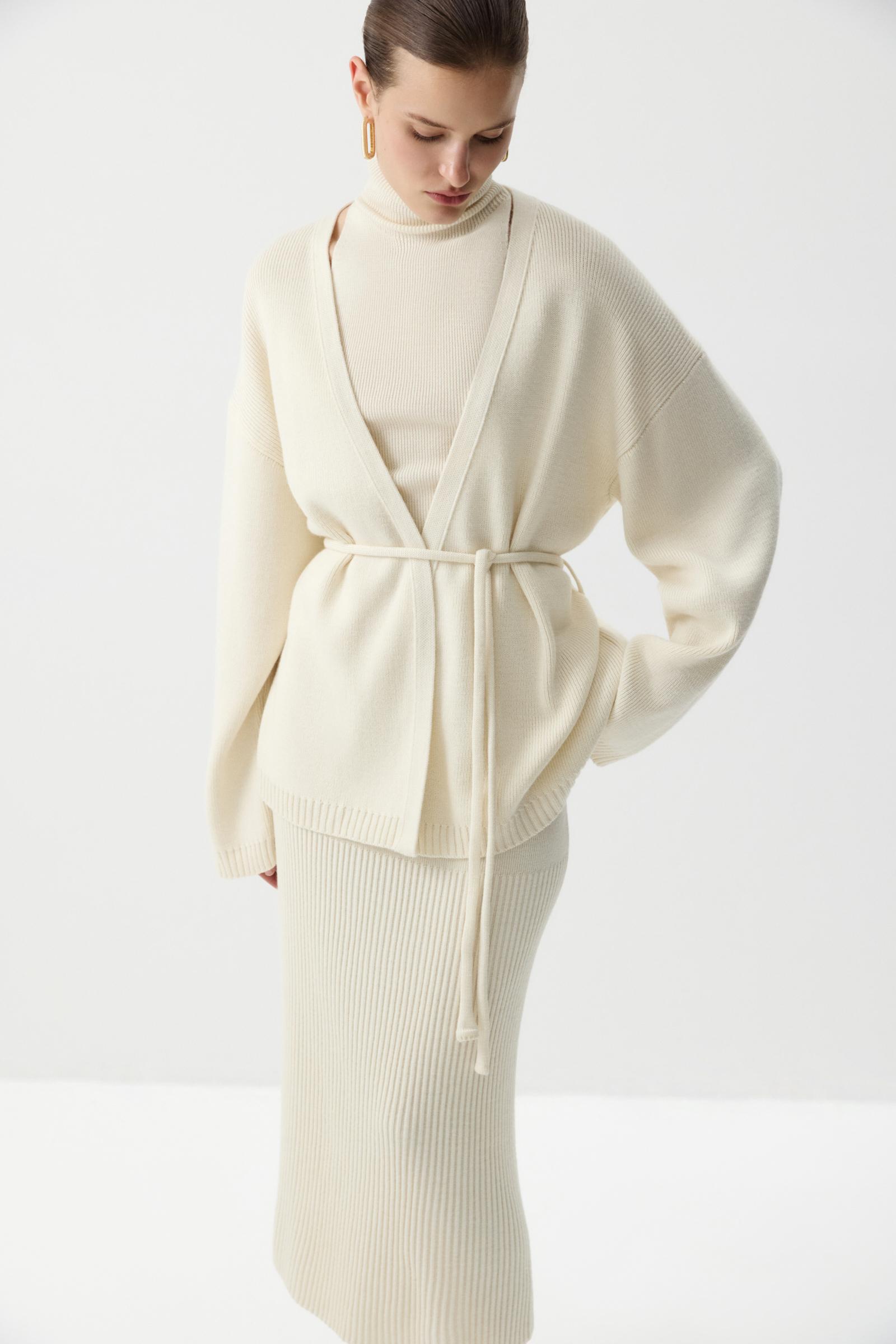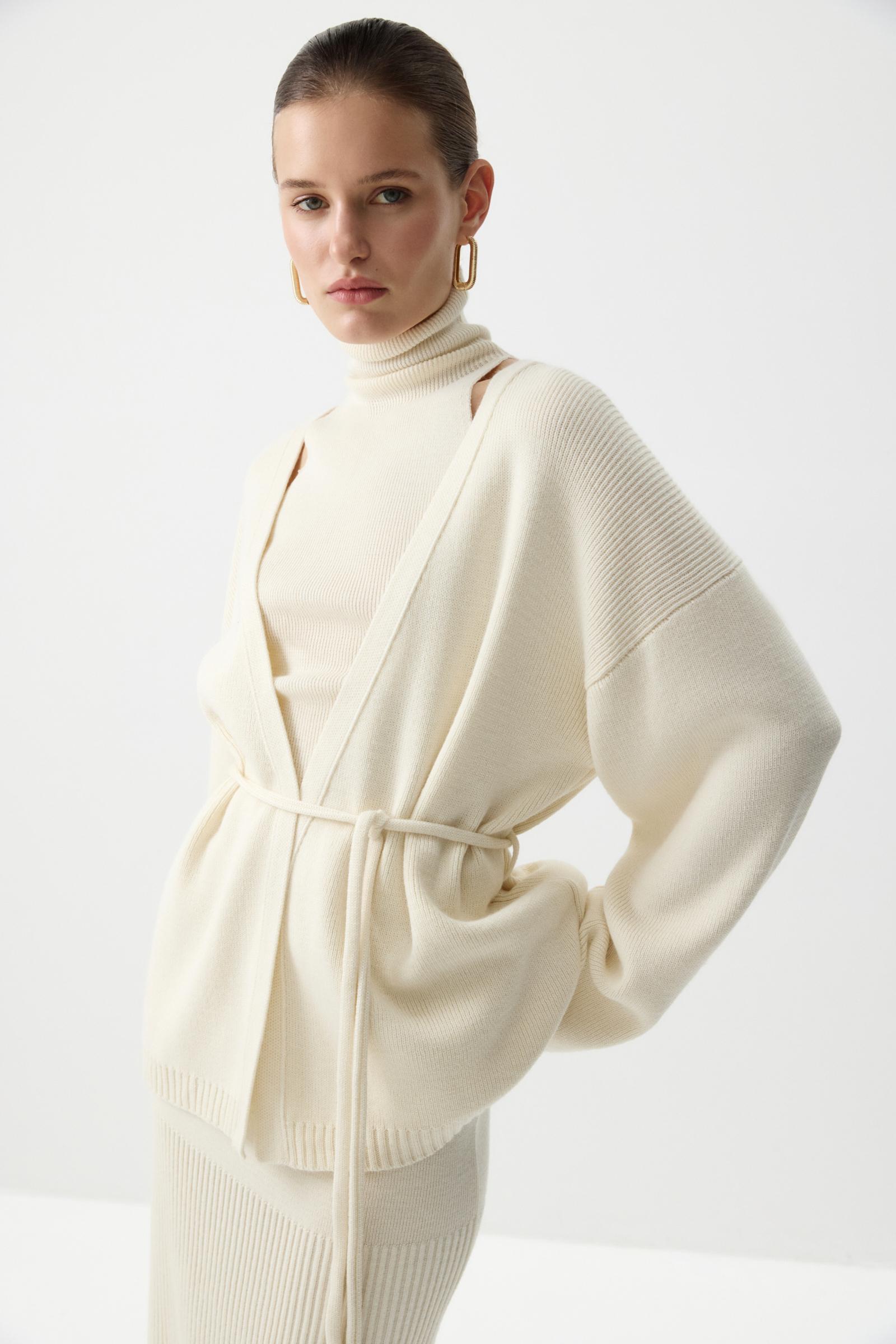 Кардиган из шерсти с поясом
