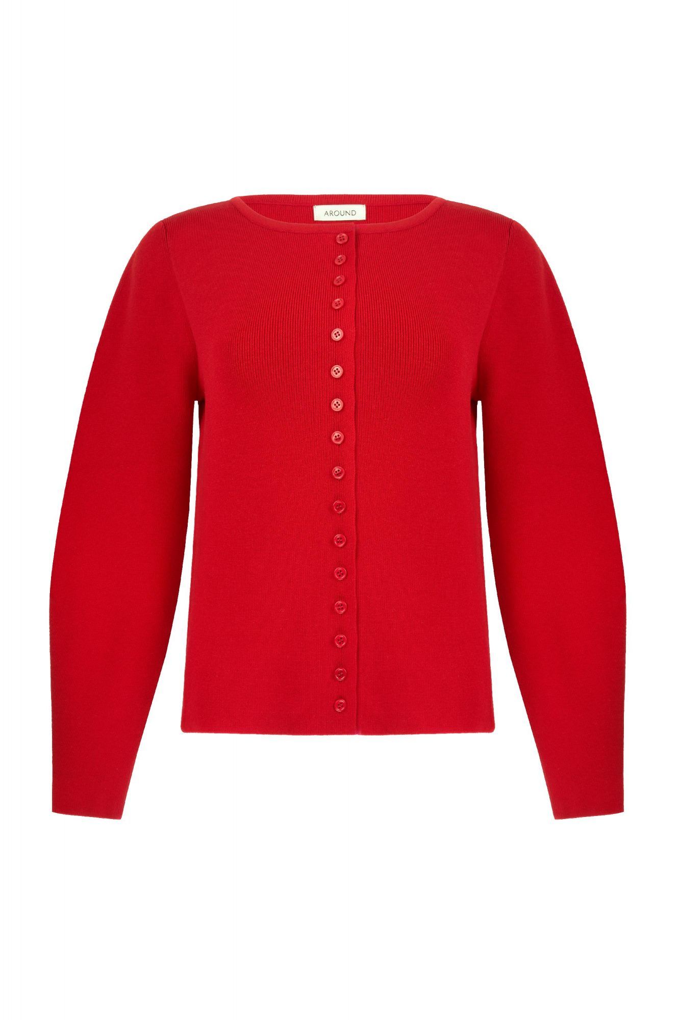 Кардиган заужен в талии; длинный формоустойчивый рукав создает акцентный округлый силуэт. Застежка на пуговицы из натуральной ракушки.