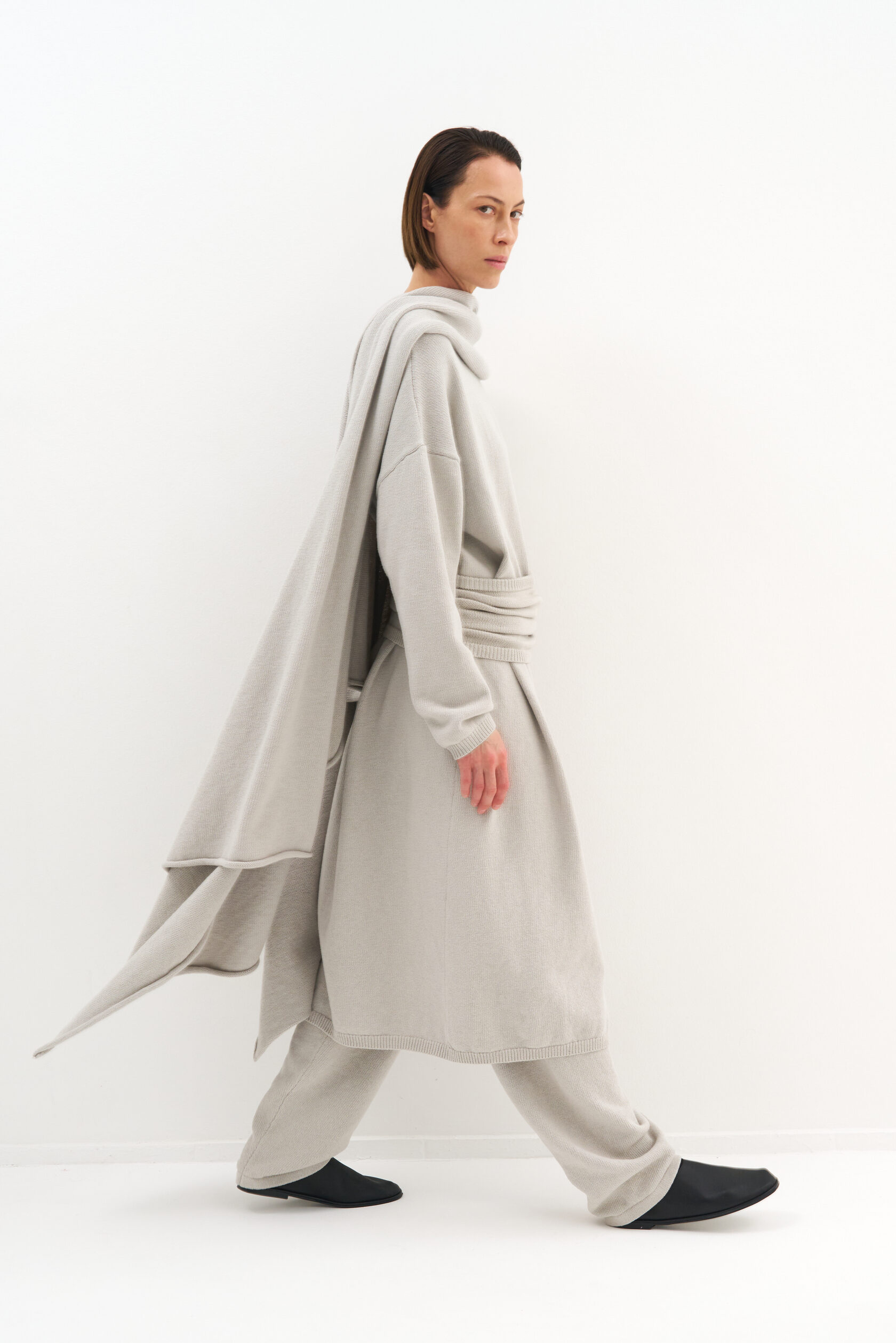 Изделие можно носить как с верхней одеждой поверх, так и как самостоятельную часть образа и стилизовать, закинув концы.