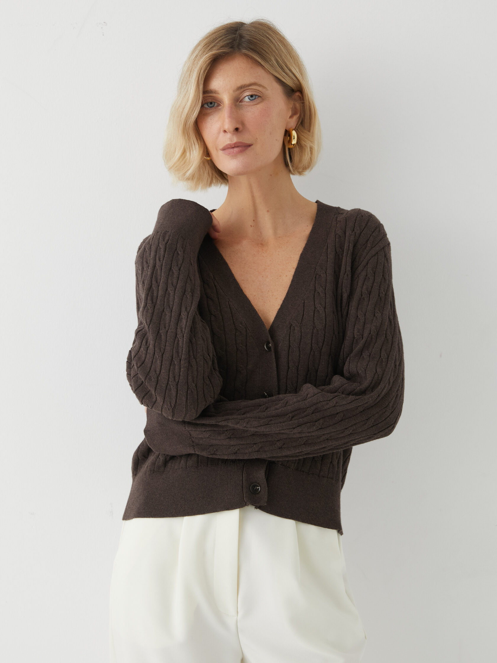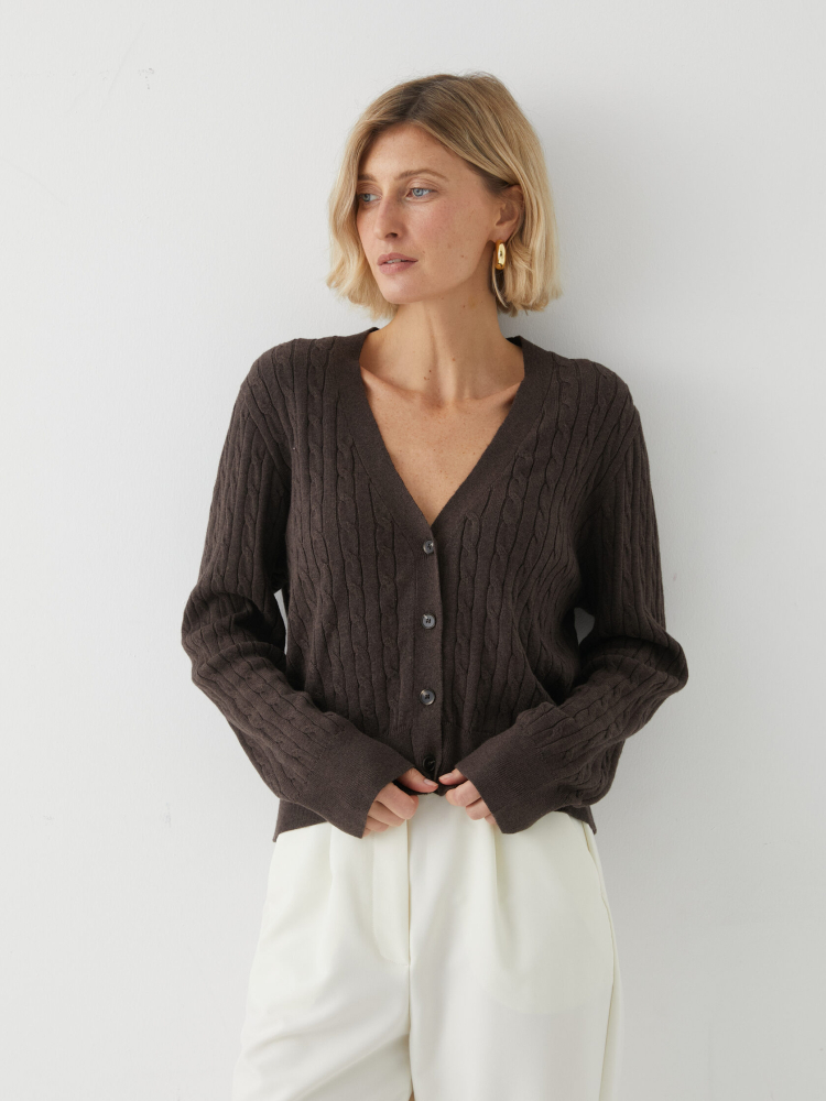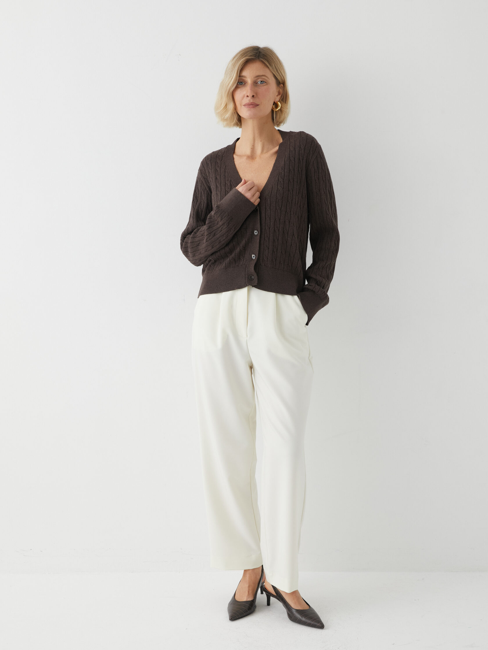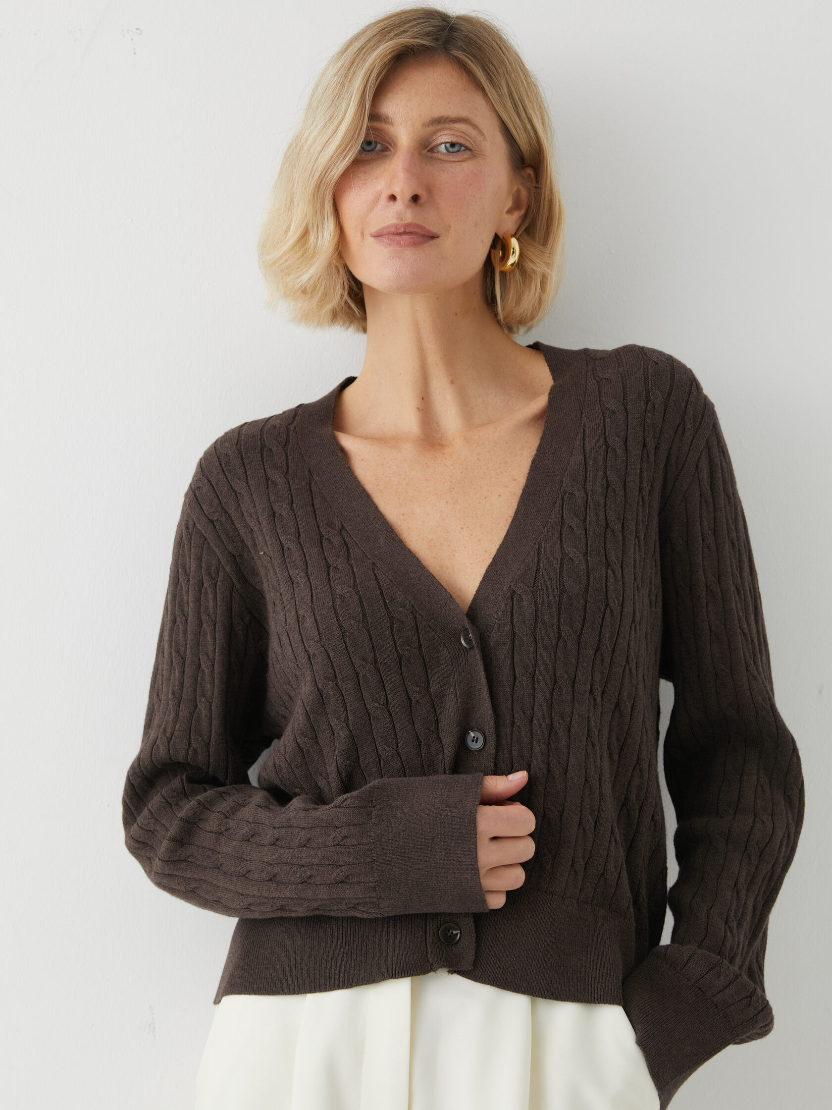 Узор «косы» придаёт кардигану оригинальный и модный вид, делая его заметным элементом вашего образа. Этот кардиган идеально подойдёт для создания как повседневных, так и более элегантных образов. Вы можете сочетать его с джинсами, брюками или юбками, добавляя в свой гардероб разнообразие и стиль.