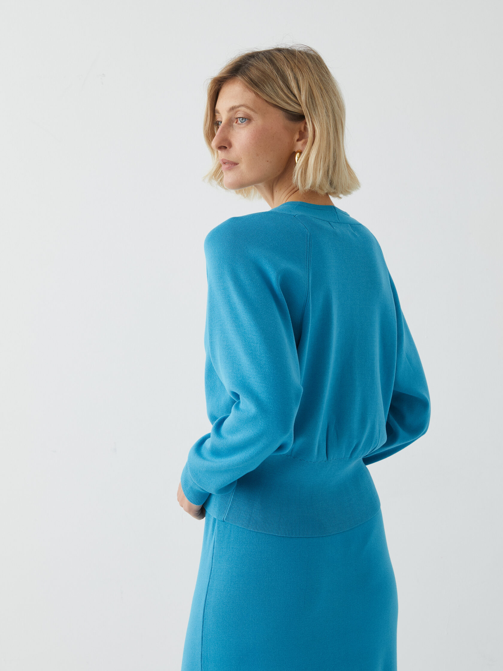 Свободный кардиган с рукавом «летучая мышь» создает обволакивающий силуэт, в котором мягкость трикотажа встречается с выразительным характером палитры.