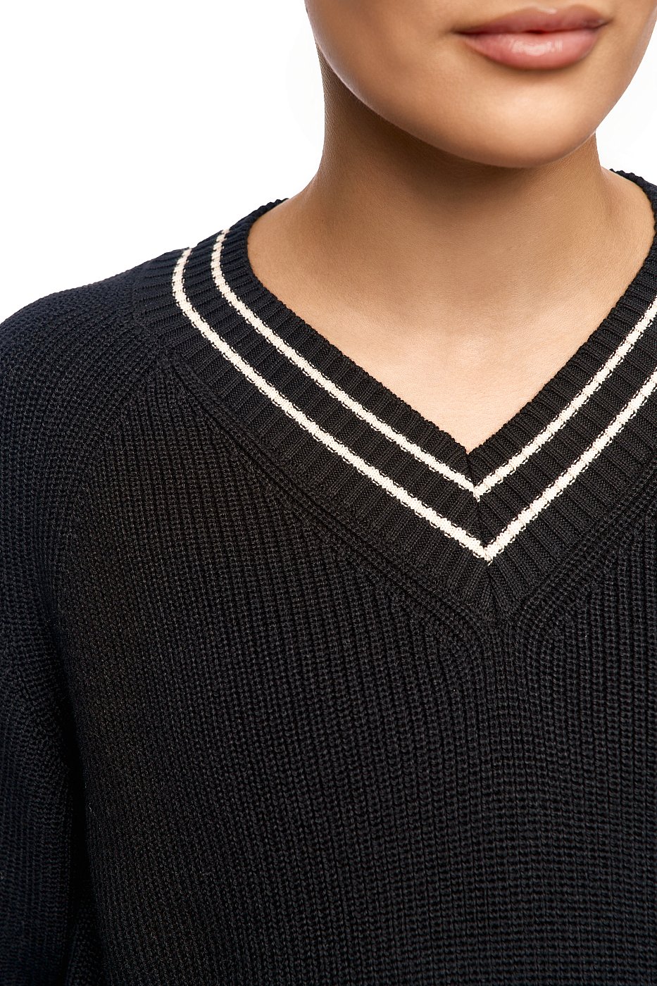 Чёрный пуловер с контрастным воротом — это стильная и удобная вещь в вашем гардеробе. Прекрасно подойдёт для создания повседневных образов. Контрастный воротник добавляет изюминку и делает модель заметной.