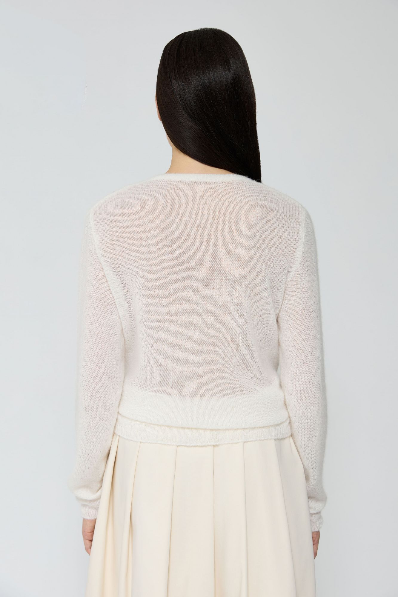 Пуловер связан из премиального состава: шерсти бейби альпаки и мериноса с добавлением искусственных волокон (для долгой службы изделия). Пряжа имеет пушистую фактуру, нежную к коже.
