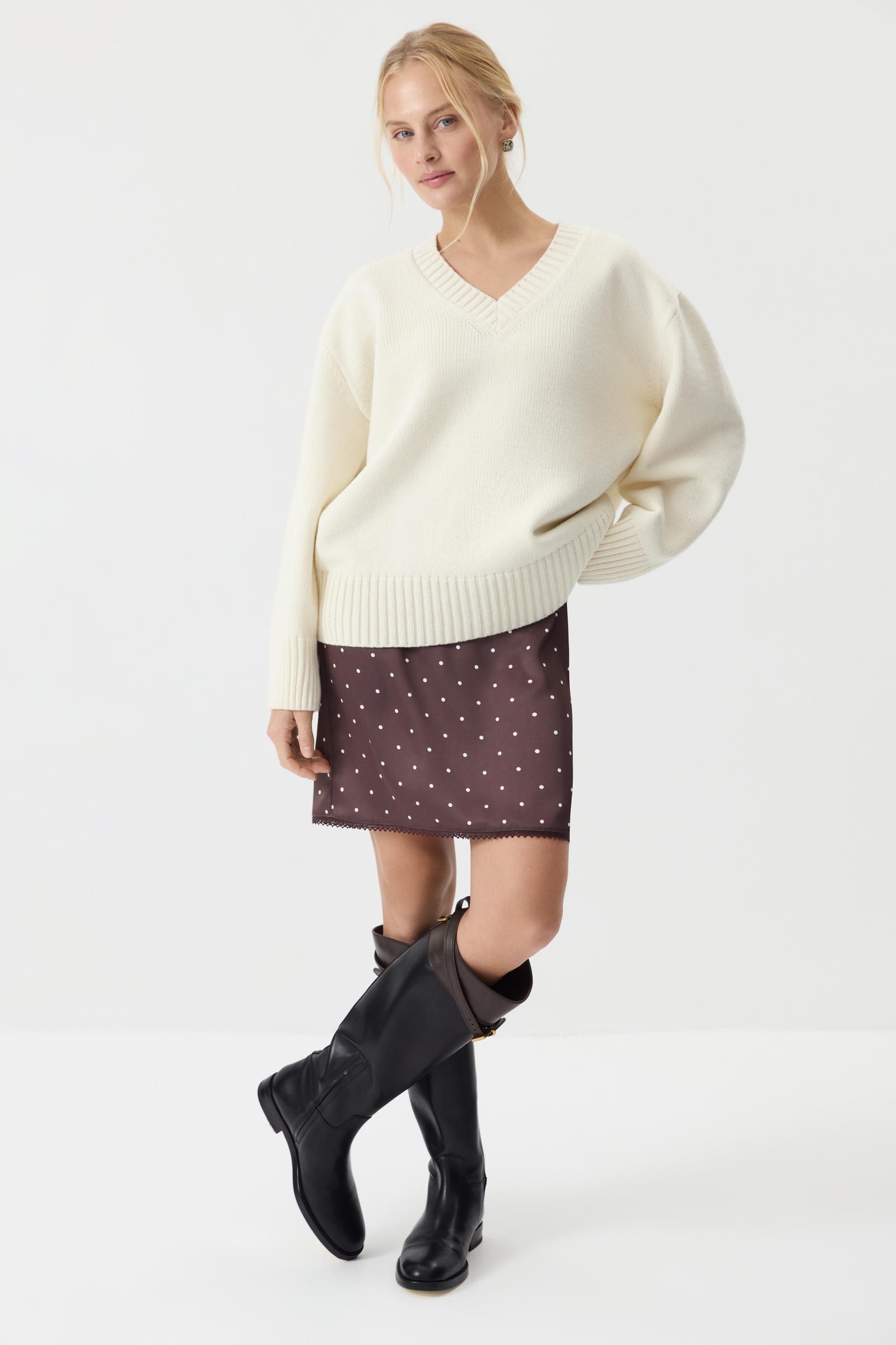 Если собираетесь носить джемпер в городе, то составьте повседневный и простой лук с джинсами, для более романтичного настроения примерьте с брюками-палаццо из нашей коллекции.