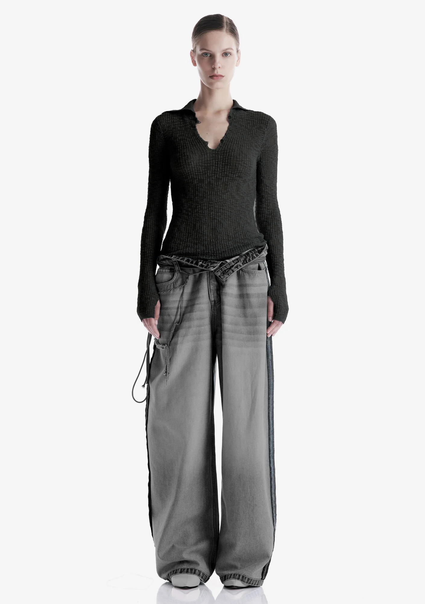 - Выполнен из смесовой хлопково-нейлоновой пряжи с выразительной фактурой