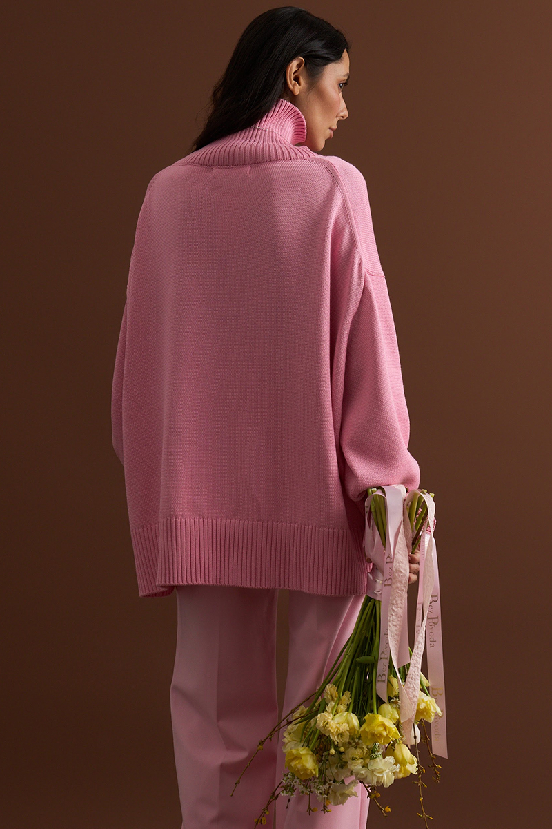 Спущенная линия плеч придаёт свитеру современный и модный вид, делая его идеальным выбором для создания расслабленных и стильных образов. Объёмный крой обеспечивает свободу движений и теплоту, что особенно актуально в холодное время года.