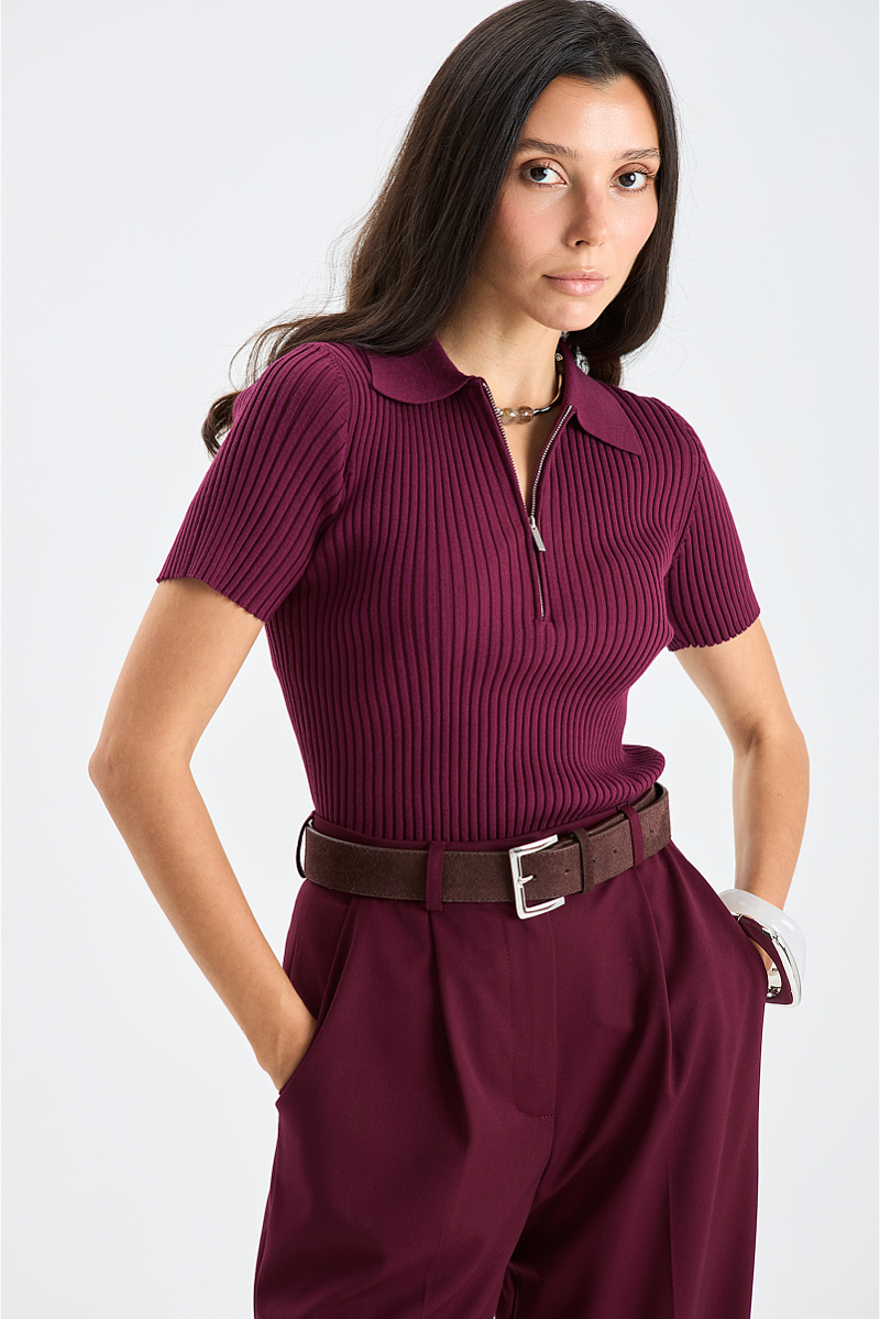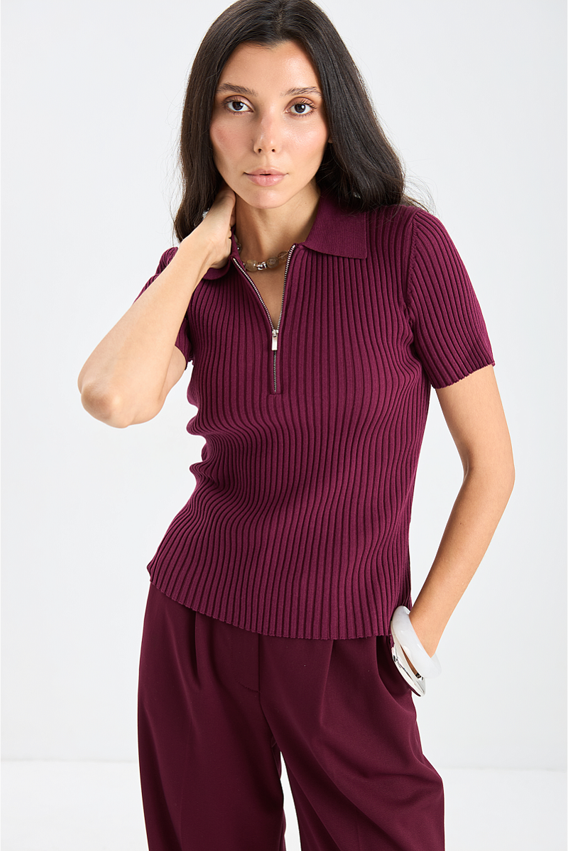 Короткие рукава и застёжка-молния придают джемперу современный и динамичный вид. Рубчик добавляет изделию интересную текстуру и делает его заметным в вашем образе. Джемпер идеально подходит для создания повседневных и спортивных луков, а также может стать основой для более элегантных образов с добавлением аксессуаров.