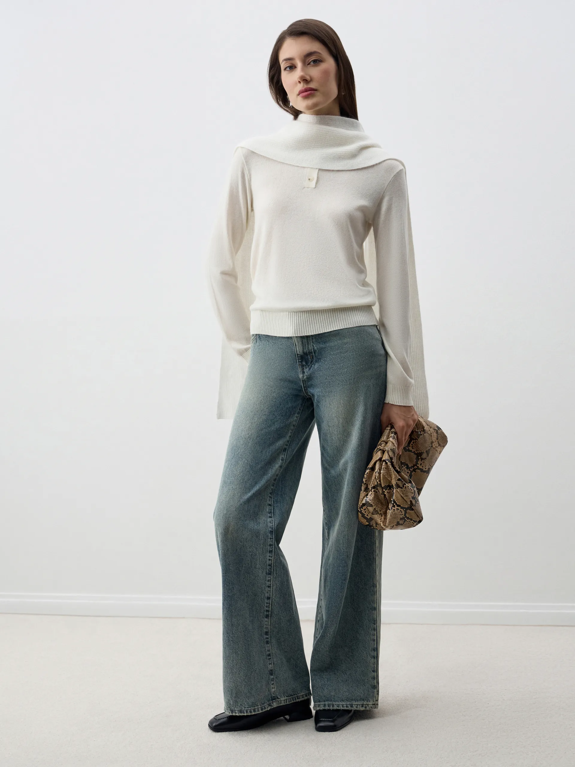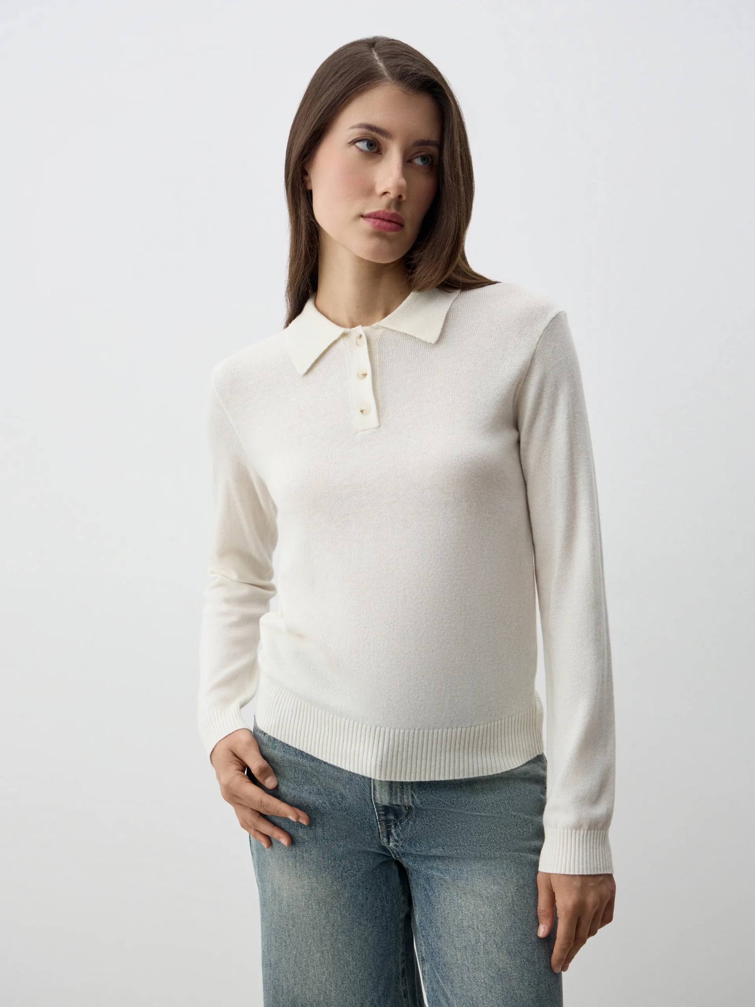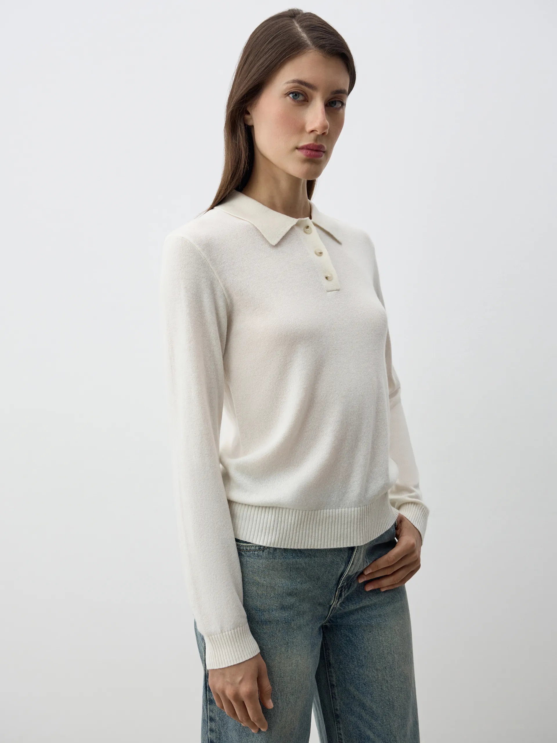 Джемпер-поло Persia с длинным рукавом — элегантная и универсальная модель, сочетающая комфорт и стиль. Мягкий трикотаж с добавлением шерсти и кашемира приятен к телу, хорошо держит форму и сохраняет тепло. Воротник-поло придаёт изделию утончённость и делает его уместным как в повседневных, так и в деловых образах. Идеально сочетается с брюками, юбками или денимом, создавая лаконичные и современные аутфиты.