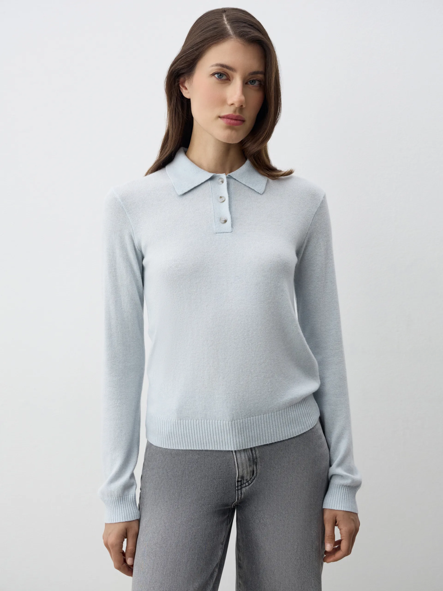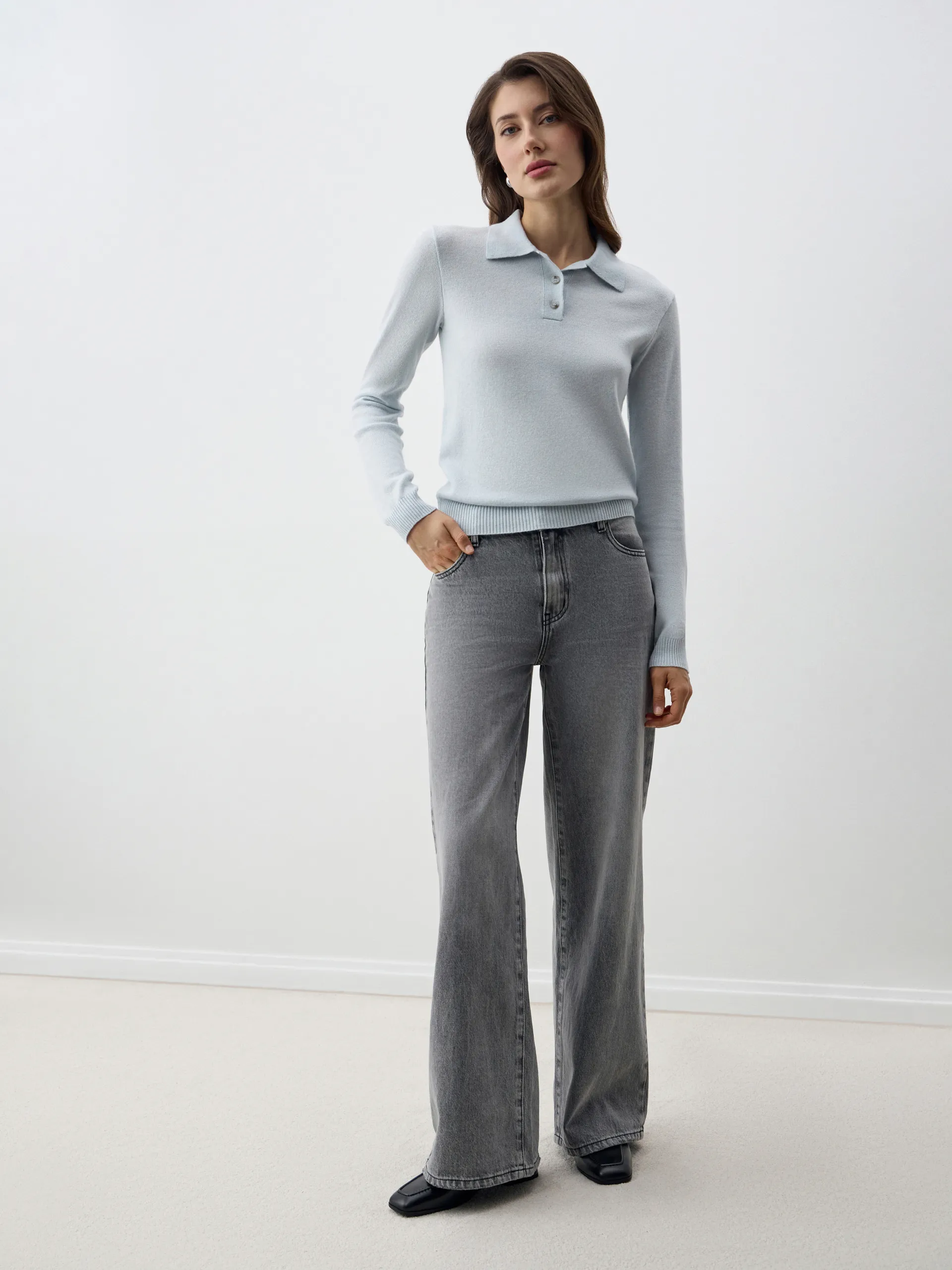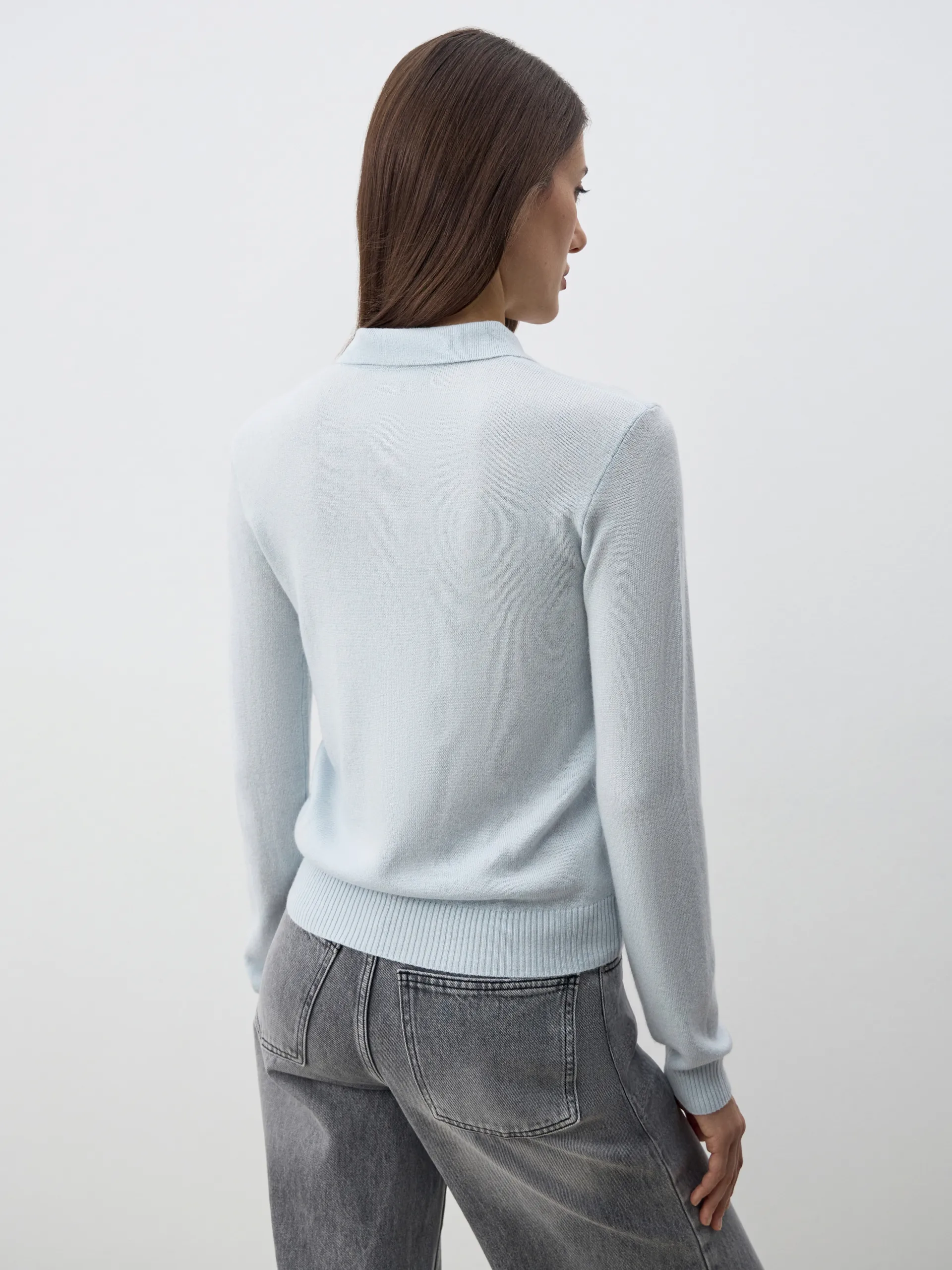 Джемпер-поло Persia с длинным рукавом — элегантная и универсальная модель, сочетающая комфорт и стиль. Мягкий трикотаж с добавлением шерсти и кашемира приятен к телу, хорошо держит форму и сохраняет тепло. Воротник-поло придаёт изделию утончённость и делает его уместным как в повседневных, так и в деловых образах. Идеально сочетается с брюками, юбками или денимом, создавая лаконичные и современные аутфиты.