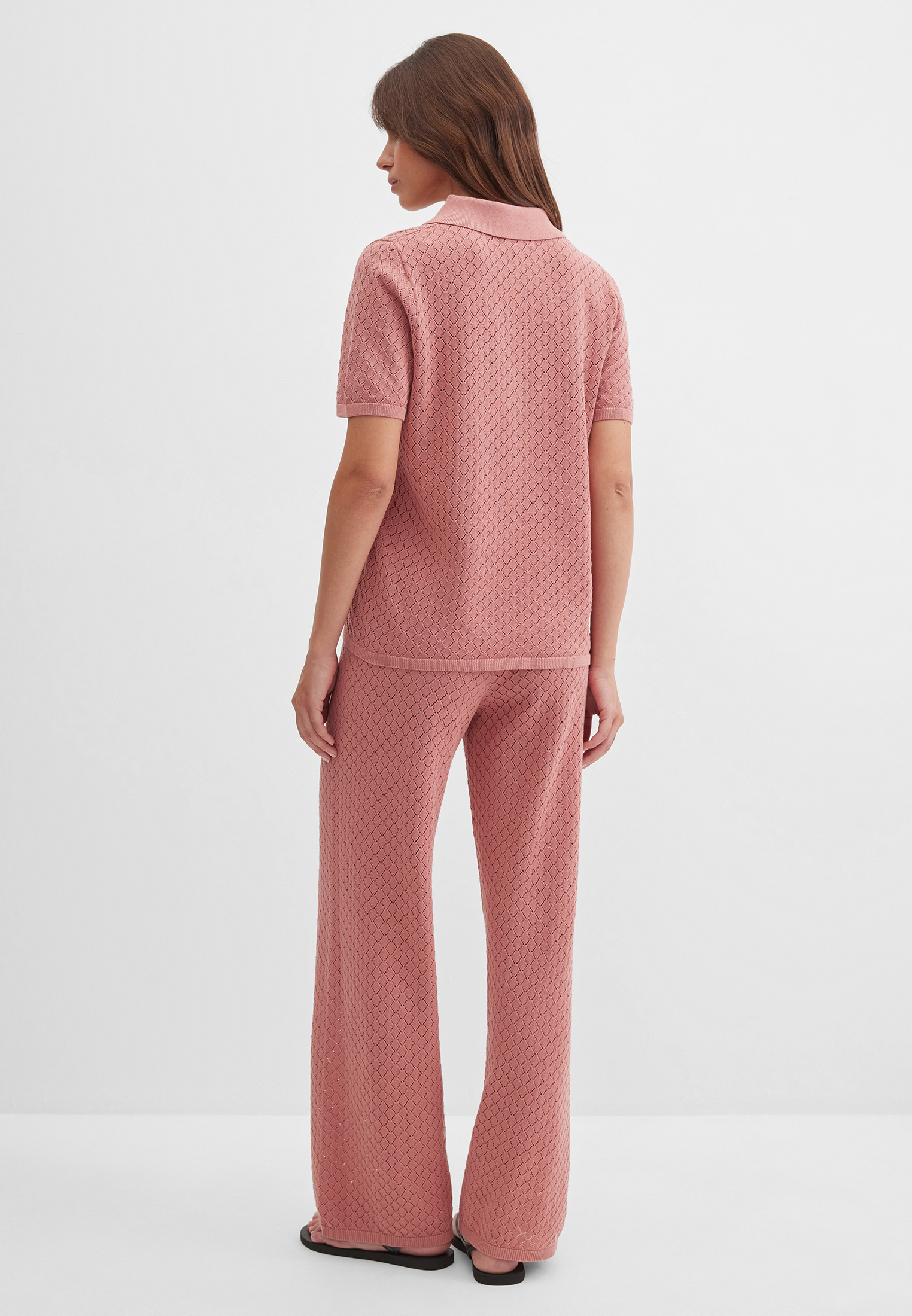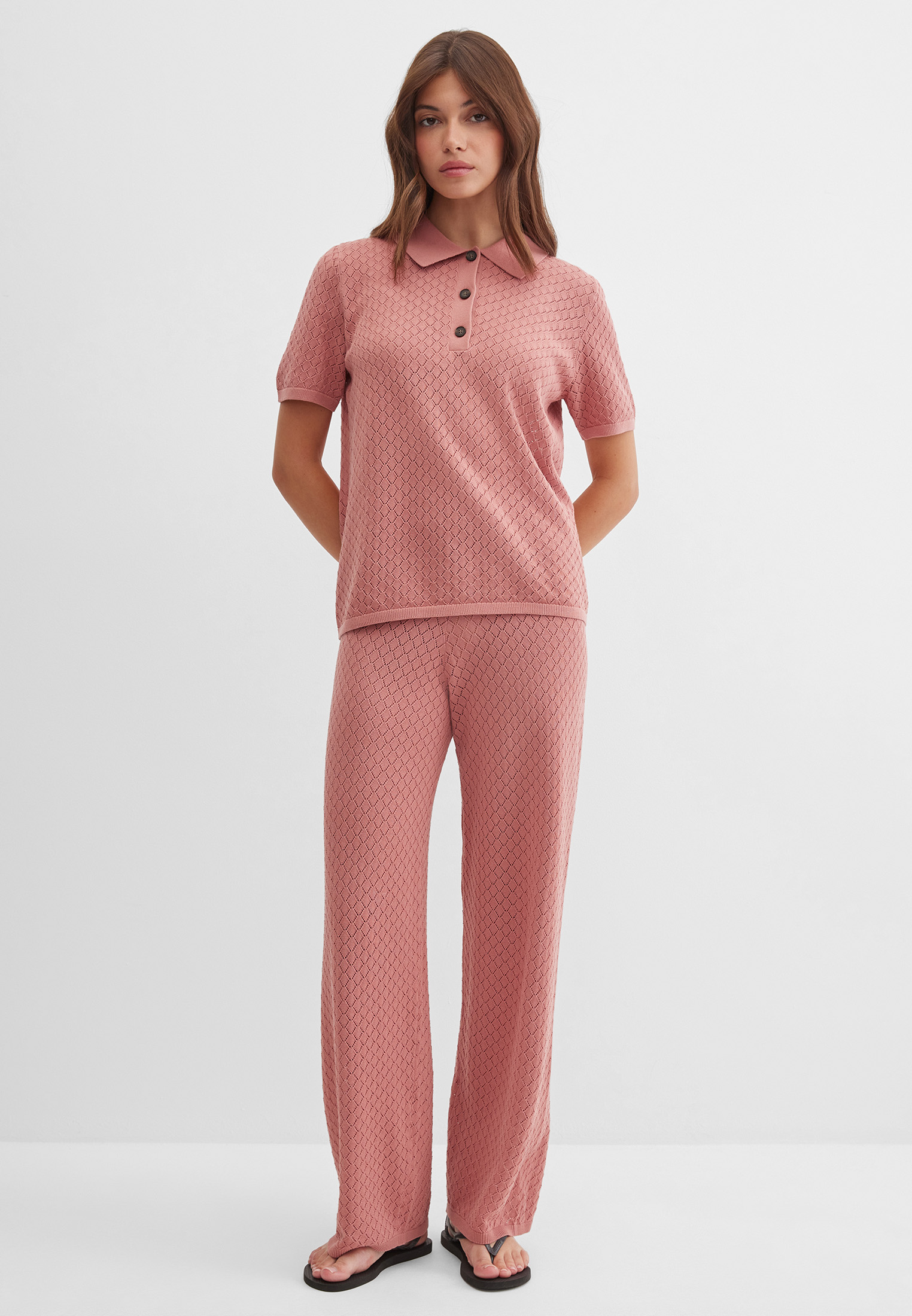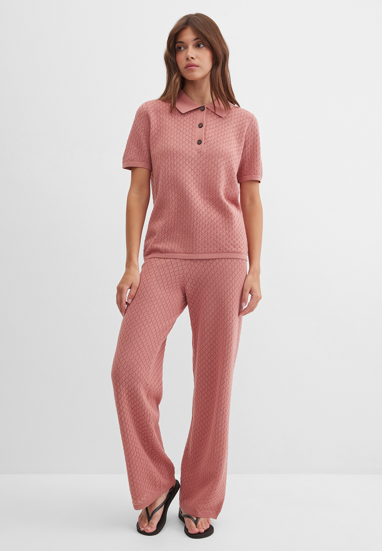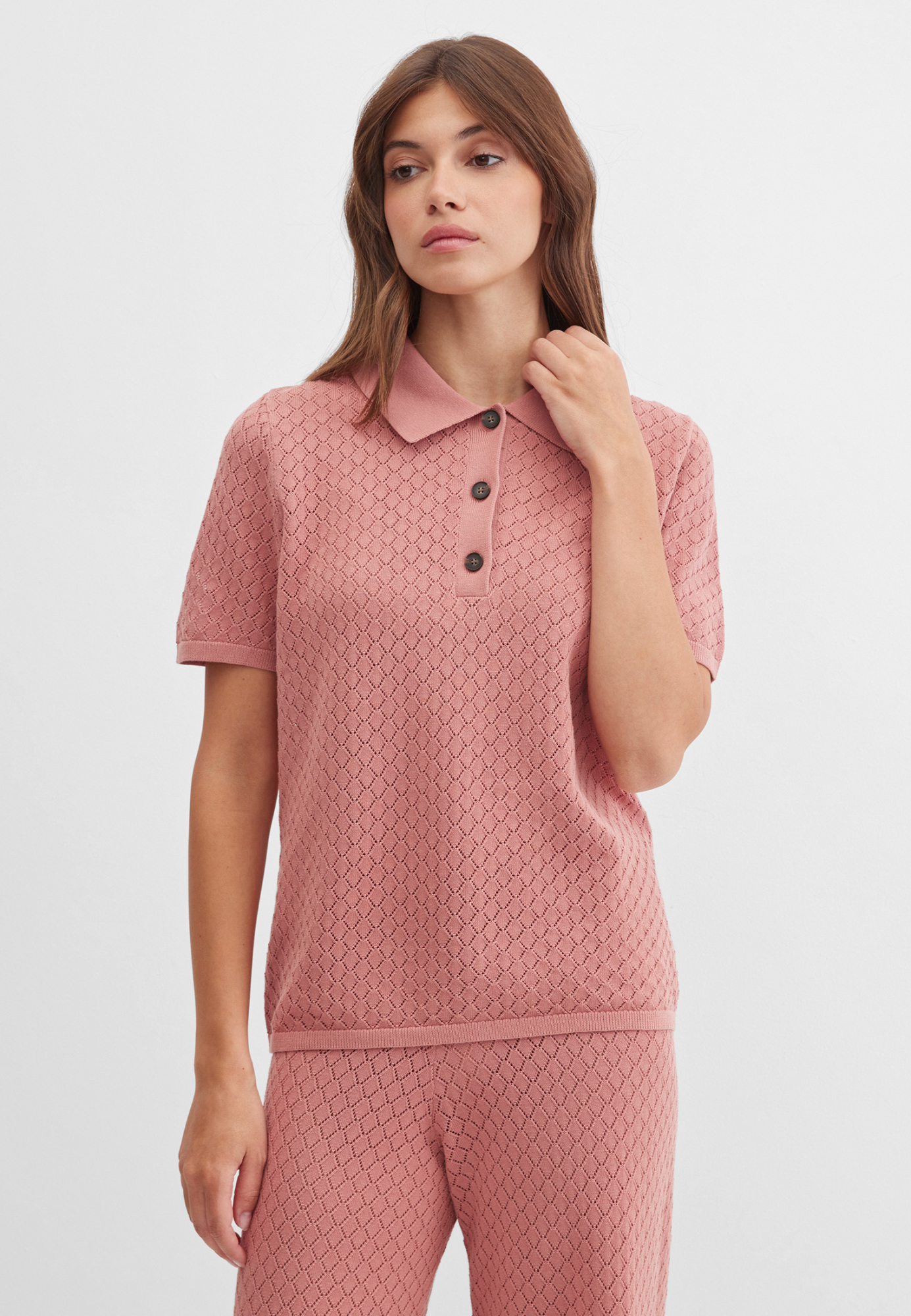 Поло из хлопка с ажурным узором — идеальный выбор для создания стильного и комфортного образа. Лёгкая и воздушная ткань обеспечивает приятные ощущения при носке. Прекрасно сочетается с брюками в тон, позволяя вам создать гармоничный и модный ансамбль.