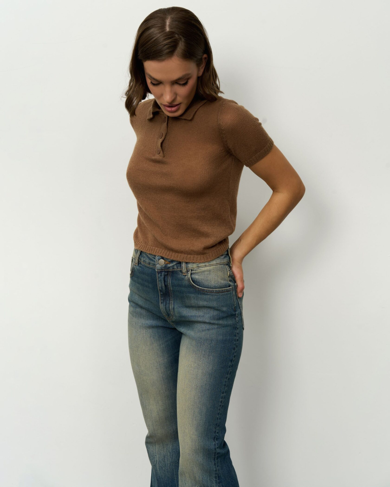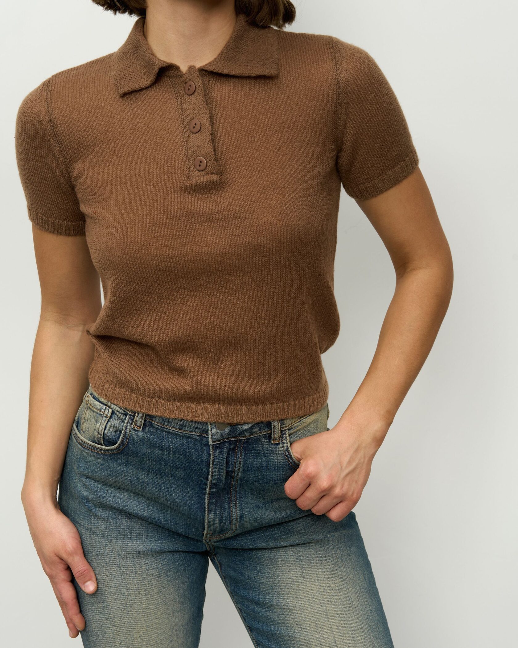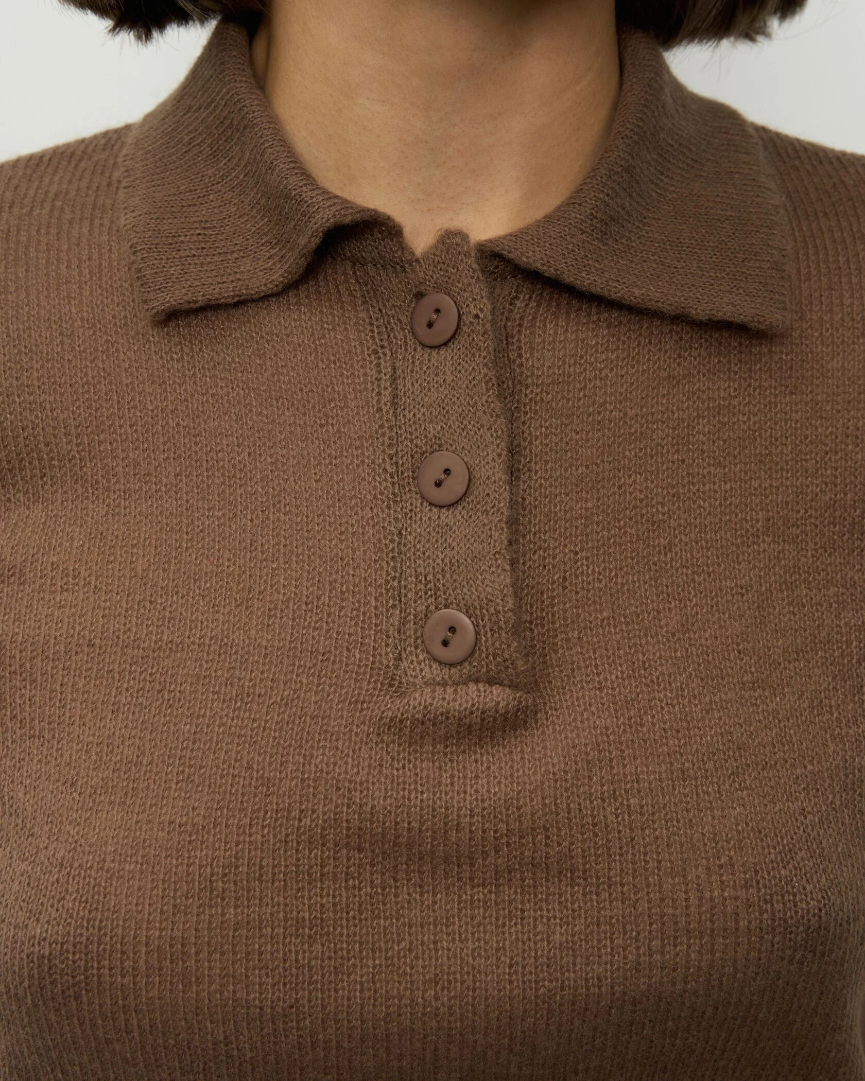 Вязаное поло в шоколадном оттенке — это идеальный выбор для уютных повседневных образов, встреч и стильных сетов, где важны благородство цвета и комфорт.