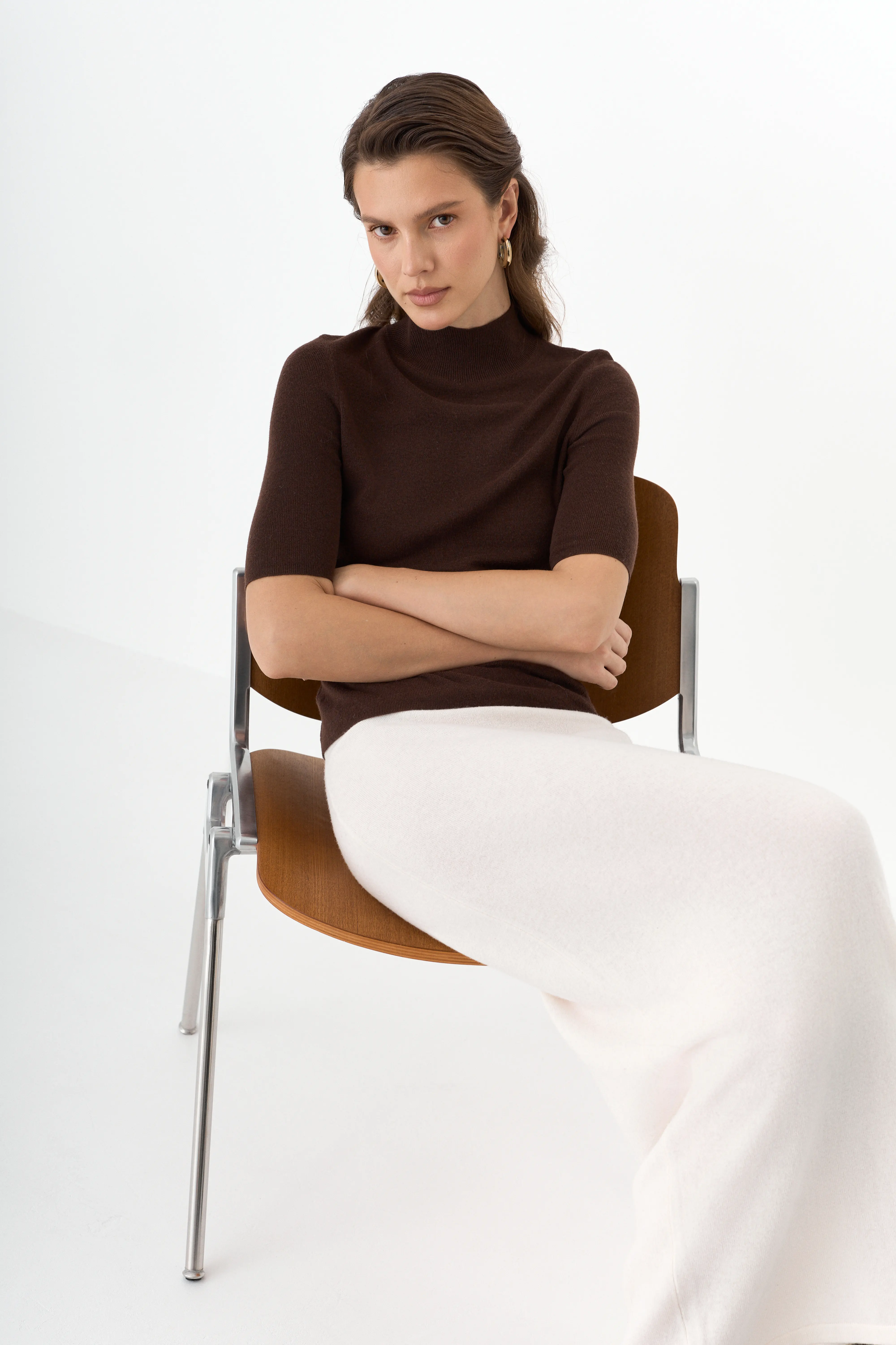 Топ с воротником-стойкой из мериноса – это элегантный и утонченный элемент гардероба, который сочетает в себе комфорт, тепло и стильный дизайн. Изделие выполнено из высококачественной шерсти мериноса – натурального материала, известного своей мягкостью, легкостью и способностью сохранять тепло даже в прохладную погоду. Воротник-стойка добавляет топу изысканности и делает его универсальным. Этот топ станет идеальным выбором для тех, кто ценит натуральные материалы, комфорт и стиль.