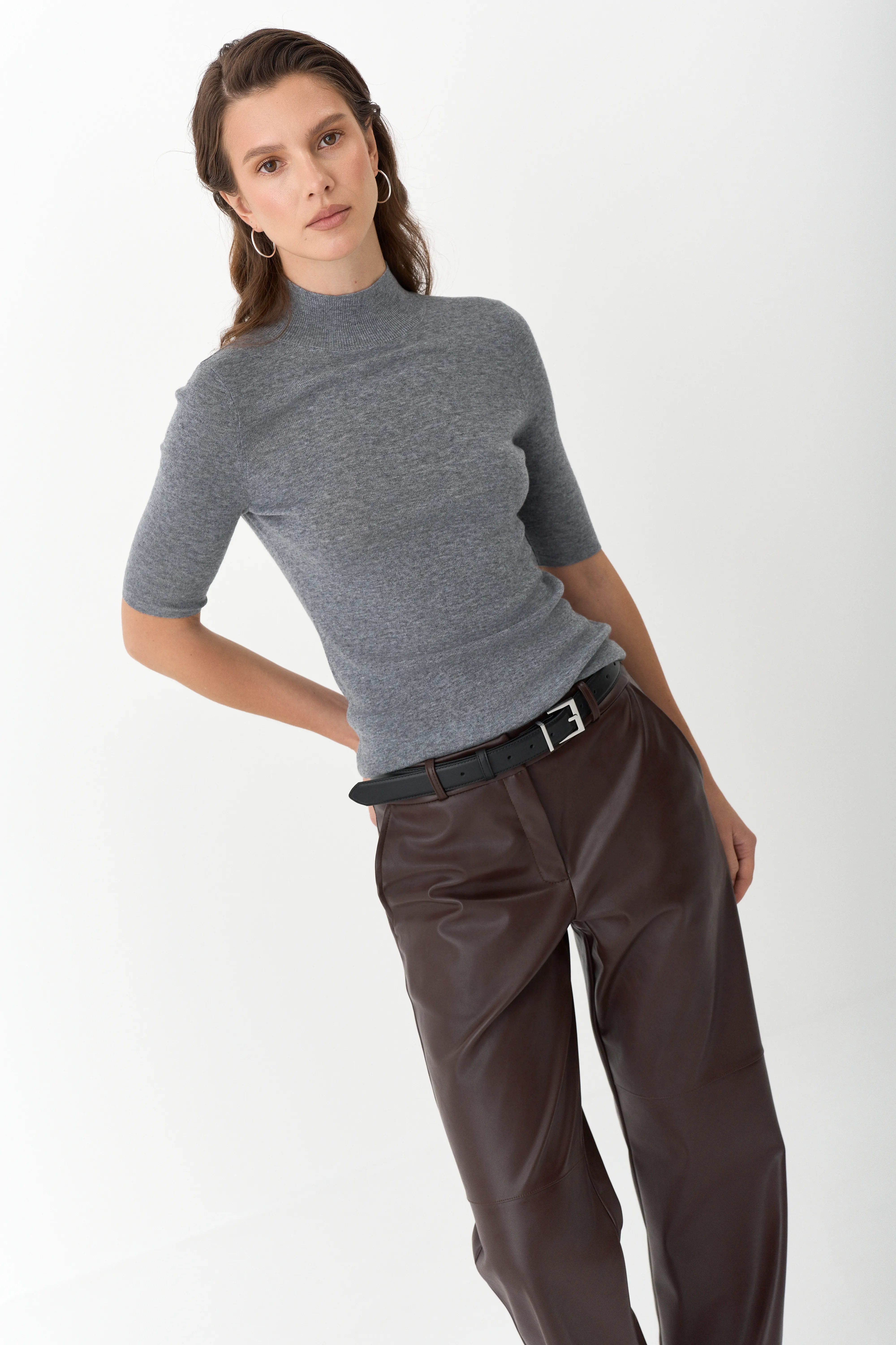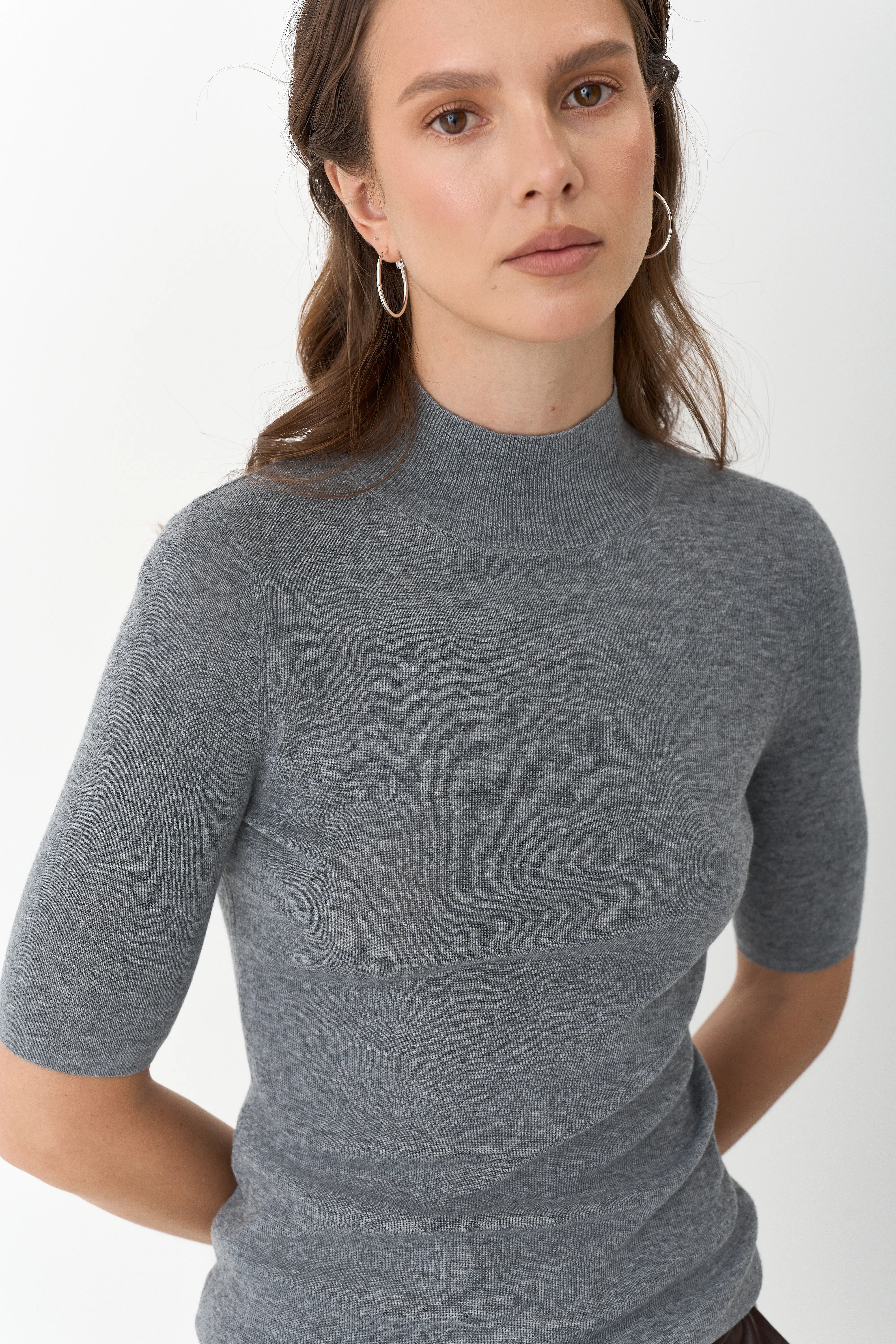 Топ с воротником-стойкой из мериноса – это элегантный и утонченный элемент гардероба, который сочетает в себе комфорт, тепло и стильный дизайн. Изделие выполнено из высококачественной шерсти мериноса – натурального материала, известного своей мягкостью, легкостью и способностью сохранять тепло даже в прохладную погоду. Воротник-стойка добавляет топу изысканности и делает его универсальным. Этот топ станет идеальным выбором для тех, кто ценит натуральные материалы, комфорт и стиль.