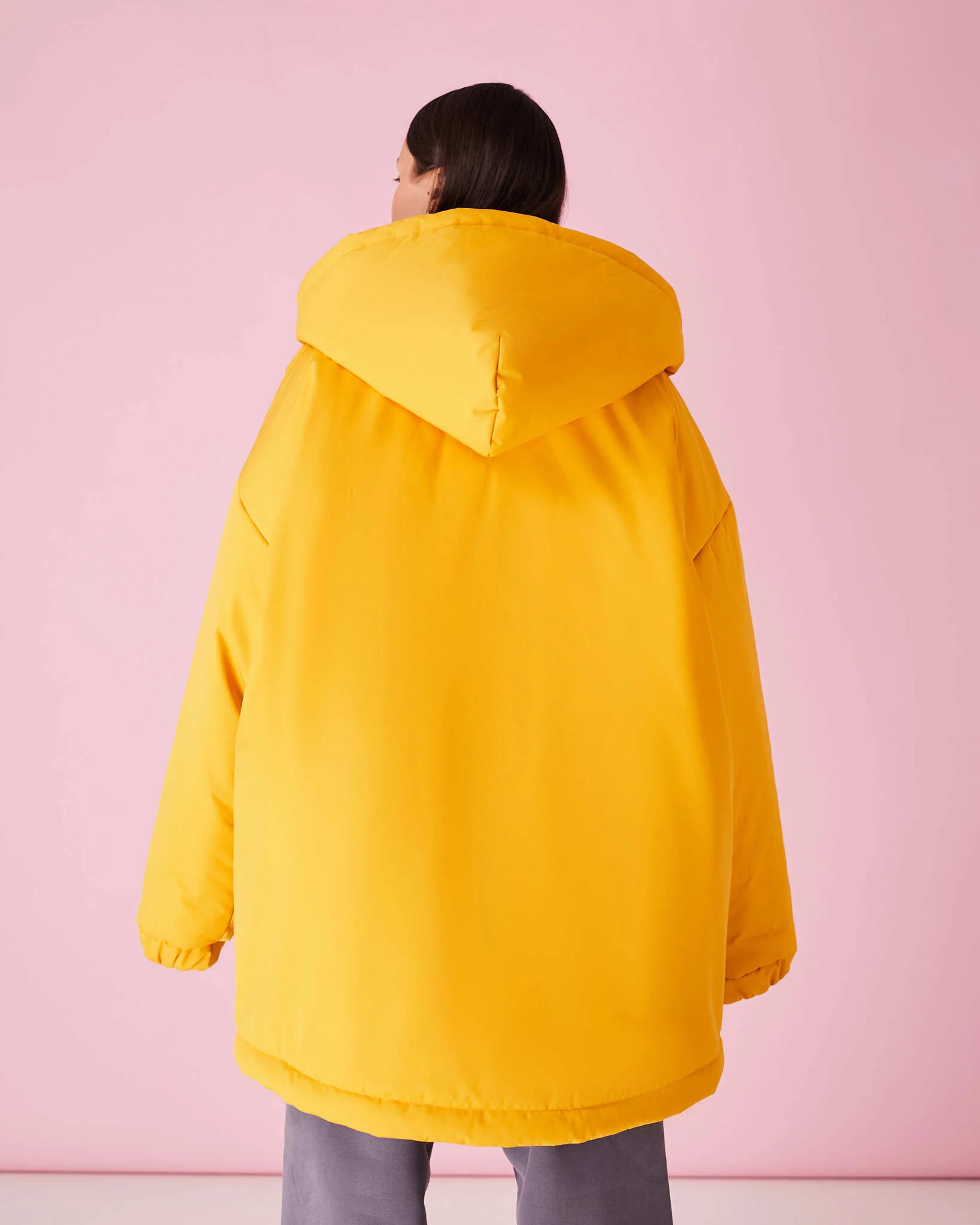 По низу изделия резинка, которая дает возможность стягивать низ или же, наоборот, носить его свободным.