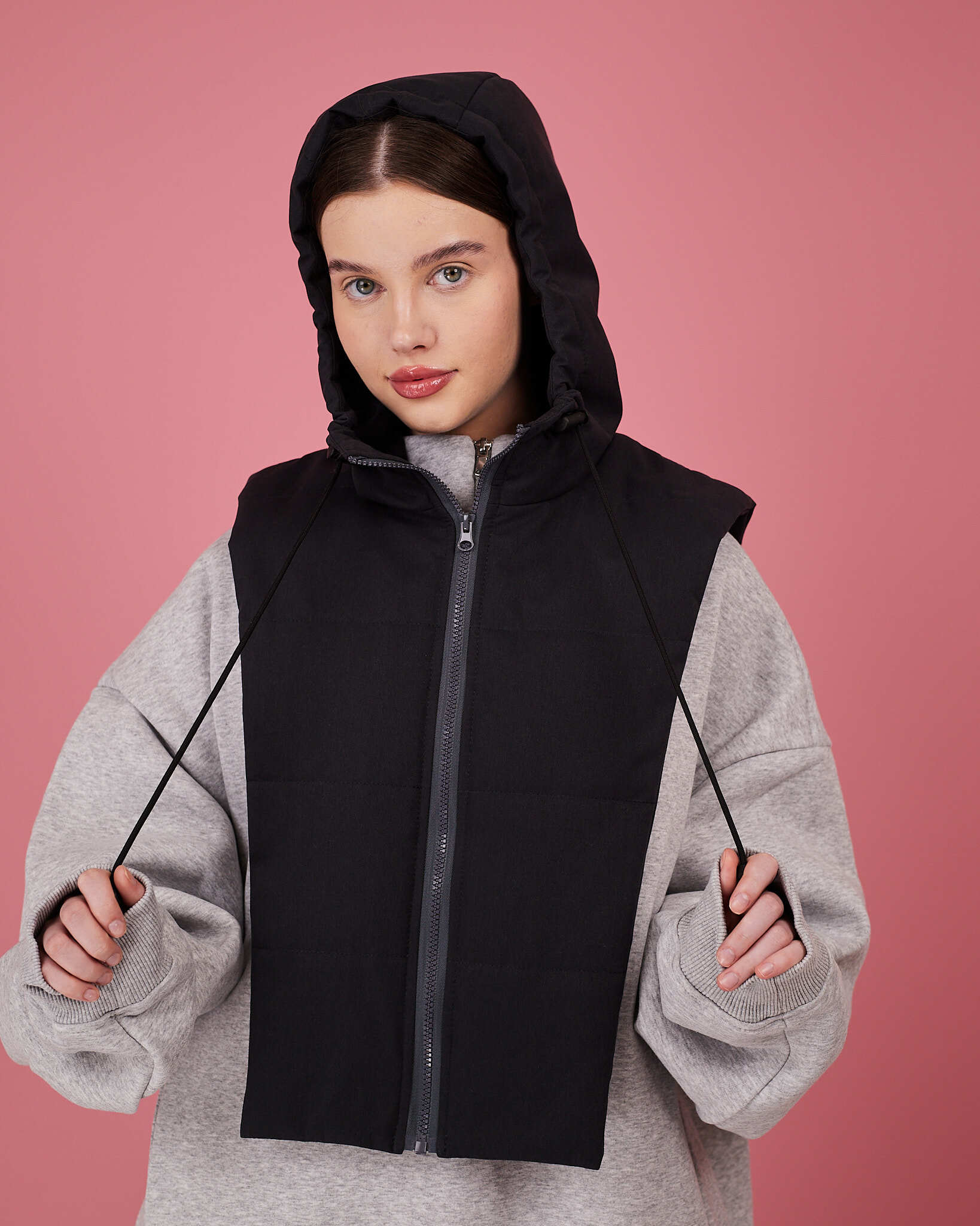 Капюшон-манишка выполнен из плащевой водоотталкивающей ткани, утеплитель альполюкс 100.