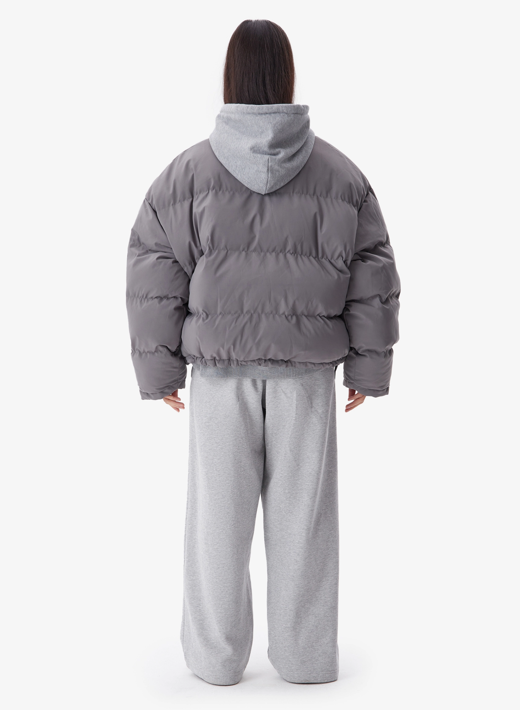 Двустронний бомбер свободного кроя с капюшоном из хлопковой ткани