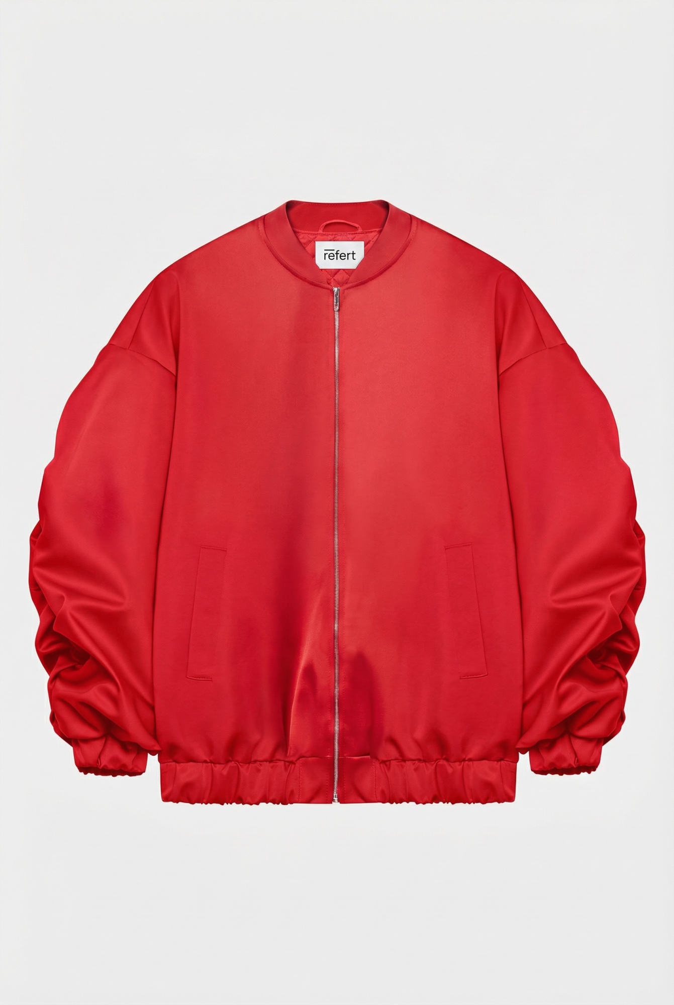 Модный сатиновый бомбер завершит аутфиты на осень. Спущенный широкий рукав удобен для многослойных образов. Широкая кулиска помогает защититься от ветра и стильно смотрится. Воротничок-полустойка и широкие листочки добавляют спортивному стилю элегантности. Бомбер выполнен на утеплённой стёганой подкладке.