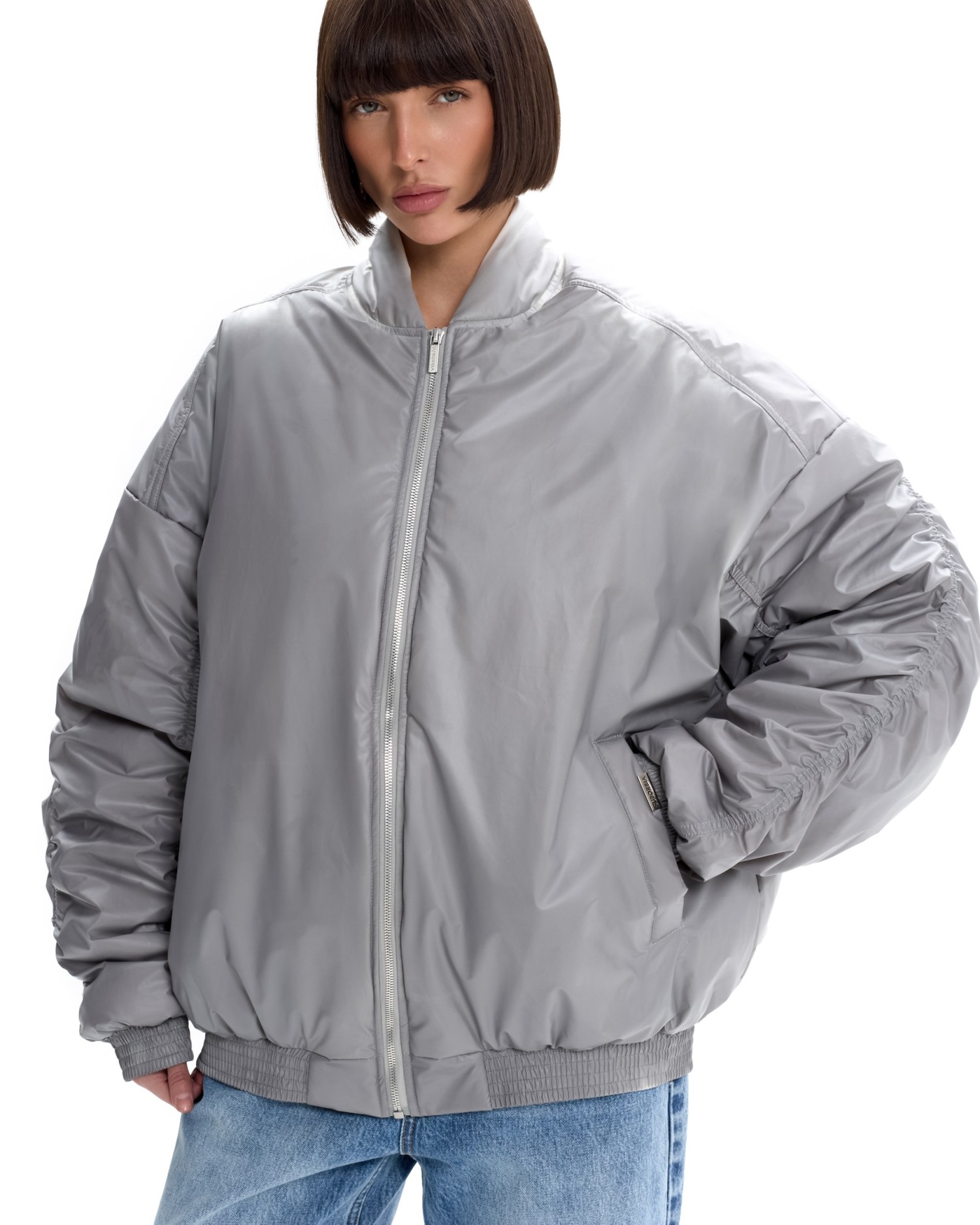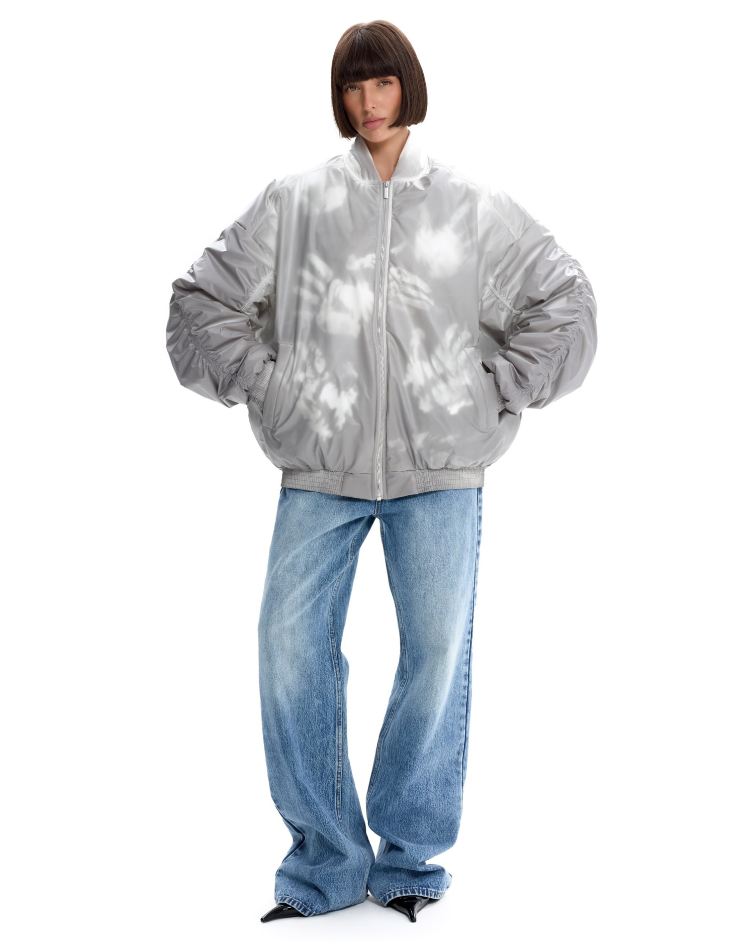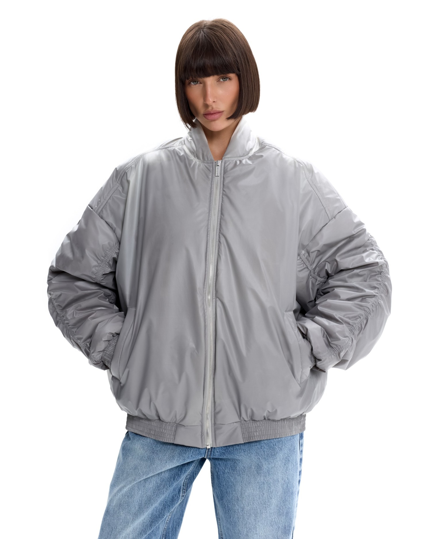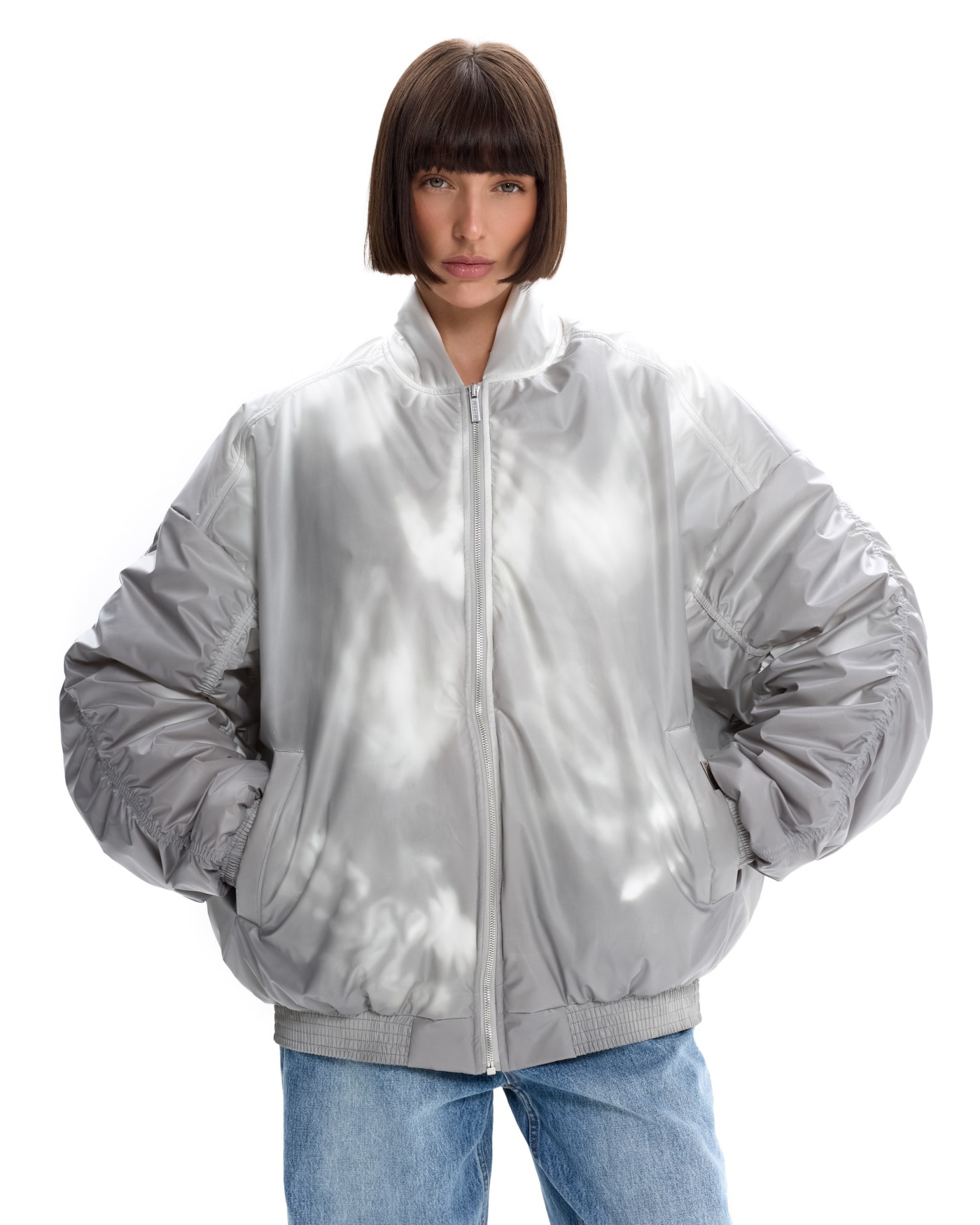 Оверсайз бомбер из термохромной ткани. Меняет цвет с серого на белый при воздействии тепла.
