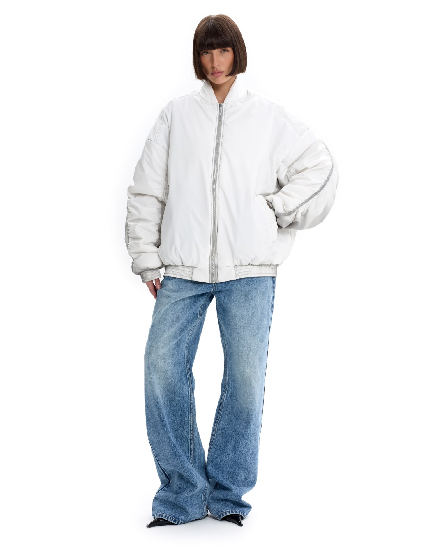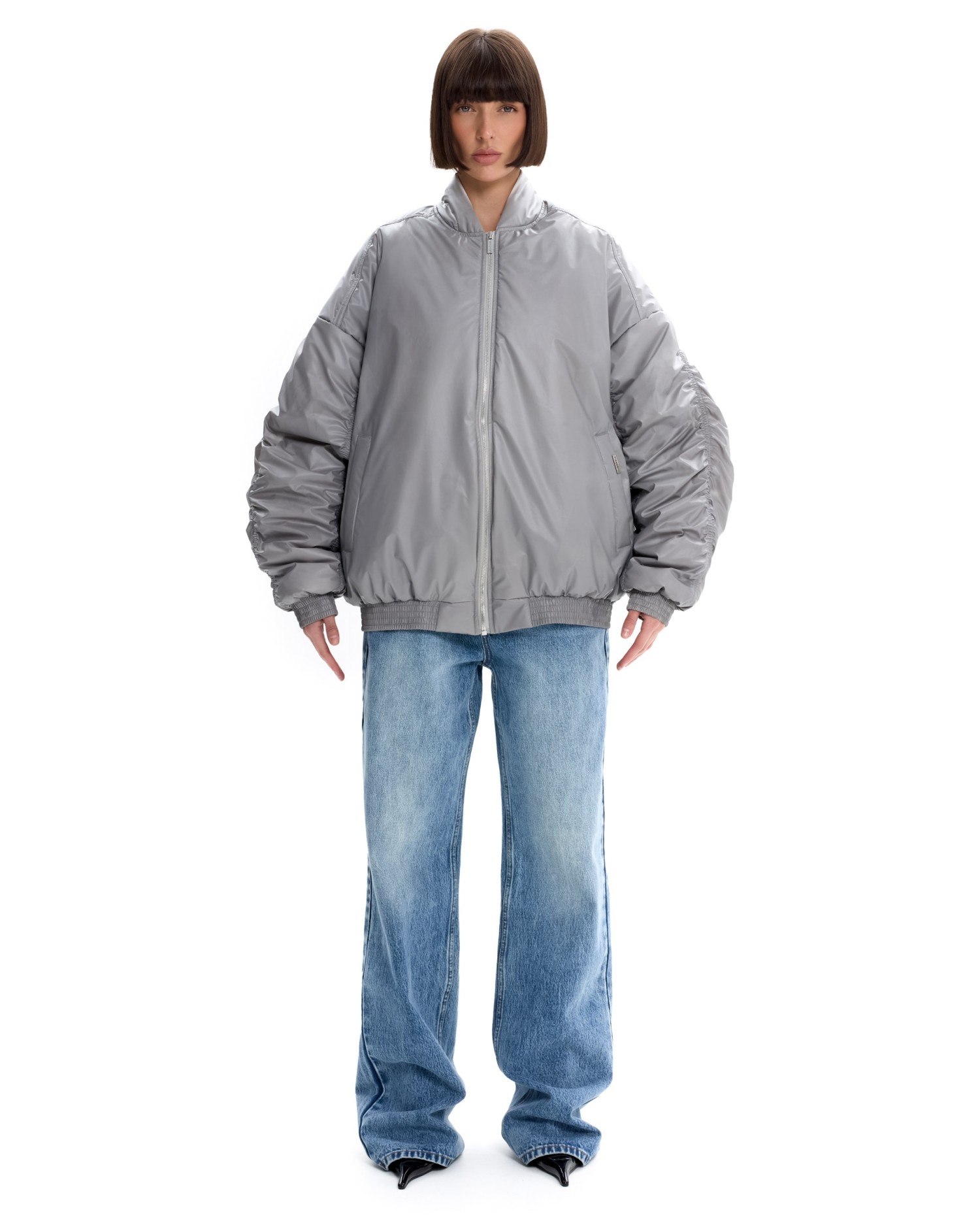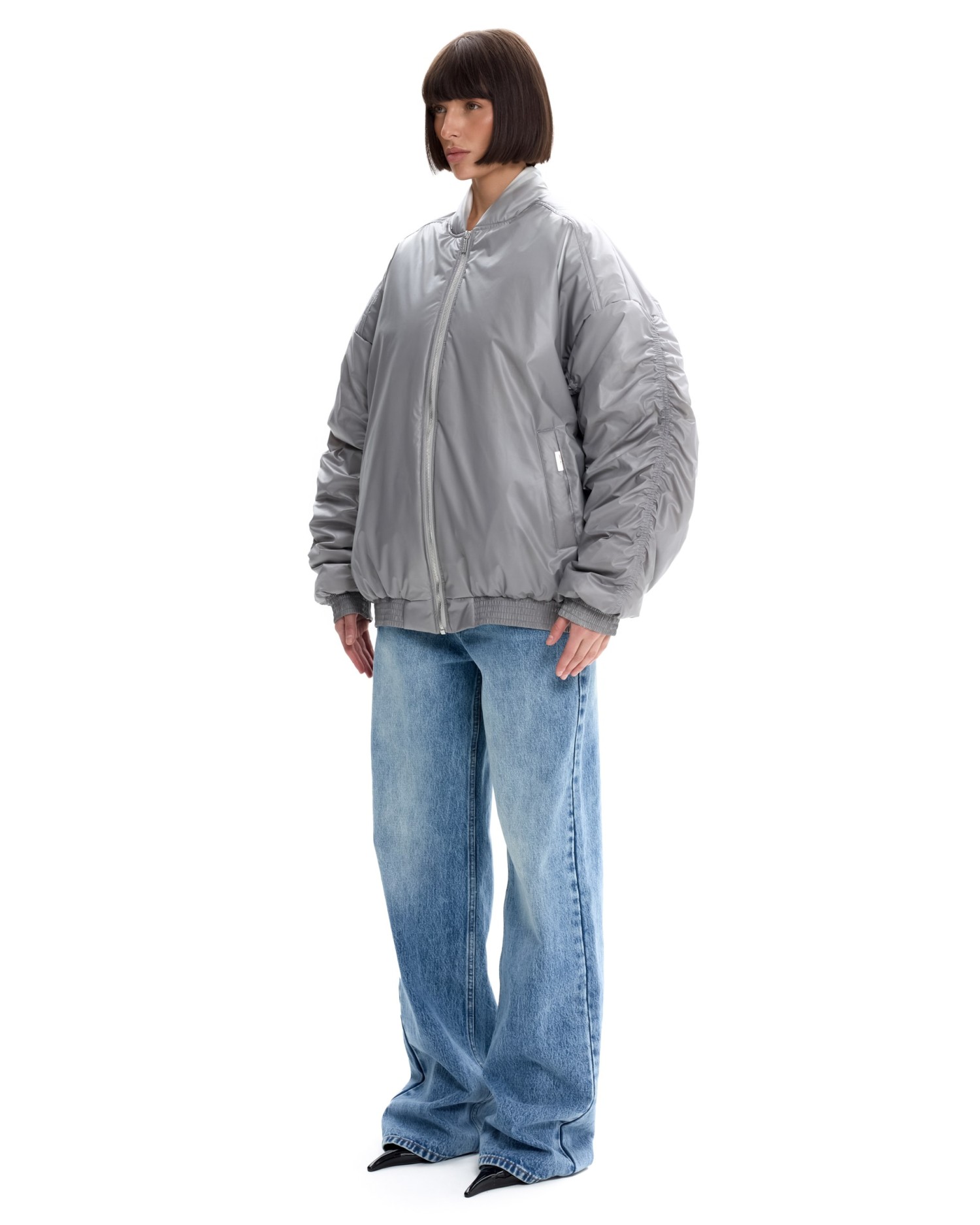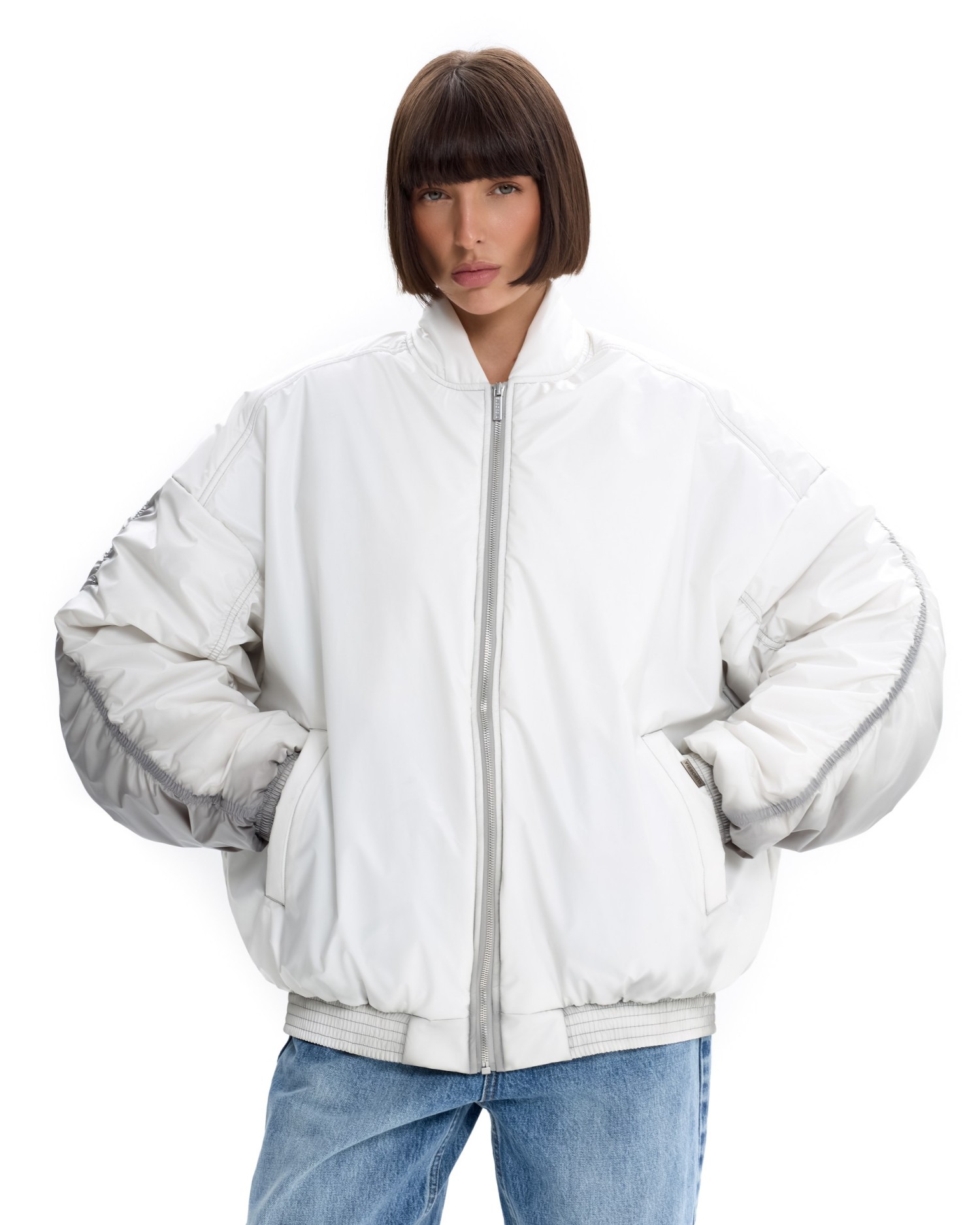 Оверсайз бомбер из термохромной ткани. Меняет цвет с серого на белый при воздействии тепла.