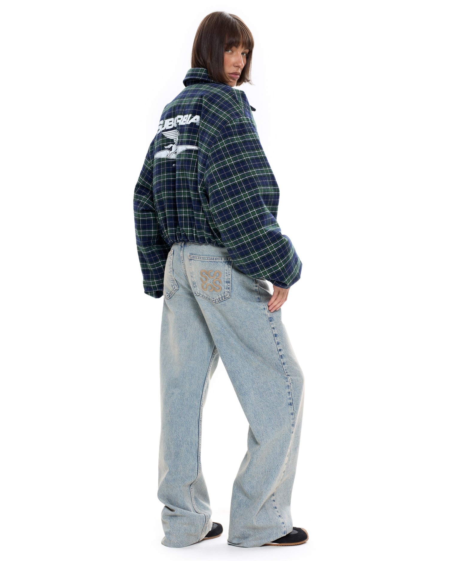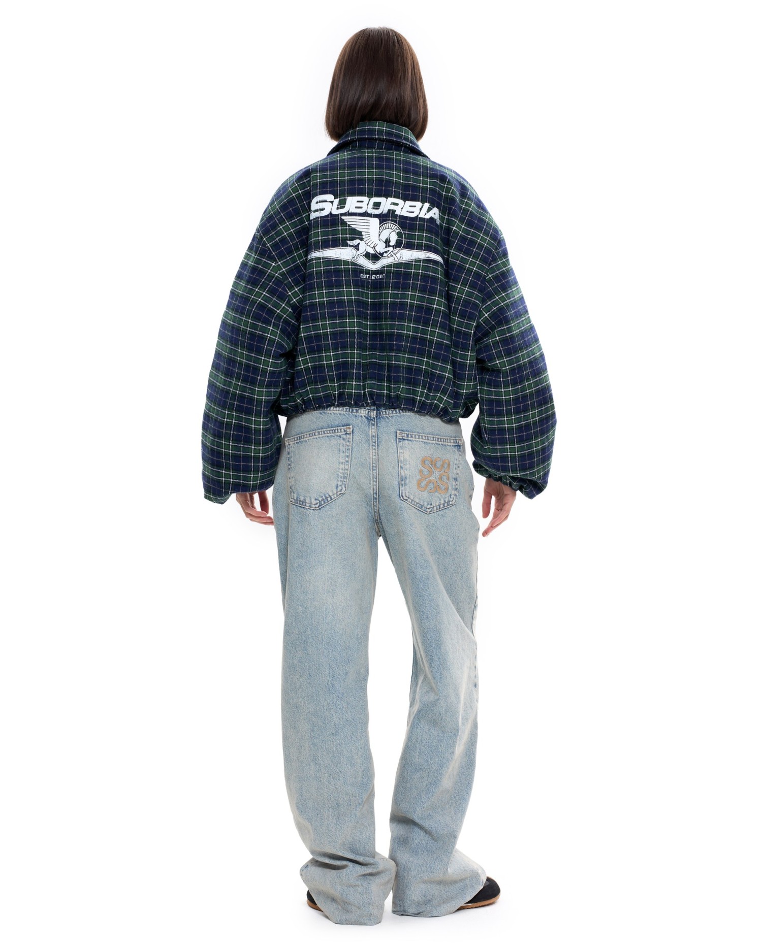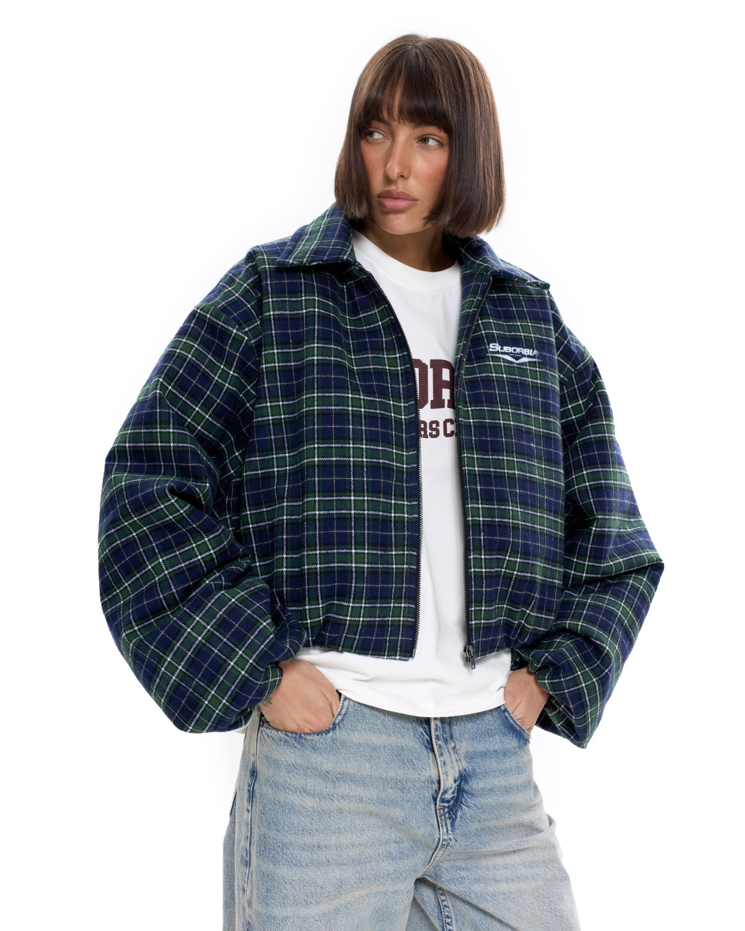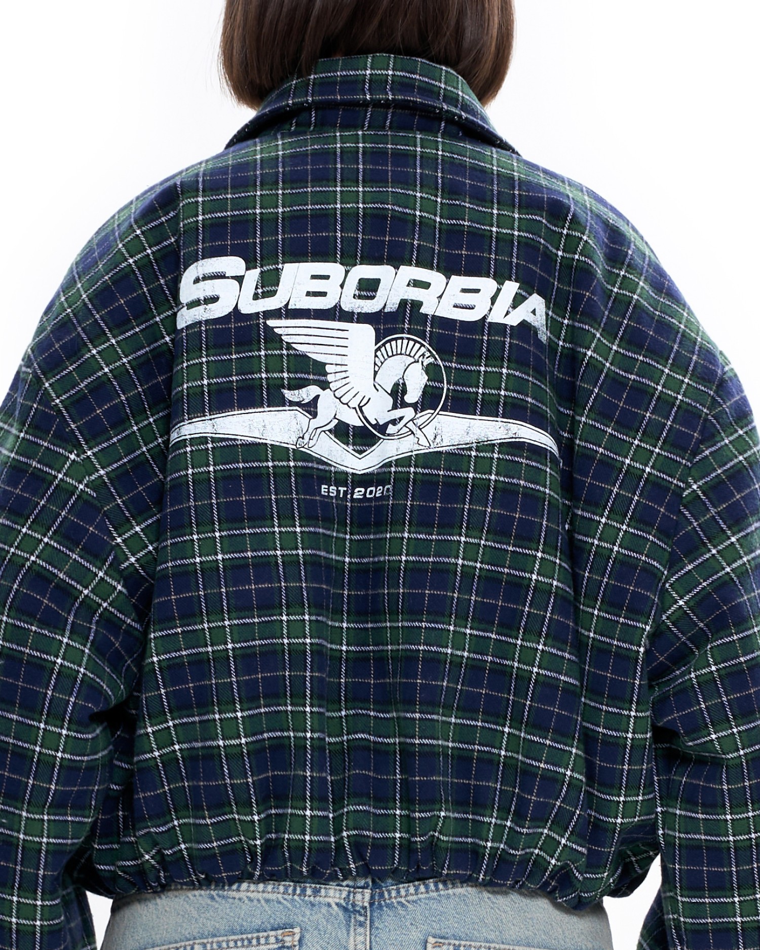 Укороченный бомбер оверсайз в клетку.