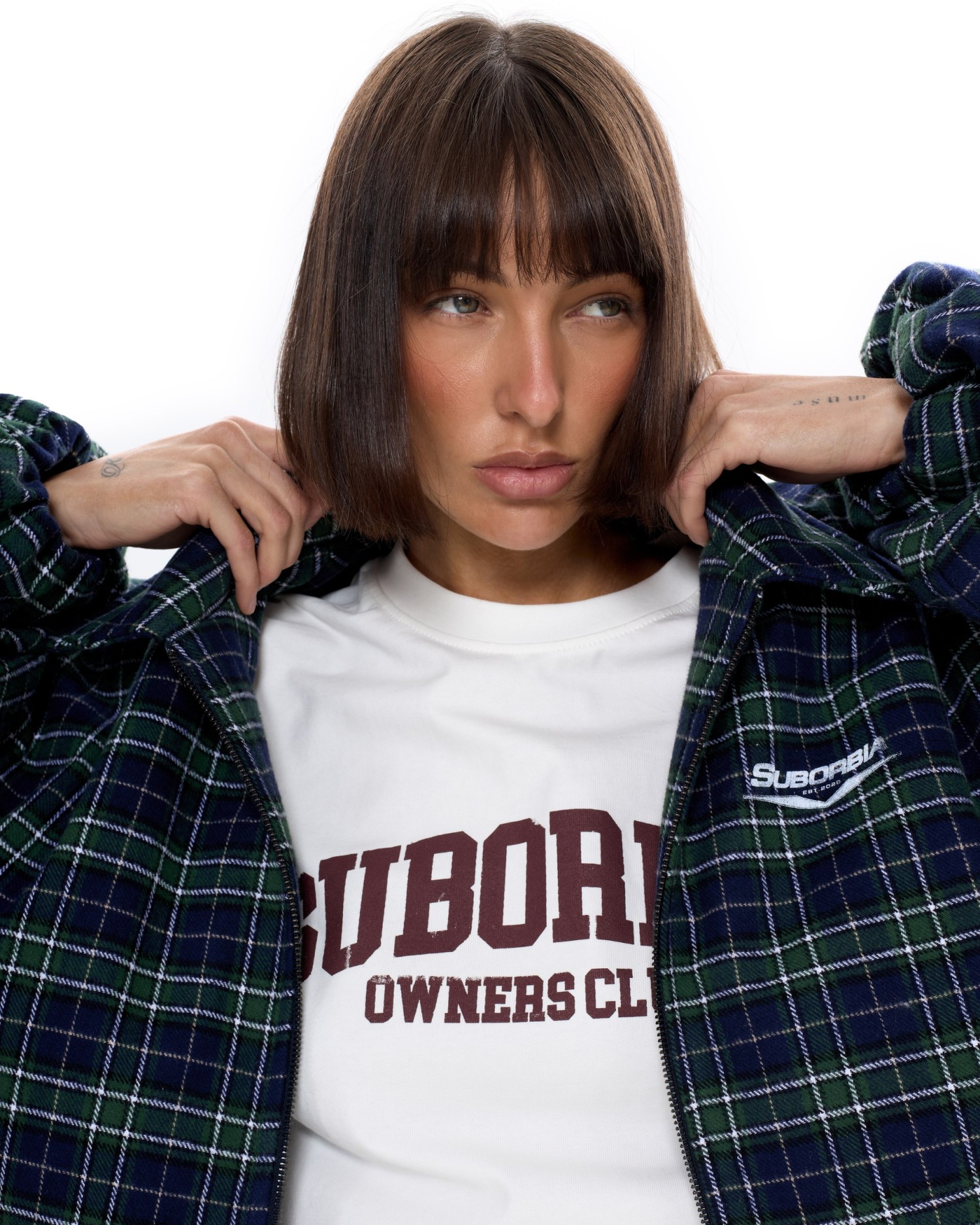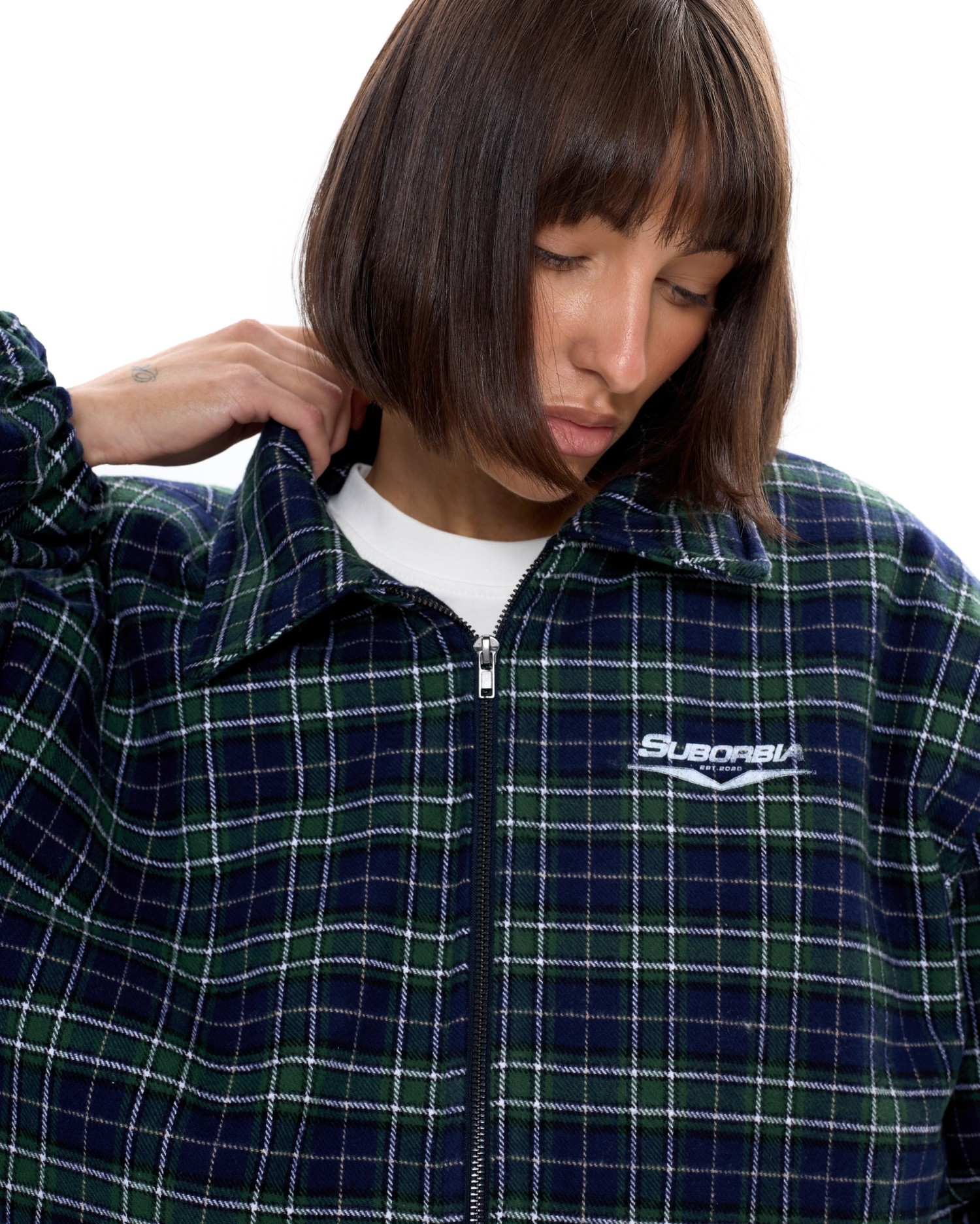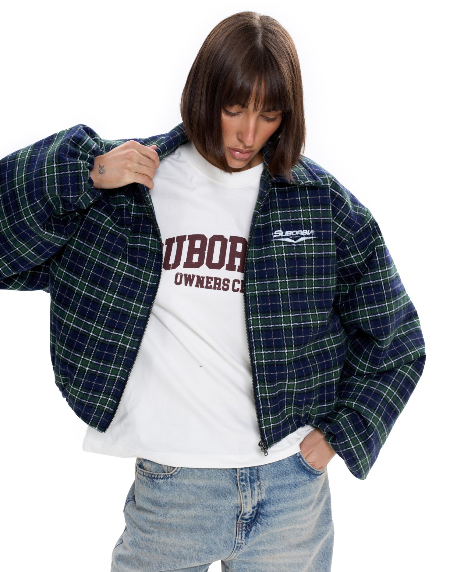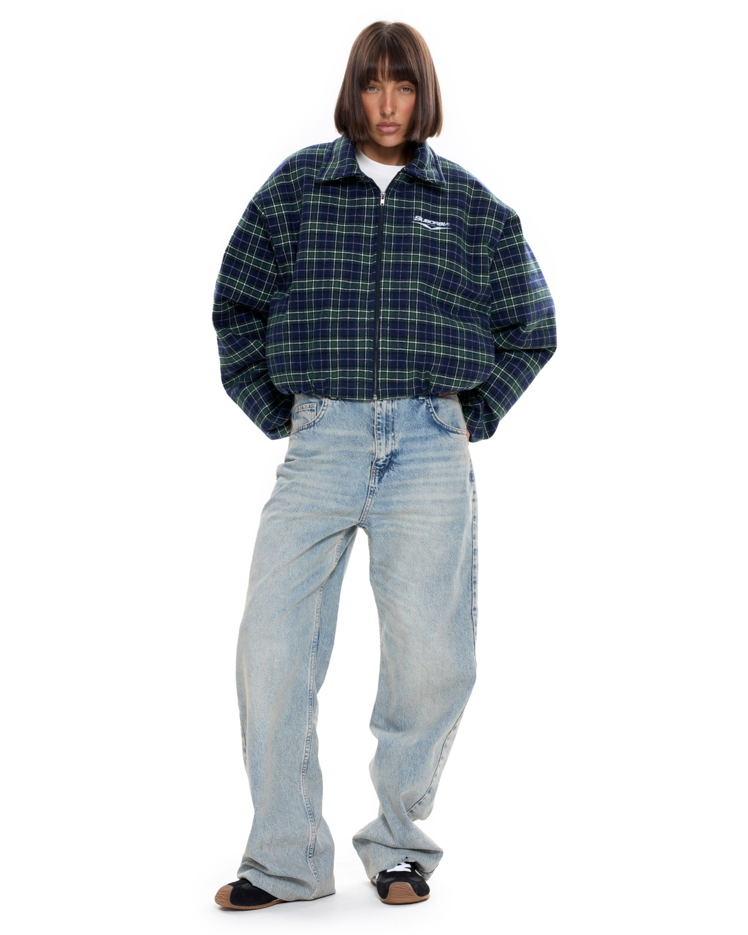 Укороченный бомбер оверсайз в клетку.