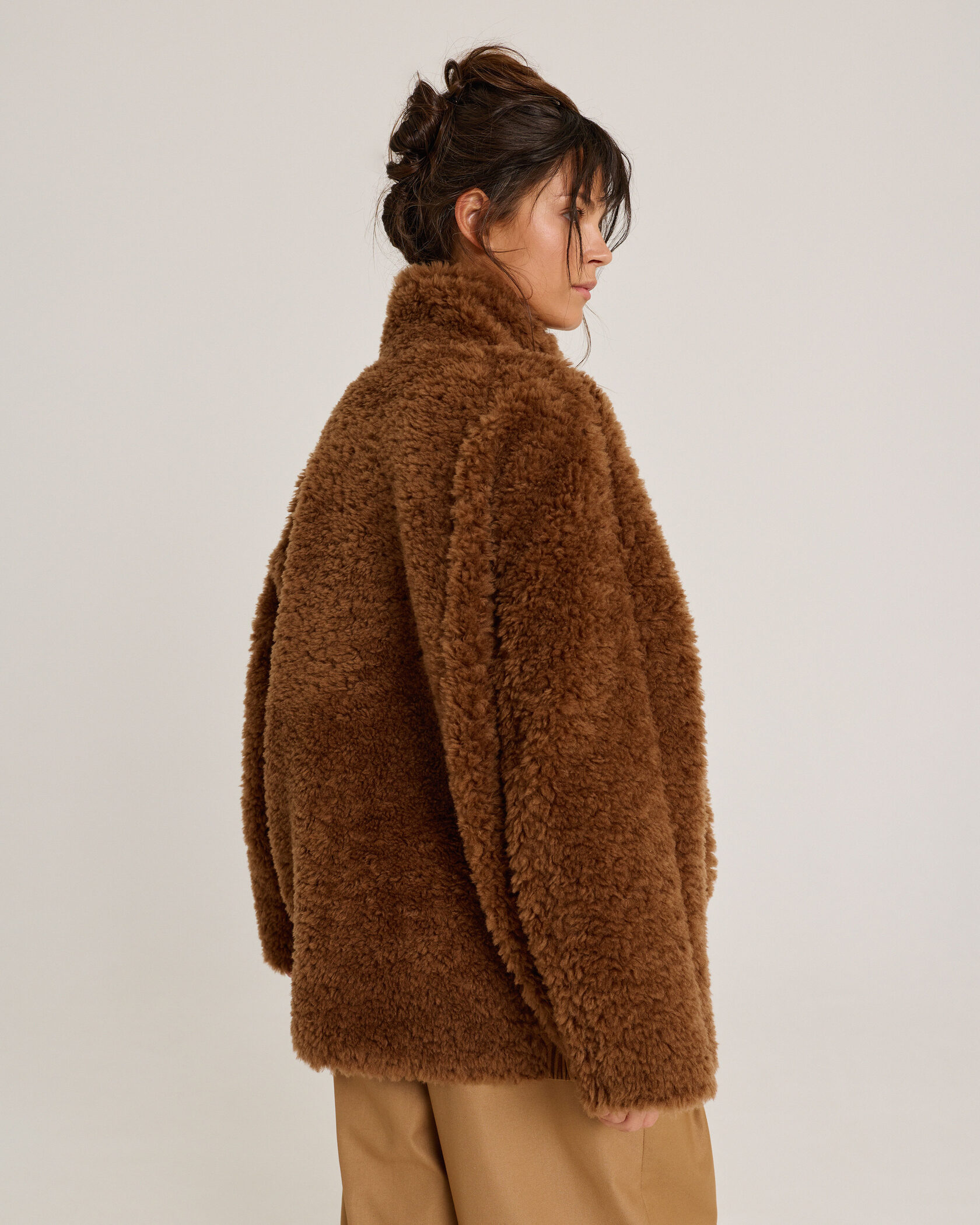 Уютный двусторонний бомбер из 100% шерсти мериноса. Комфортная длина, свободный, но не гипертрофированный крой и натуральный оттенок.