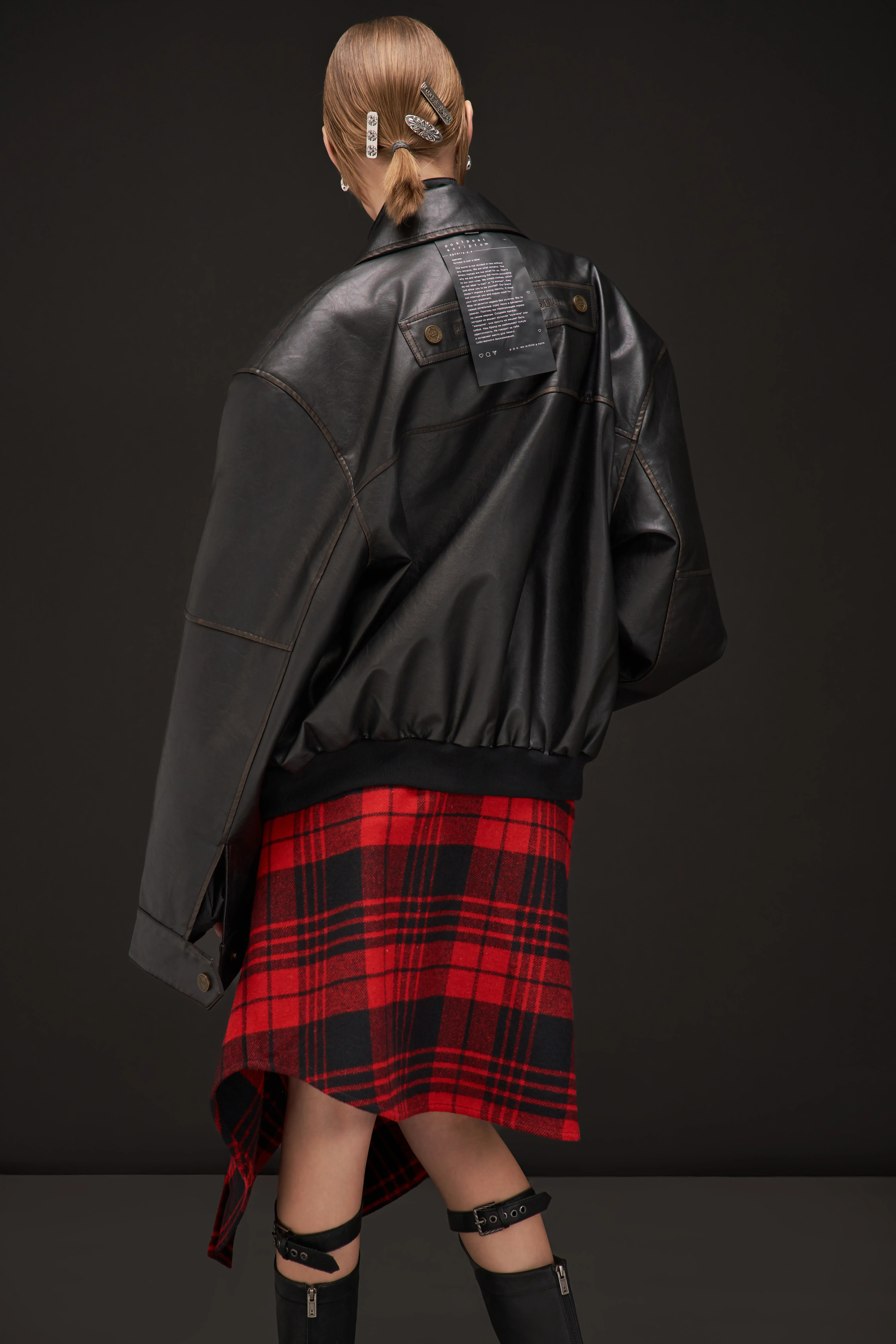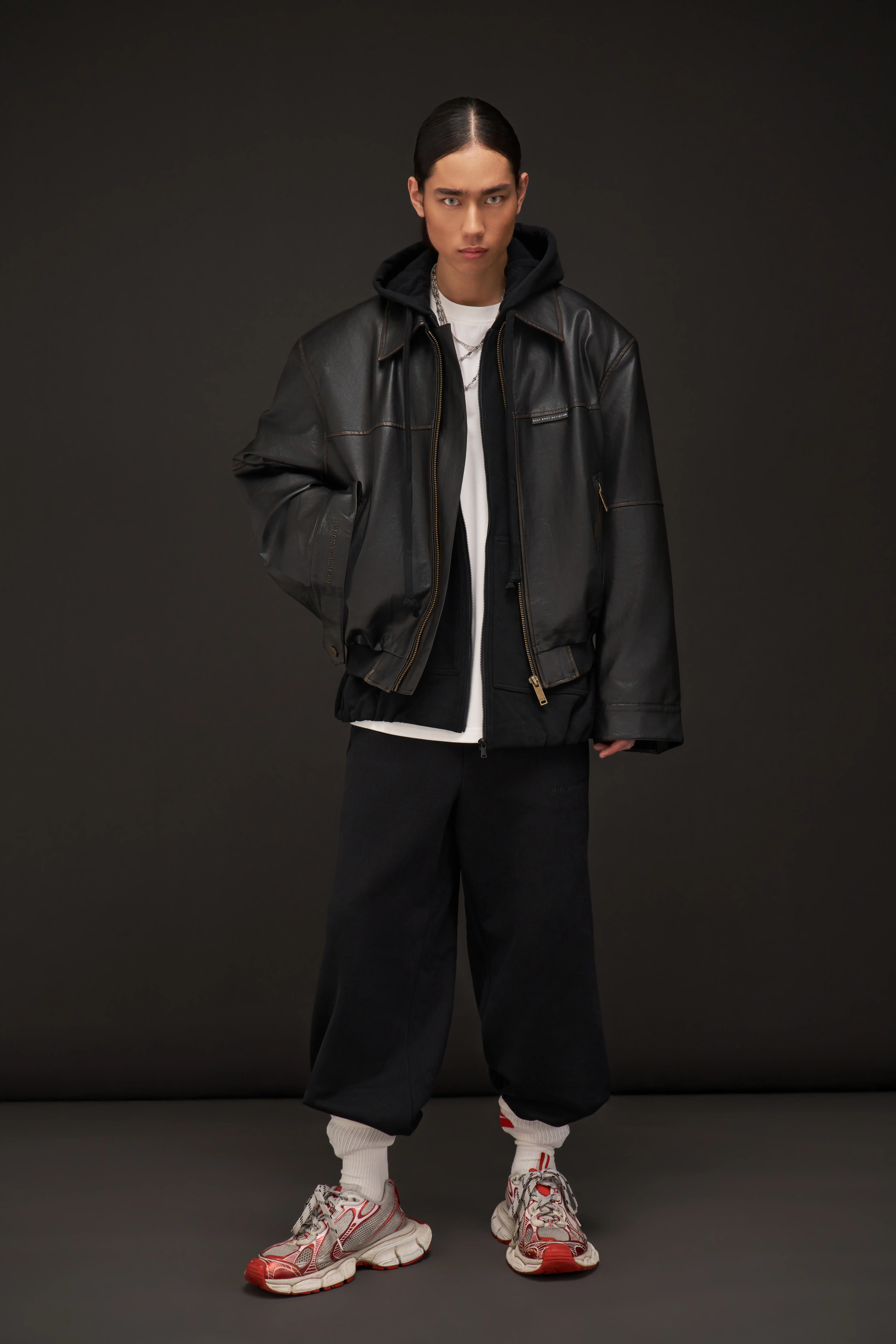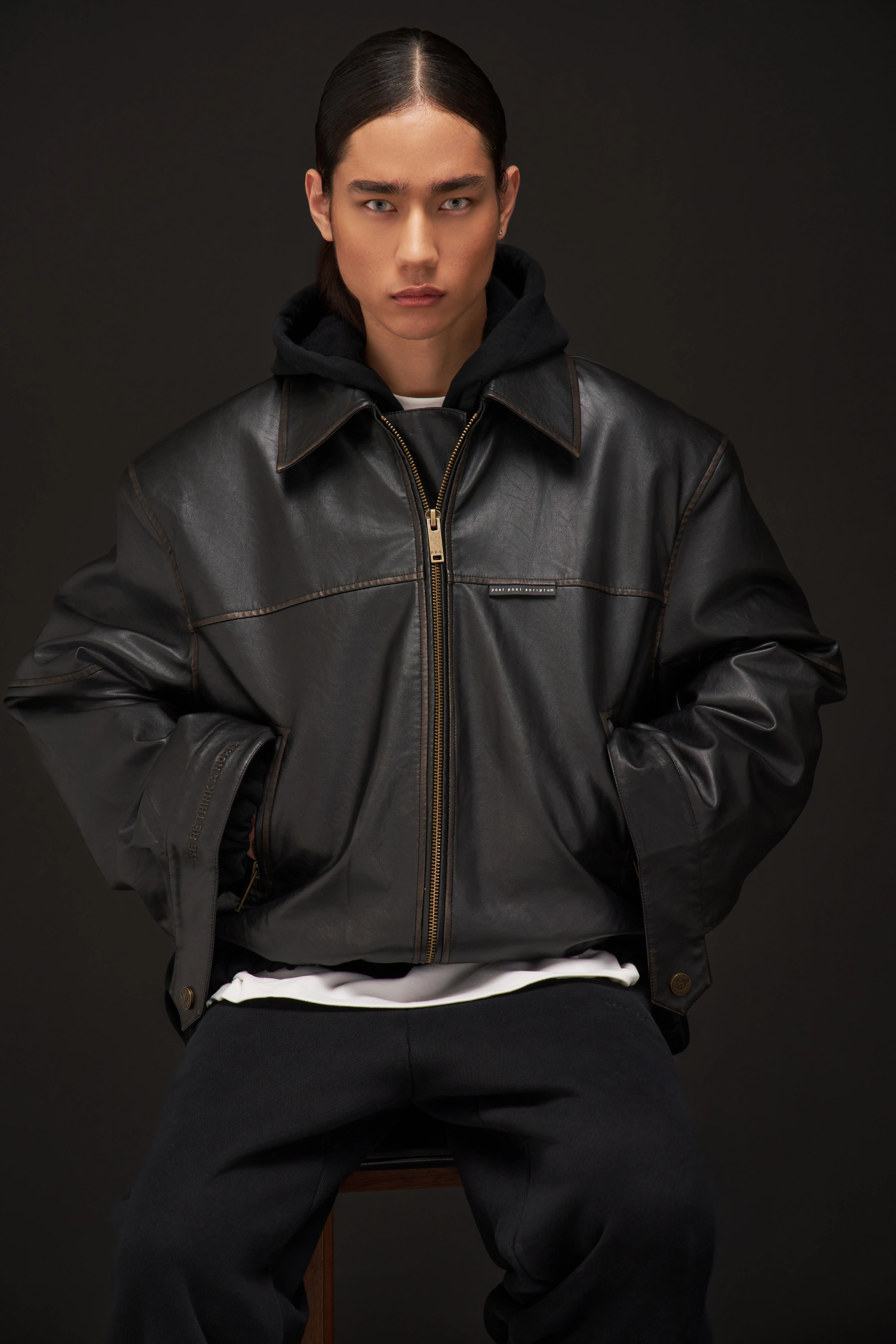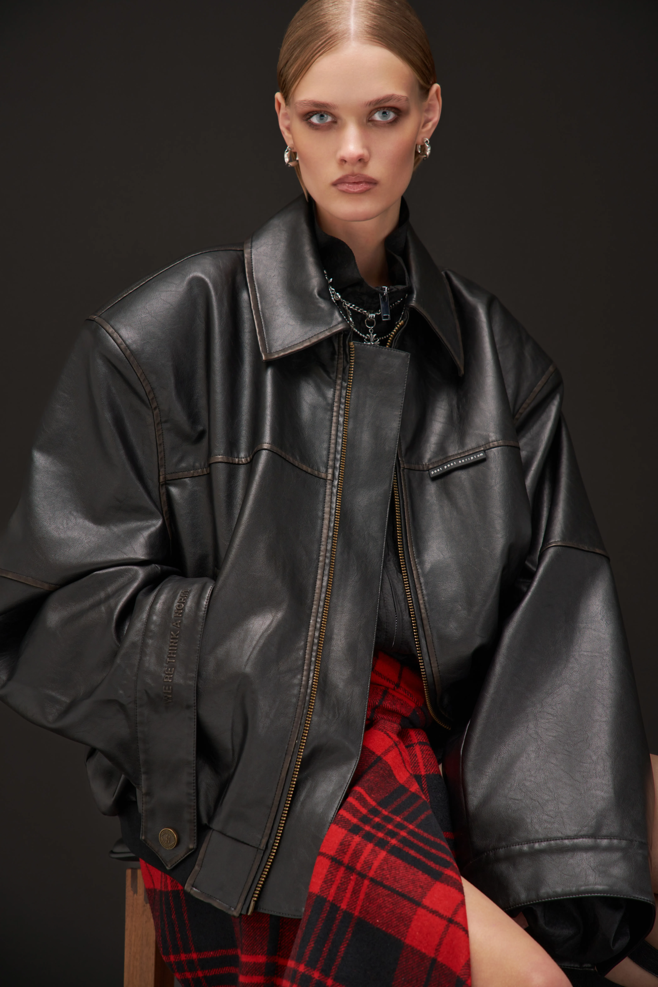Бомбер «signal» из веган-кожи, выстиранная и состаренная вручную на швах. Вдохновленная мотокультурой модель имеет грубый силуэт: преувеличенная линия плеча, широкая пройма. резинка по низу айтема обеспечивает идеальную посадку. Массивная фурнитура и брендинг на рукаве завершает фирменный образ.