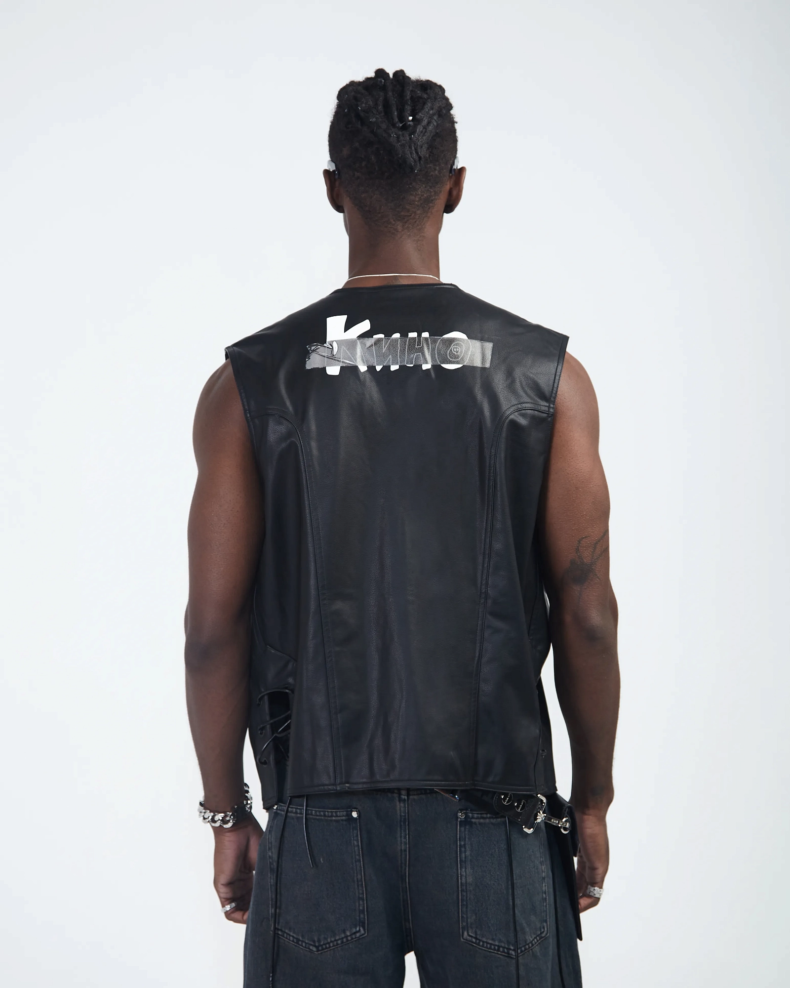 Коллекция KINO x Asia St 71 – это воплощение стиля и бунтарского духа 80-х годов. Безрукавка из плотной высококачественной эко-кожи свободного прямого кроя. В качестве деталей мы дополнили безрукавку снимками Виктора Цоя и добавили стальную брендированную фурнитуру. Изделие станет акцентом вашего гардероба и позволит выразить свою уникальность.