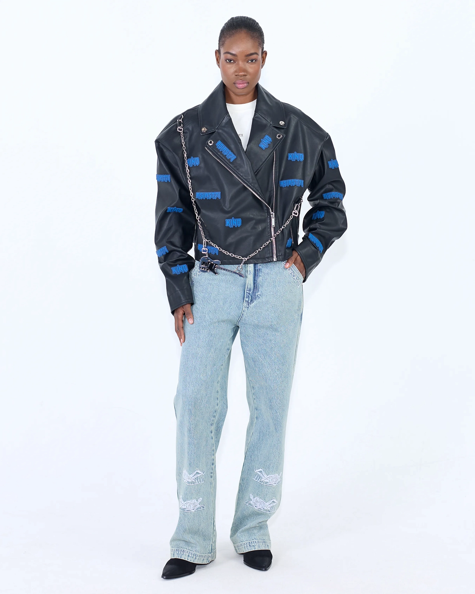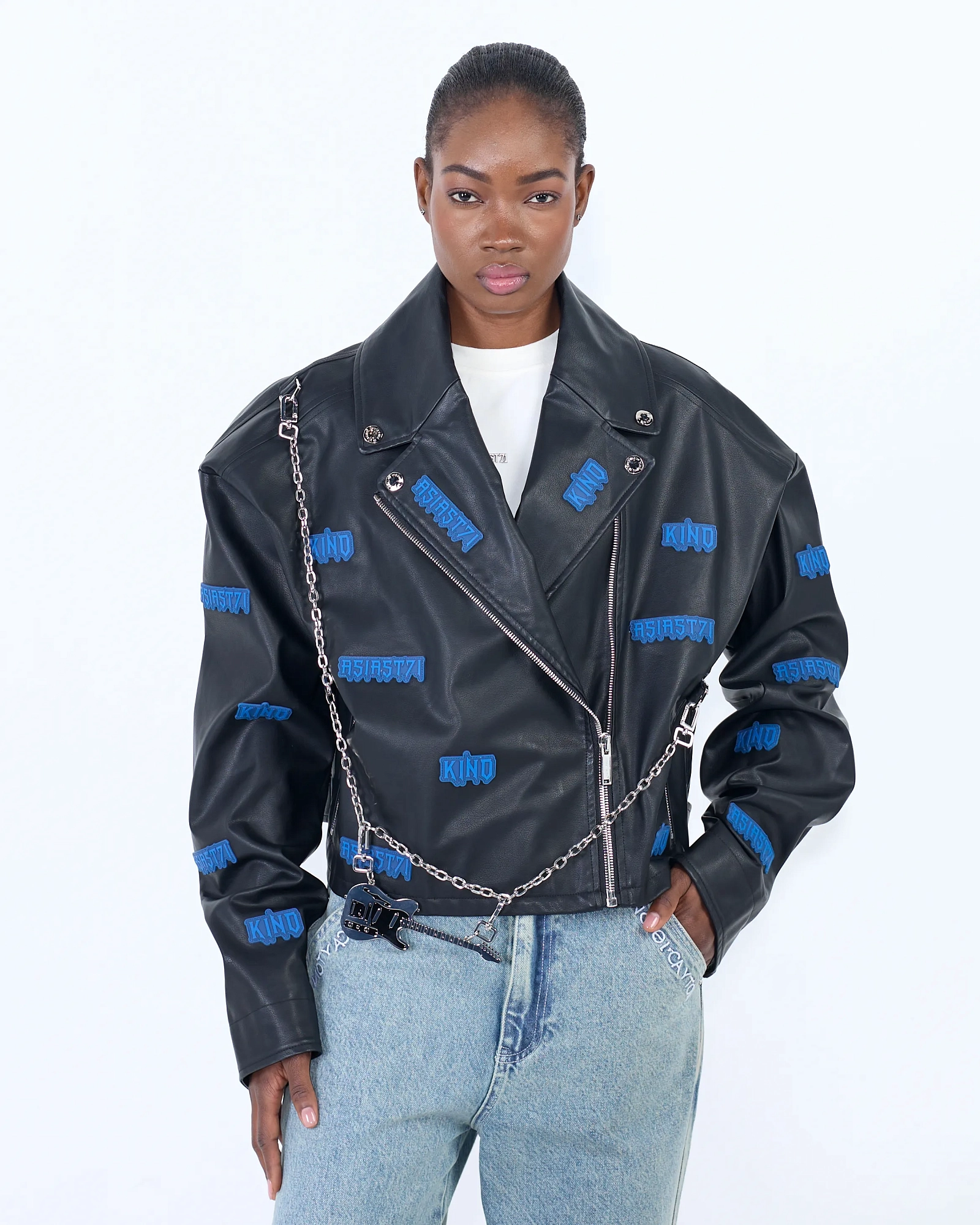 Косуха из высококачественной эко кожи с яркими прошитыми акцентными силиконовыми патчами. Куртка имеет свободный и комфортный крой, а стальная брендированная фурнитура создает целостность образа. Косуха станет завершающим акцентом в образе и подойдет для демисезонной погоды.
