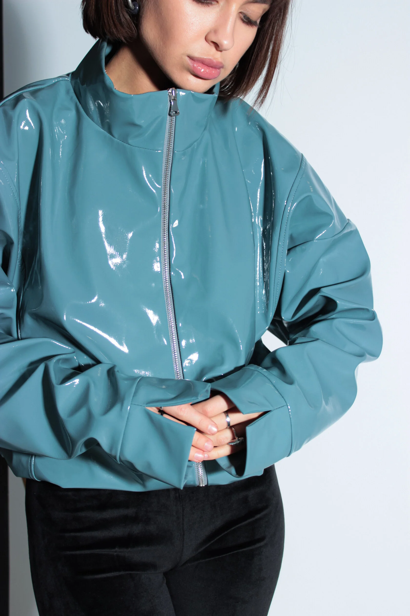 Из брендирования только железная нашивка сзади под воротом, это придаем бомбер максимальную женственность