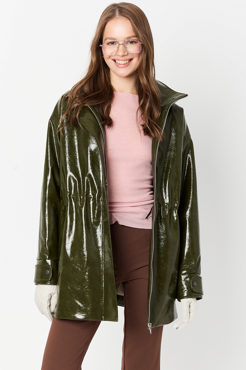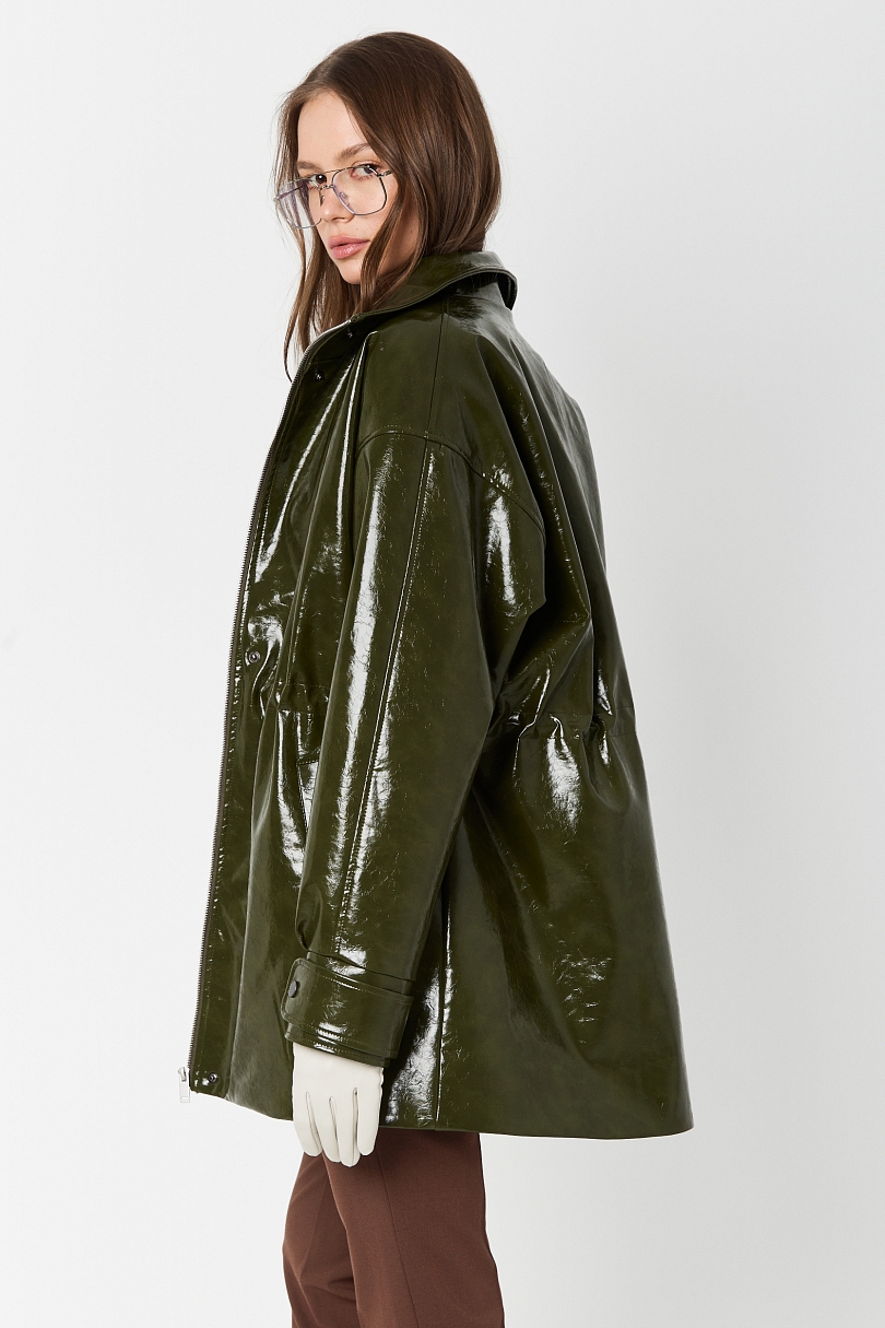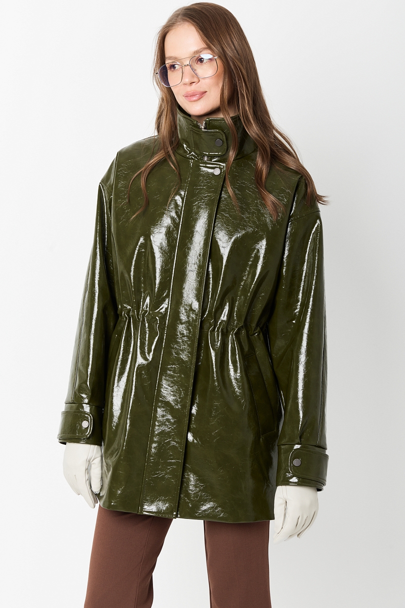 Парка из лакированной кожи утепленная